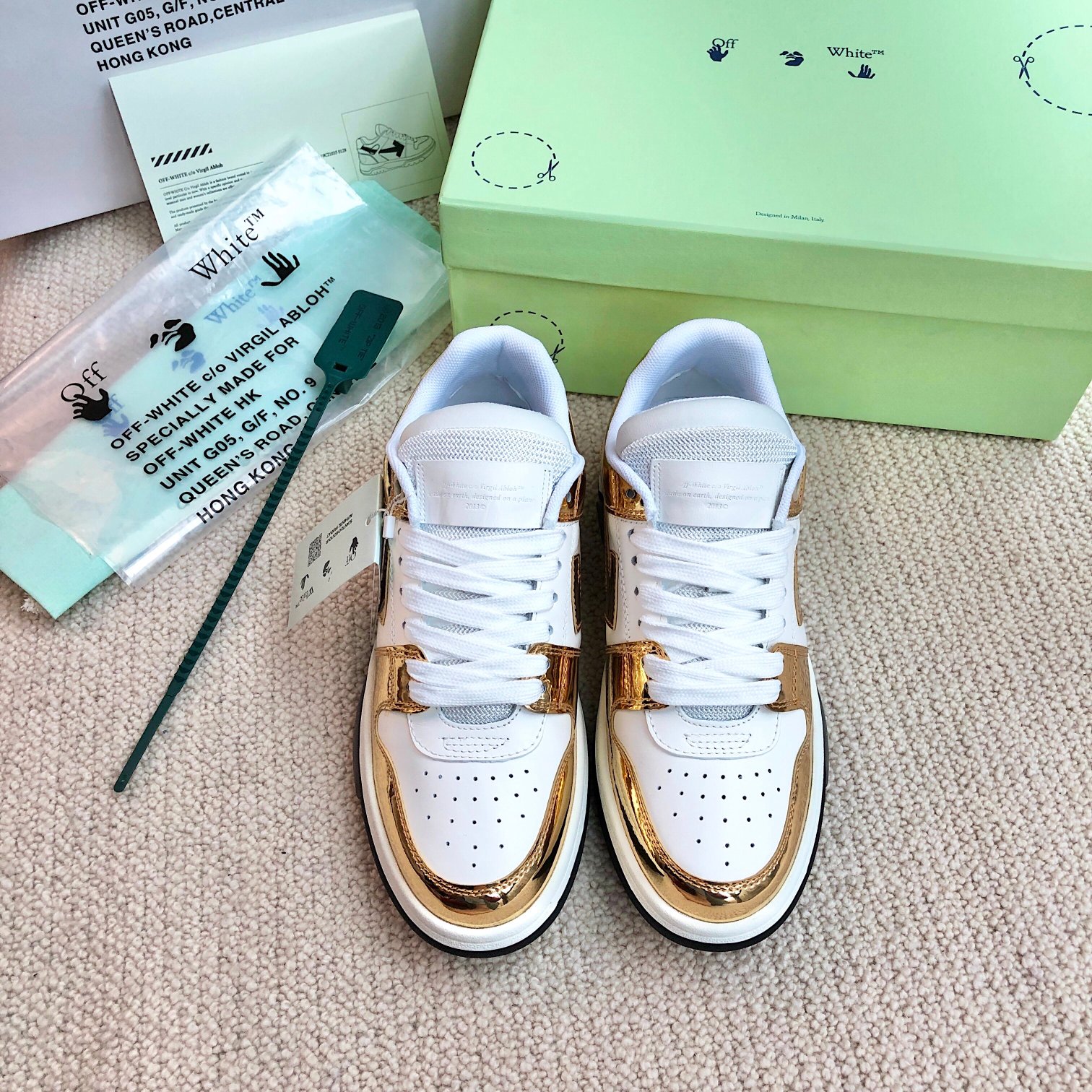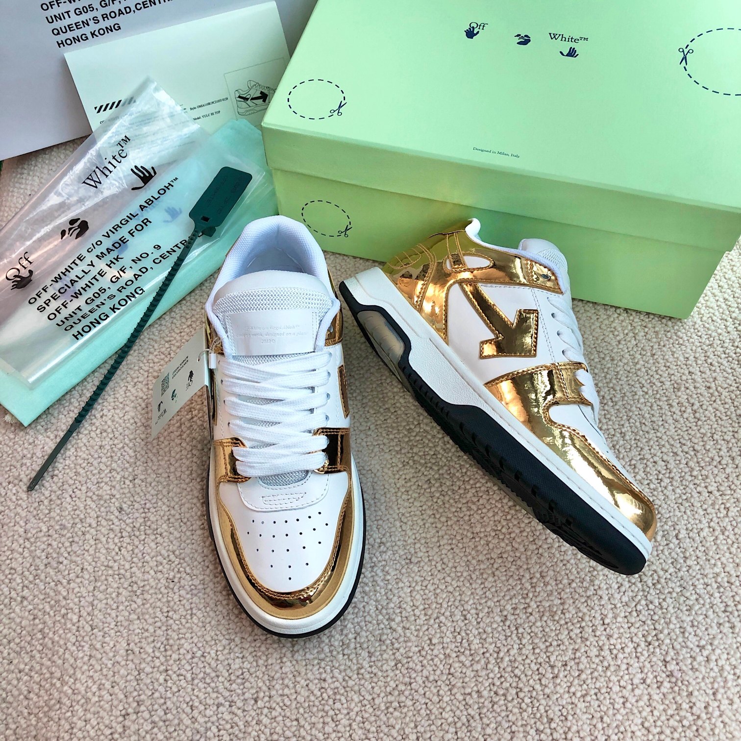 This shoes is AAAAA 1:1 quality (superb). Materials used are identical to the original ones. OFF WHITE trademark marks are indistinguishable to the authentic. Photos take by actual shoes, what you receive will be 100% same with our photos.