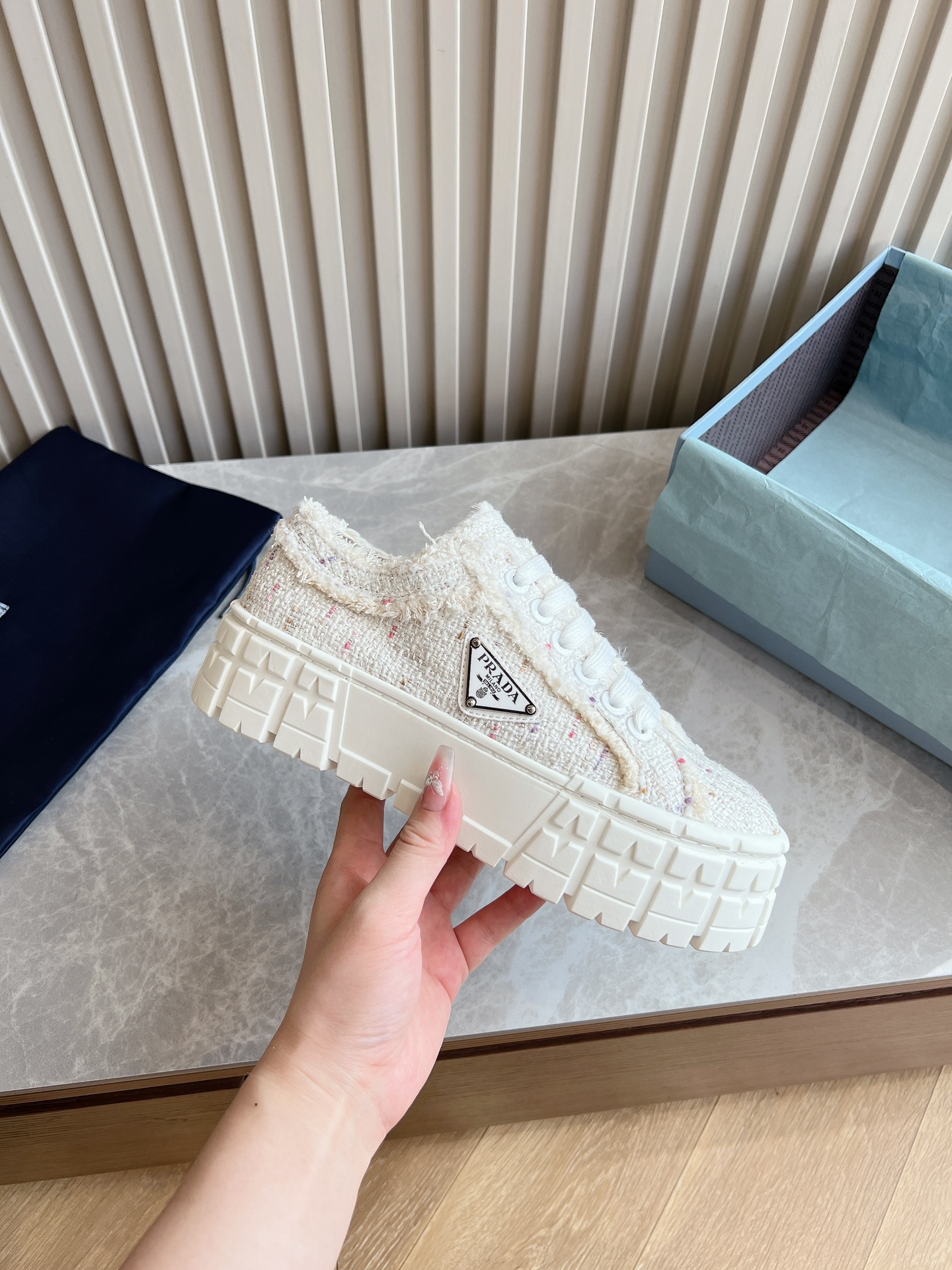 This shoes is AAAAA 1:1 quality (superb). Materials used are identical to the original ones. Prada trademark marks are indistinguishable to the authentic. Photos take by actual shoes, what you receive will be 100% same with our photos.