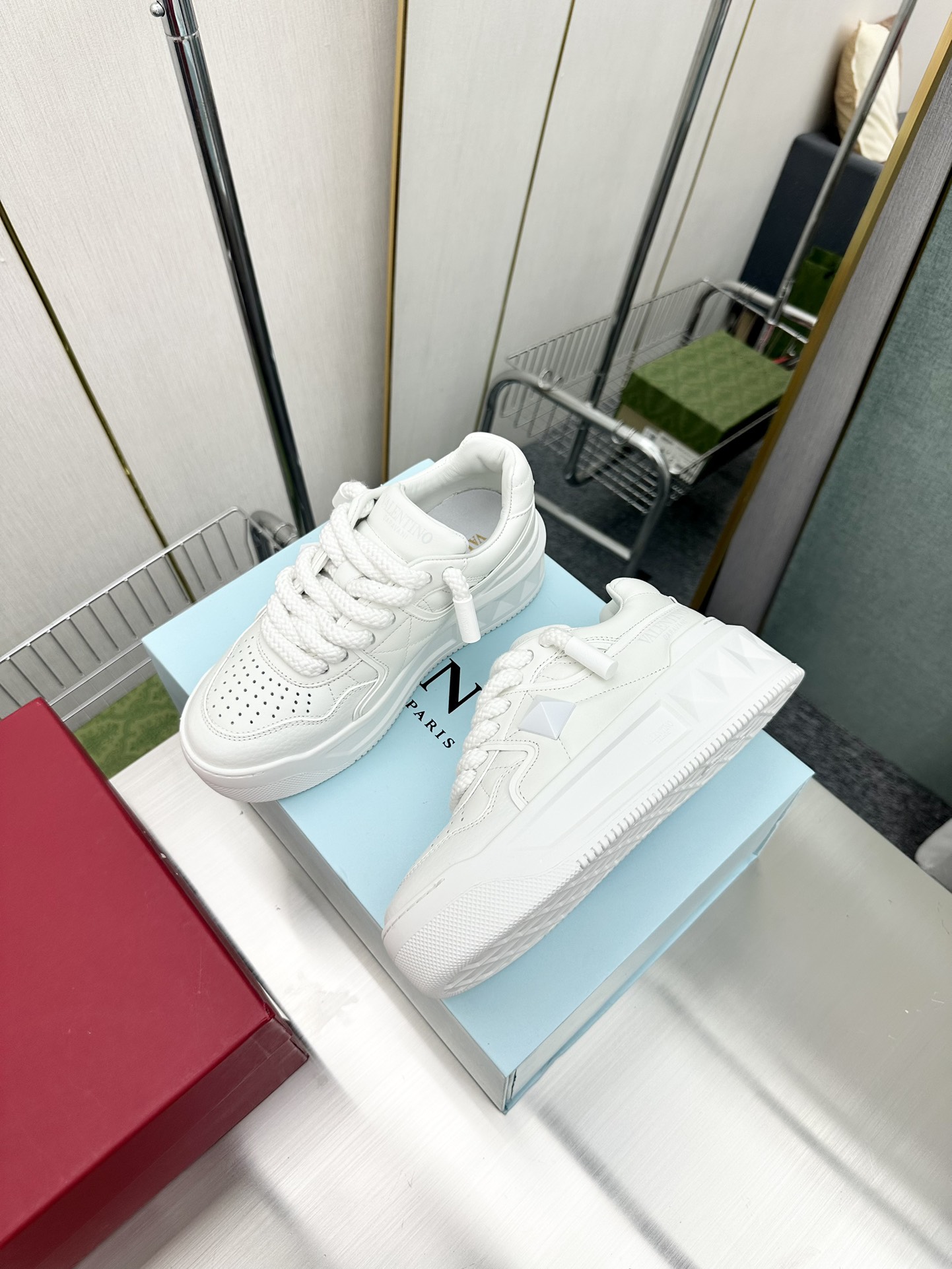 This shoes is AAAAA 1:1 quality (superb). Materials used are identical to the original ones. Valentino trademark marks are indistinguishable to the authentic. Photos take by actual shoes, what you receive will be 100% same with our photos.