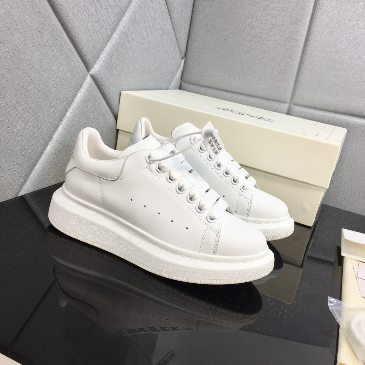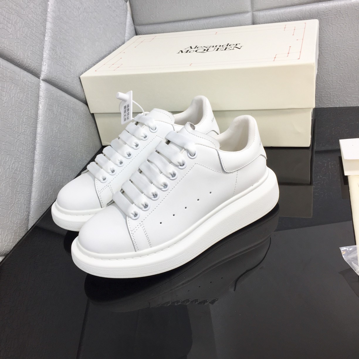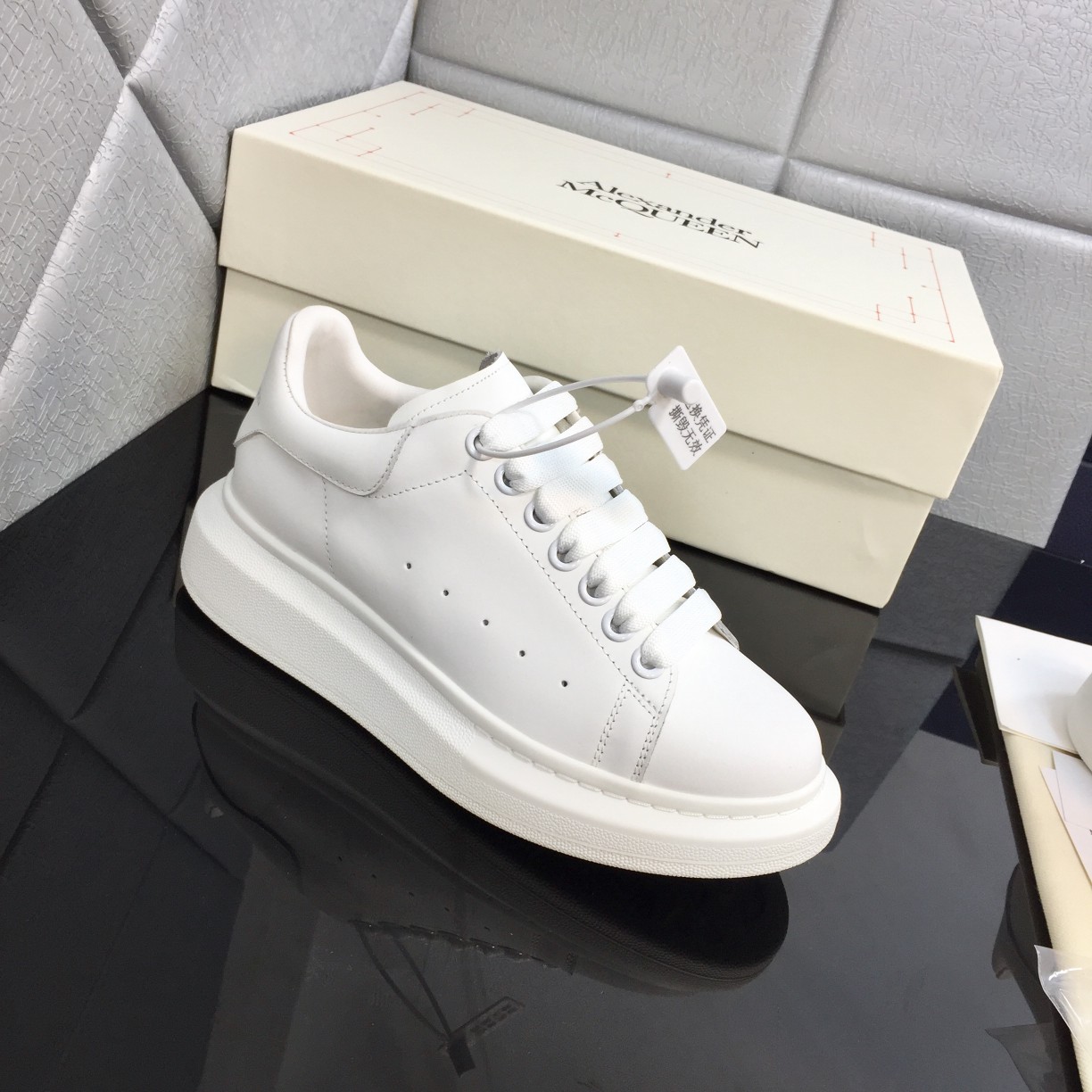 This shoes is AAAAA 1:1 quality (superb). Materials used are identical to the original ones. McQueen trademark marks are indistinguishable to the authentic. Photos take by actual shoes, what you receive will be 100% same with our photos.
