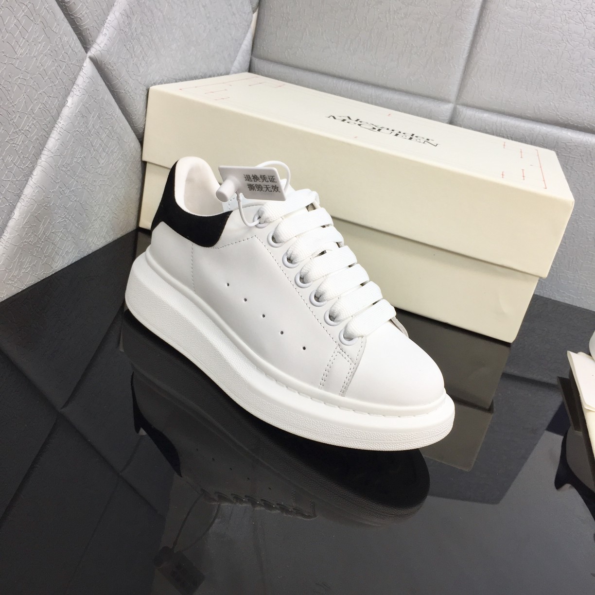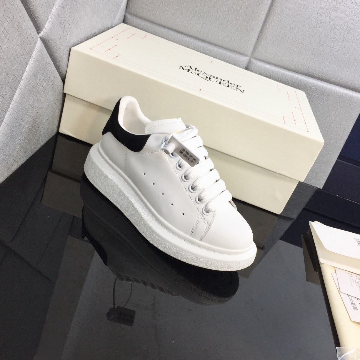 This shoes is AAAAA 1:1 quality (superb). Materials used are identical to the original ones. McQueen trademark marks are indistinguishable to the authentic. Photos take by actual shoes, what you receive will be 100% same with our photos.