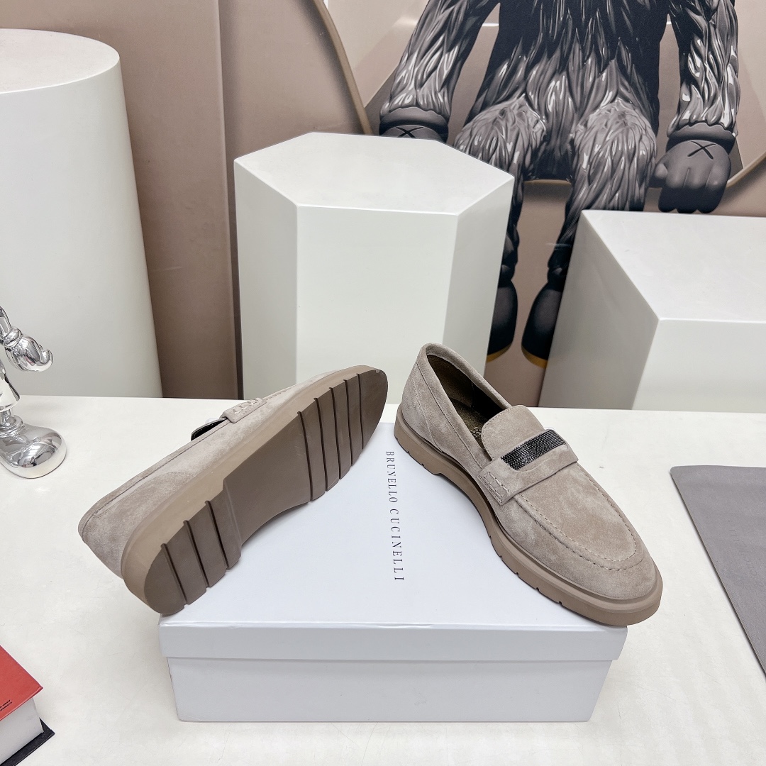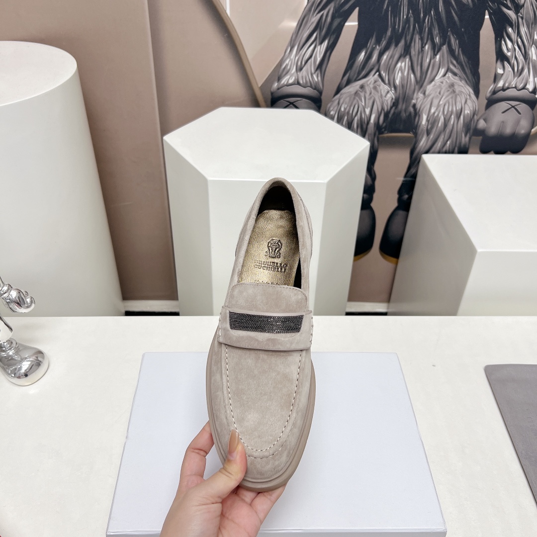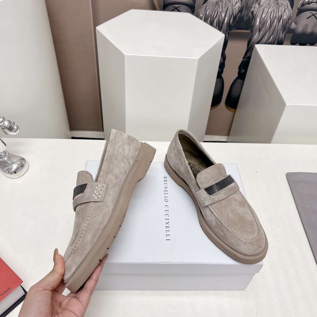 This shoes is AAAAA 1:1 quality (superb). Materials used are identical to the original ones. Brunello Cucinelli trademark marks are indistinguishable to the authentic. Photos take by actual shoes, what you receive will be 100% same with our photos.