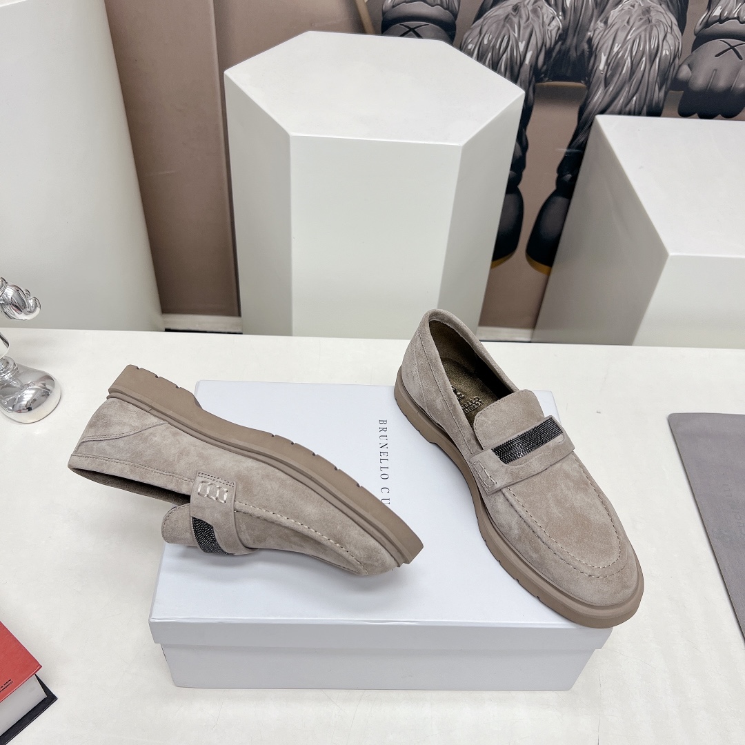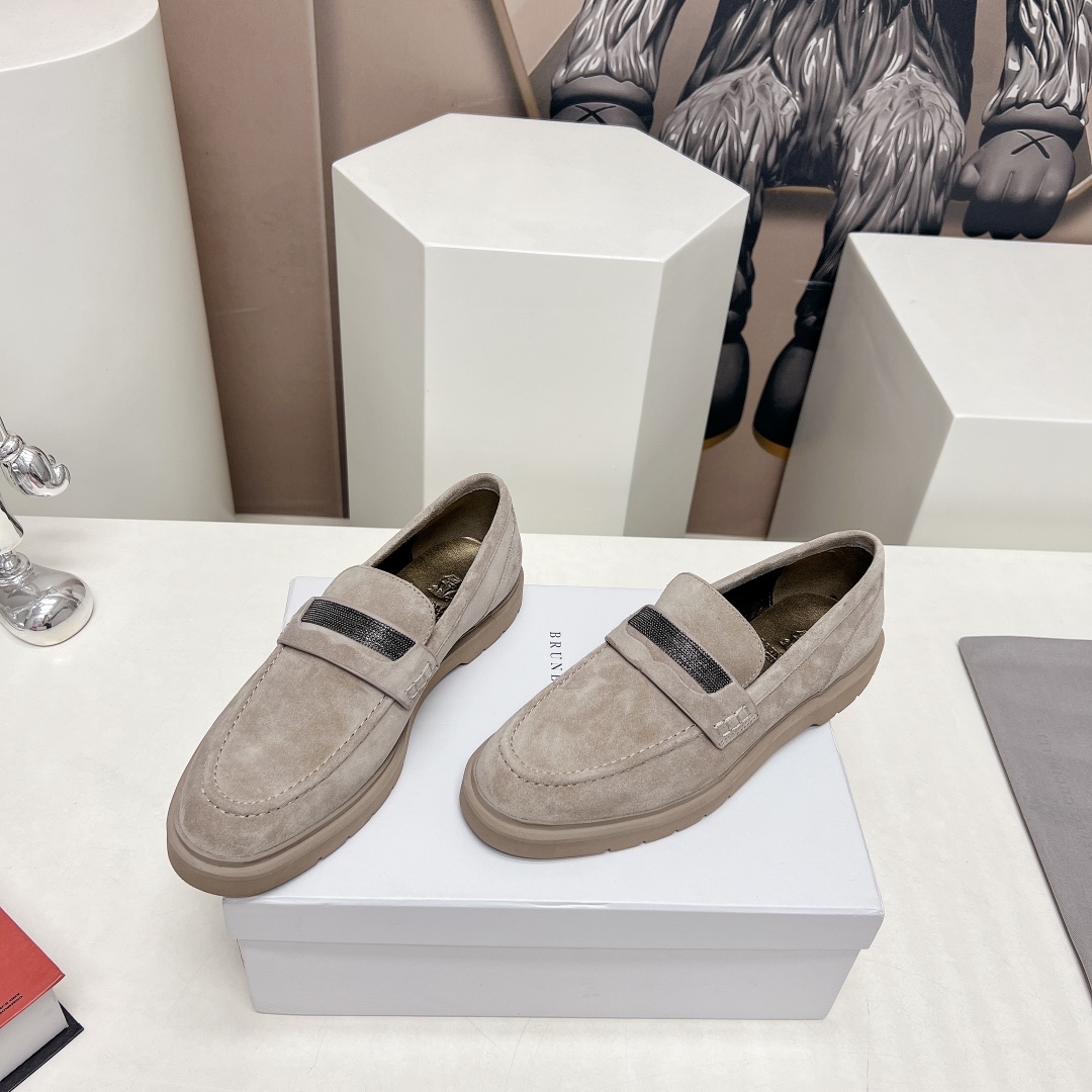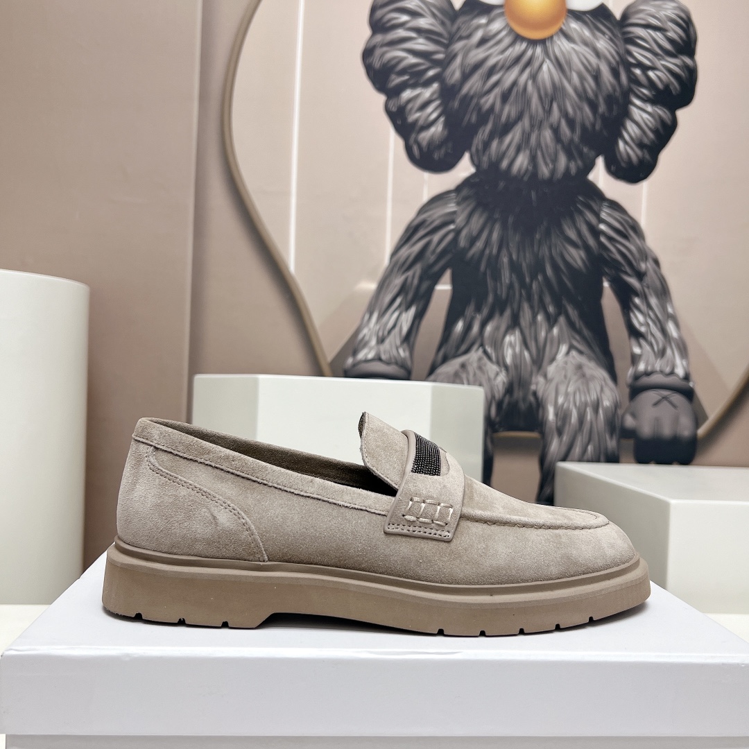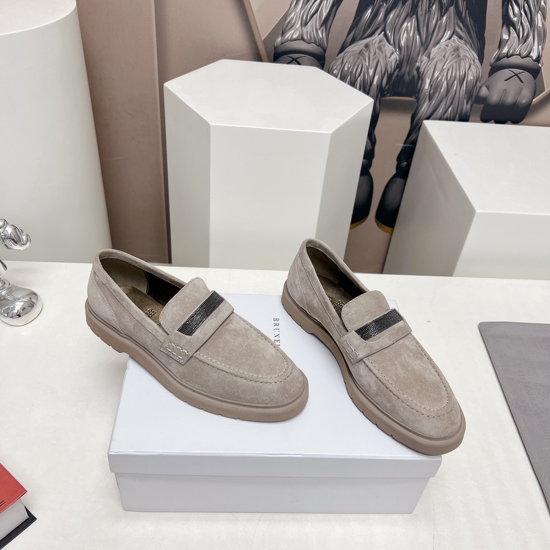 This shoes is AAAAA 1:1 quality (superb). Materials used are identical to the original ones. Brunello Cucinelli trademark marks are indistinguishable to the authentic. Photos take by actual shoes, what you receive will be 100% same with our photos.