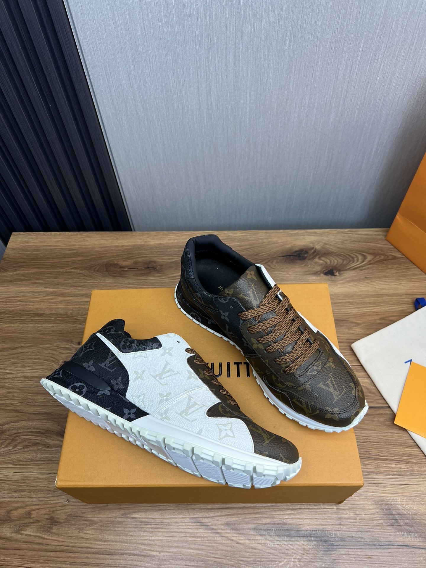 This shoes is AAAAA 1:1 quality (superb). Materials used are identical to the original ones. Louis Vuitton trademark marks are indistinguishable to the authentic. Photos take by actual shoes, what you receive will be 100% same with our photos.