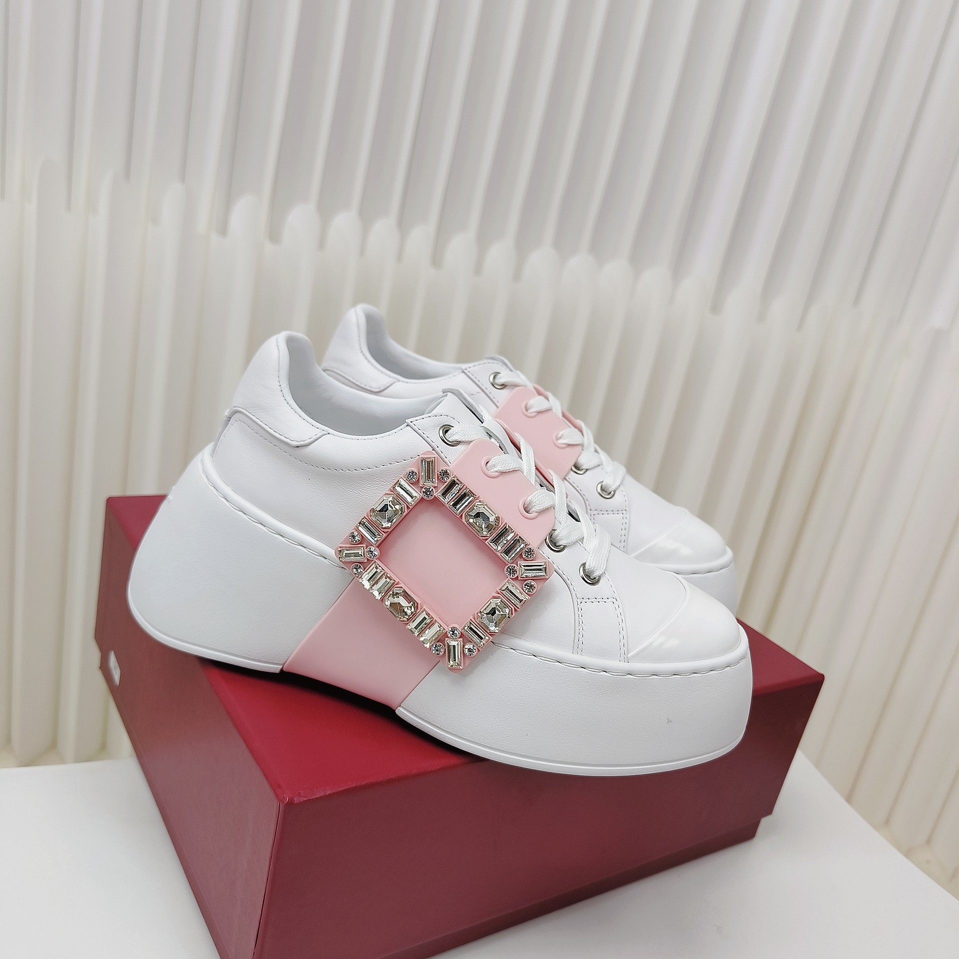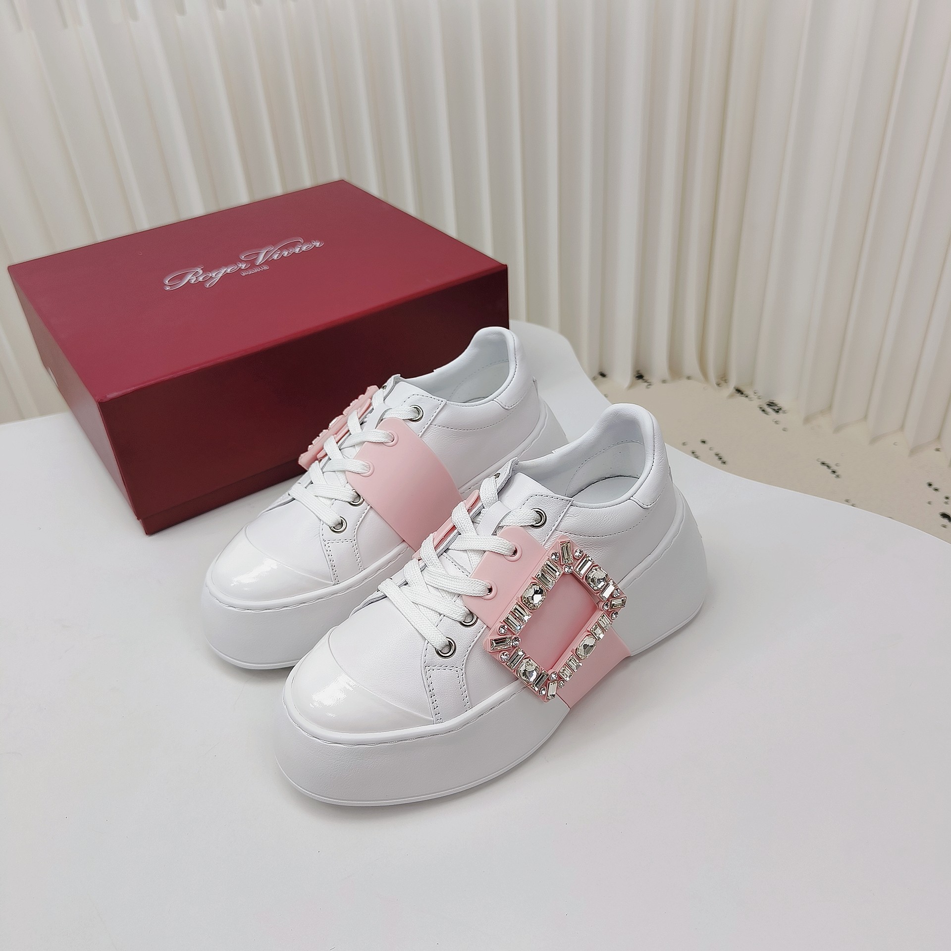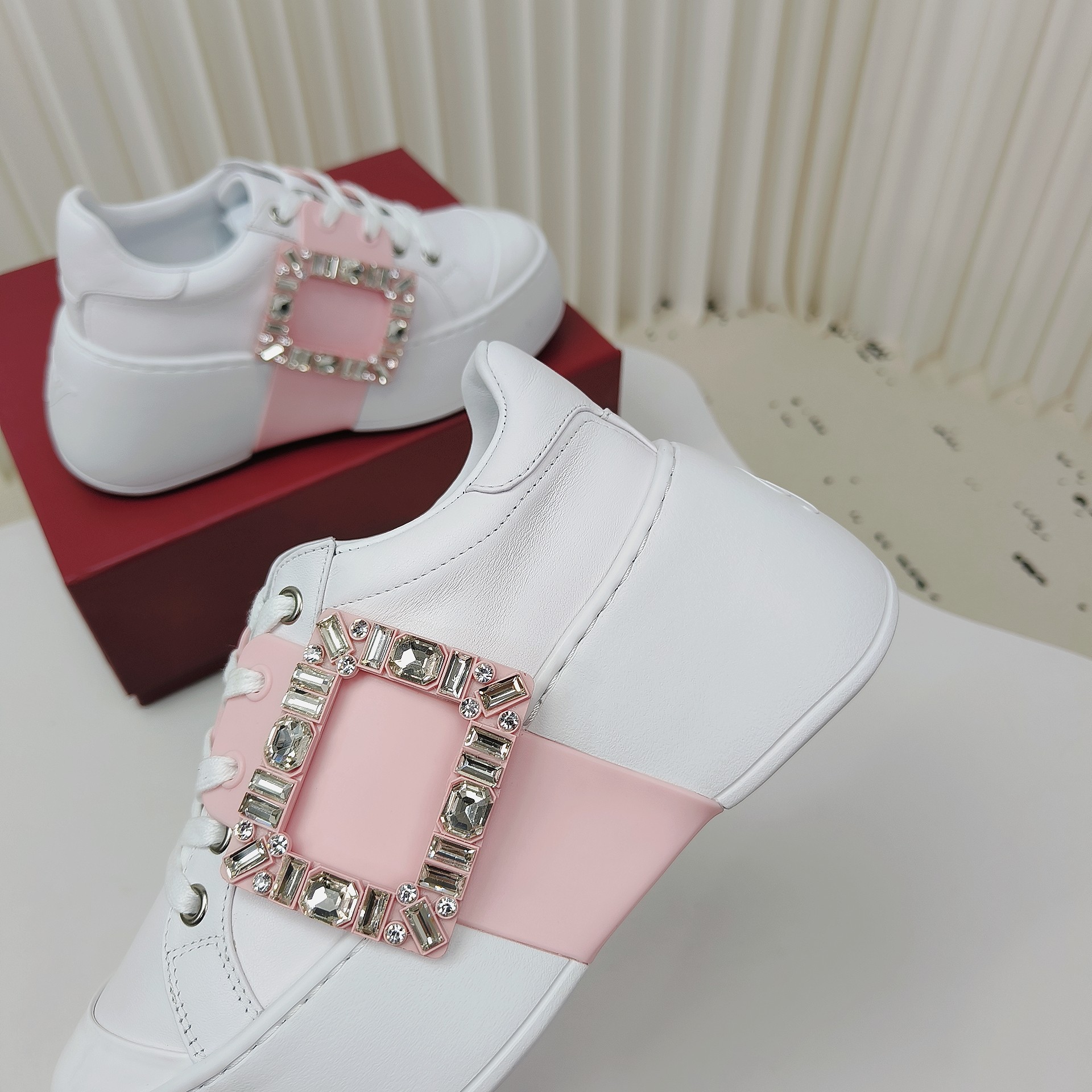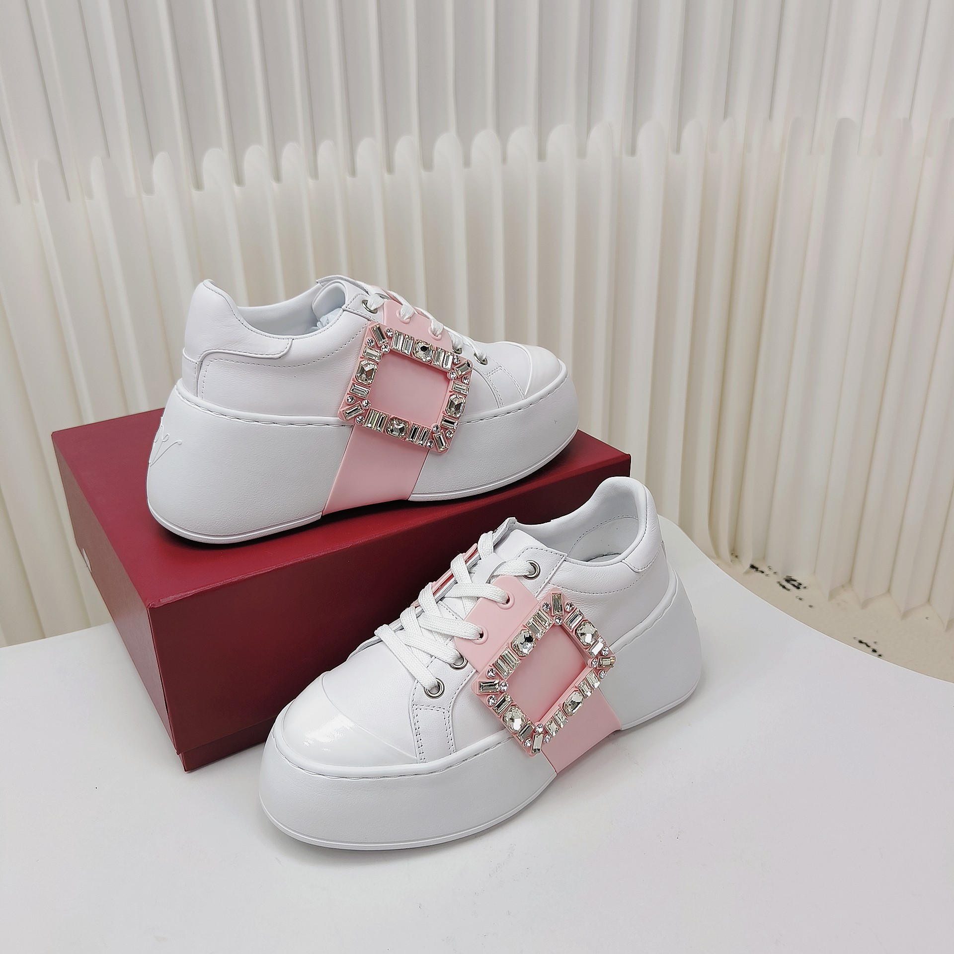 This shoes is AAAAA 1:1 quality (superb). Materials used are identical to the original ones. Roger Vivier trademark marks are indistinguishable to the authentic. Photos take by actual shoes, what you receive will be 100% same with our photos.