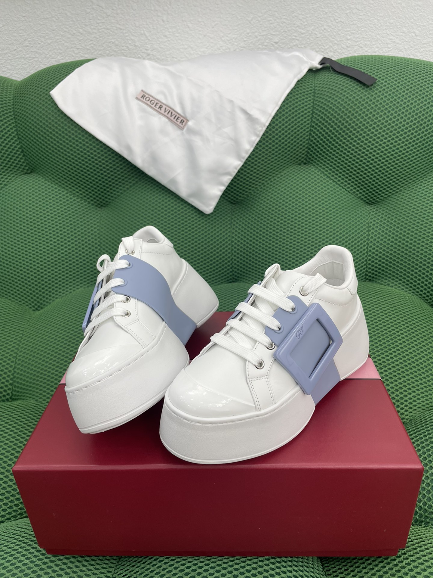 This shoes is AAAAA 1:1 quality (superb). Materials used are identical to the original ones. Roger Vivier trademark marks are indistinguishable to the authentic. Photos take by actual shoes, what you receive will be 100% same with our photos.