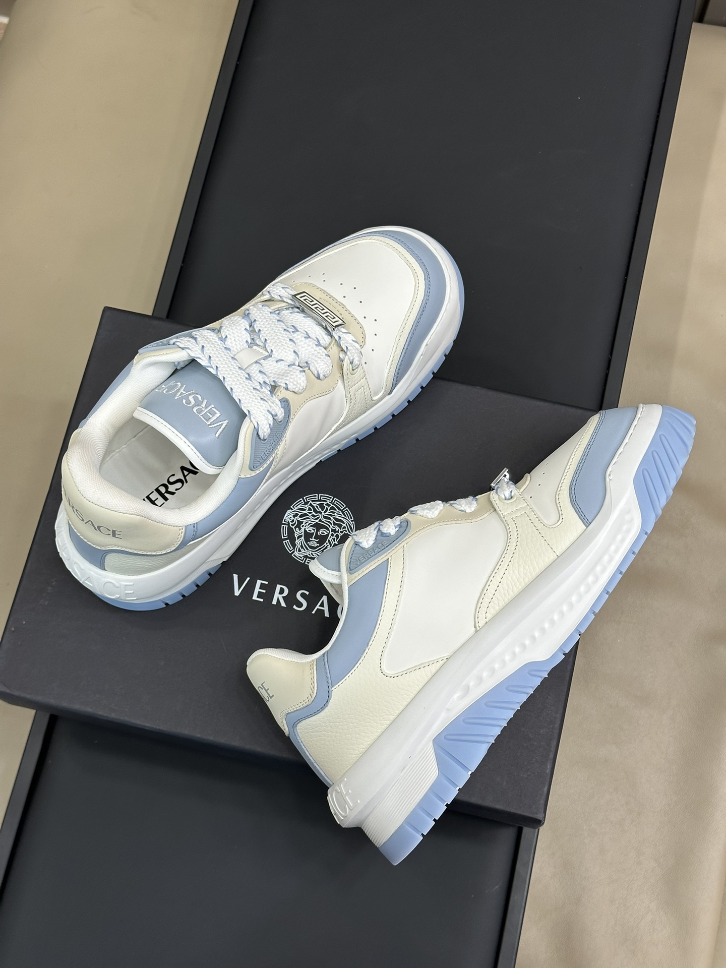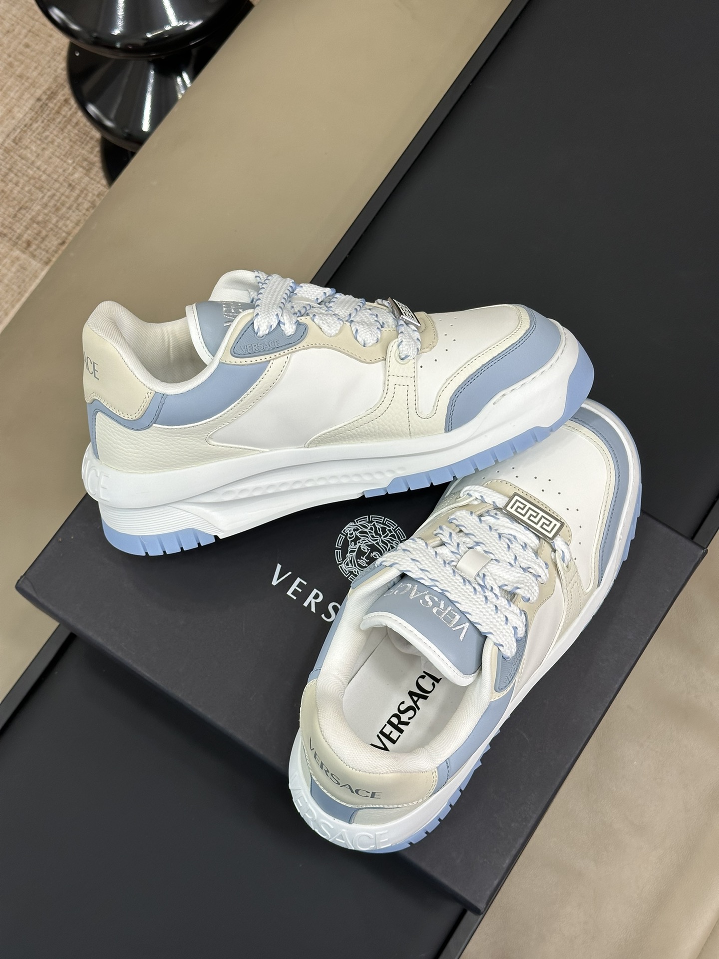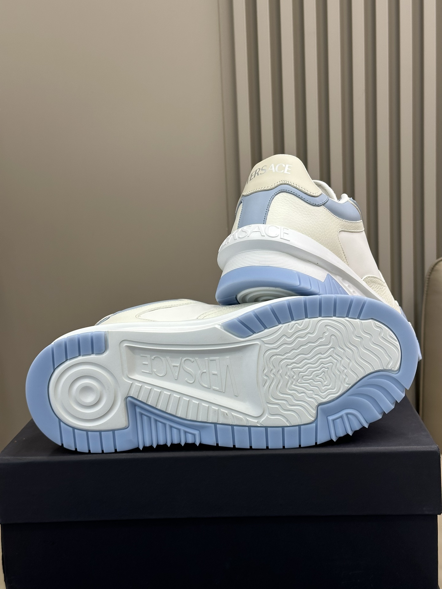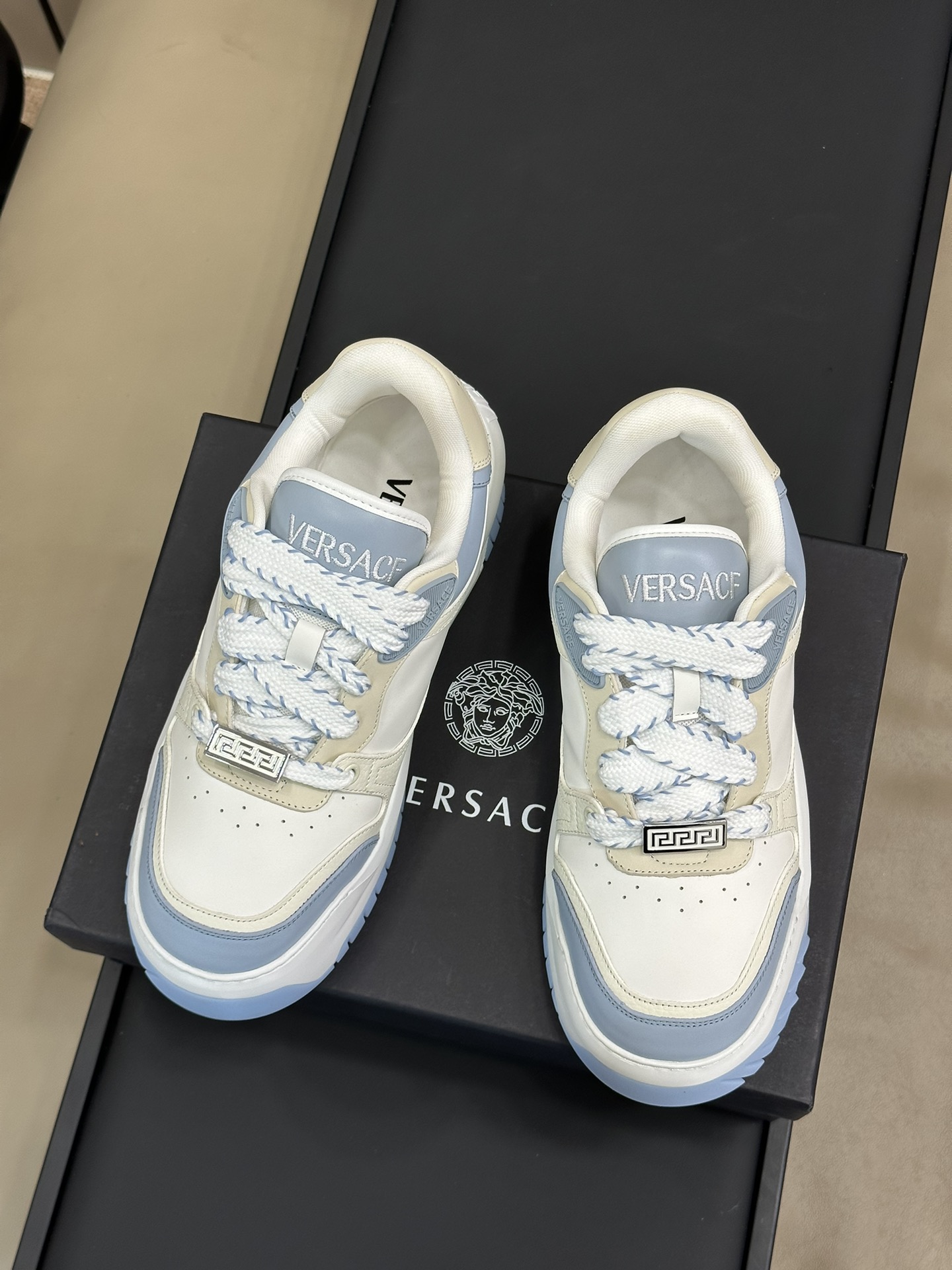 This shoes is AAAAA 1:1 quality (superb). Materials used are identical to the original ones. Versace trademark marks are indistinguishable to the authentic. Photos take by actual shoes, what you receive will be 100% same with our photos.