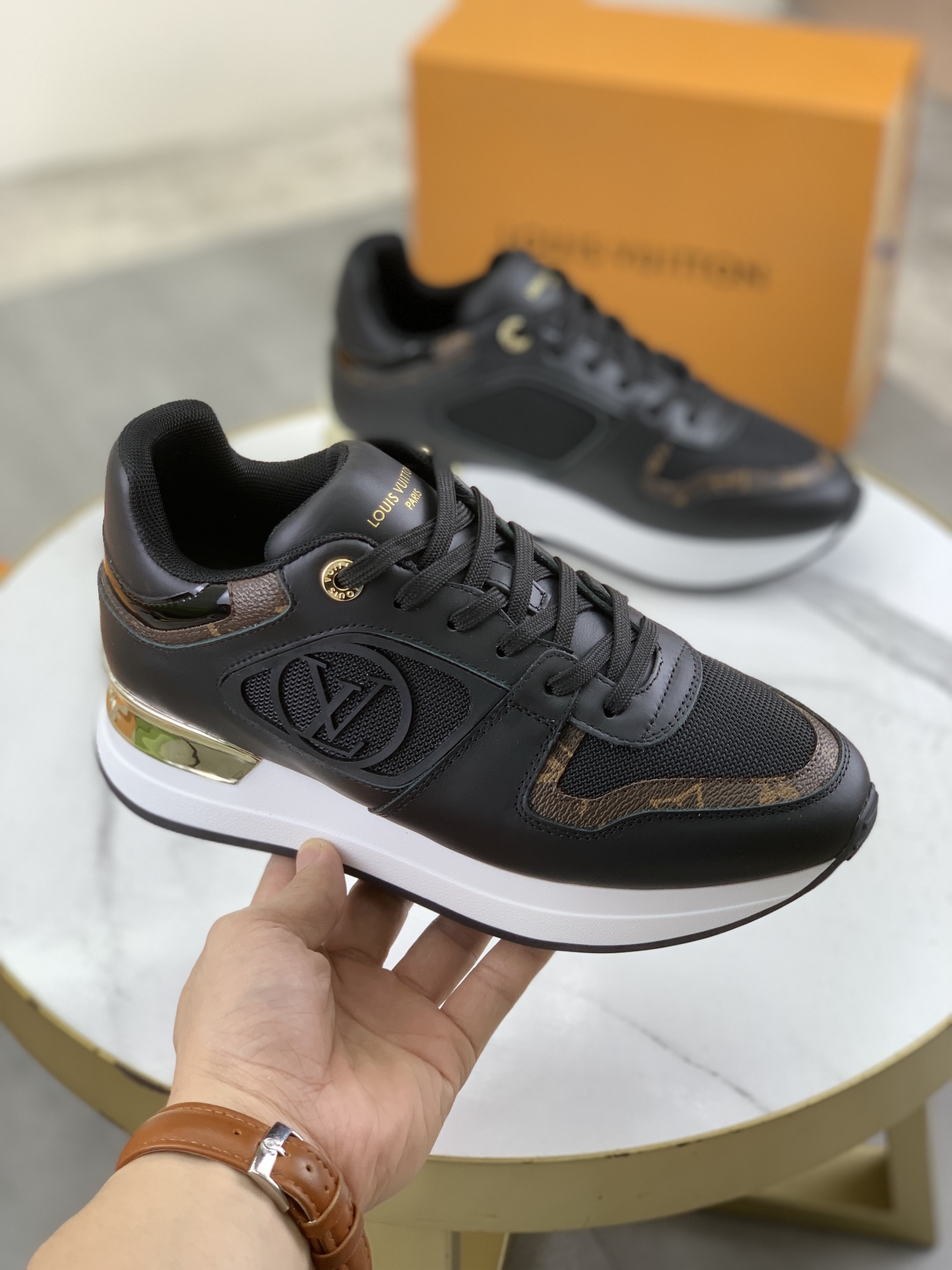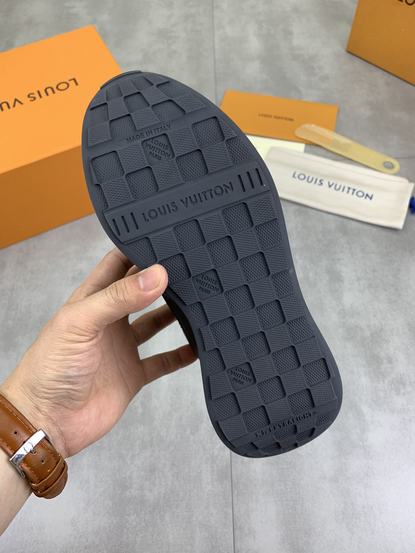 This shoes is AAAAA 1:1 quality (superb). Materials used are identical to the original ones. Louis Vuitton trademark marks are indistinguishable to the authentic. Photos take by actual shoes, what you receive will be 100% same with our photos.