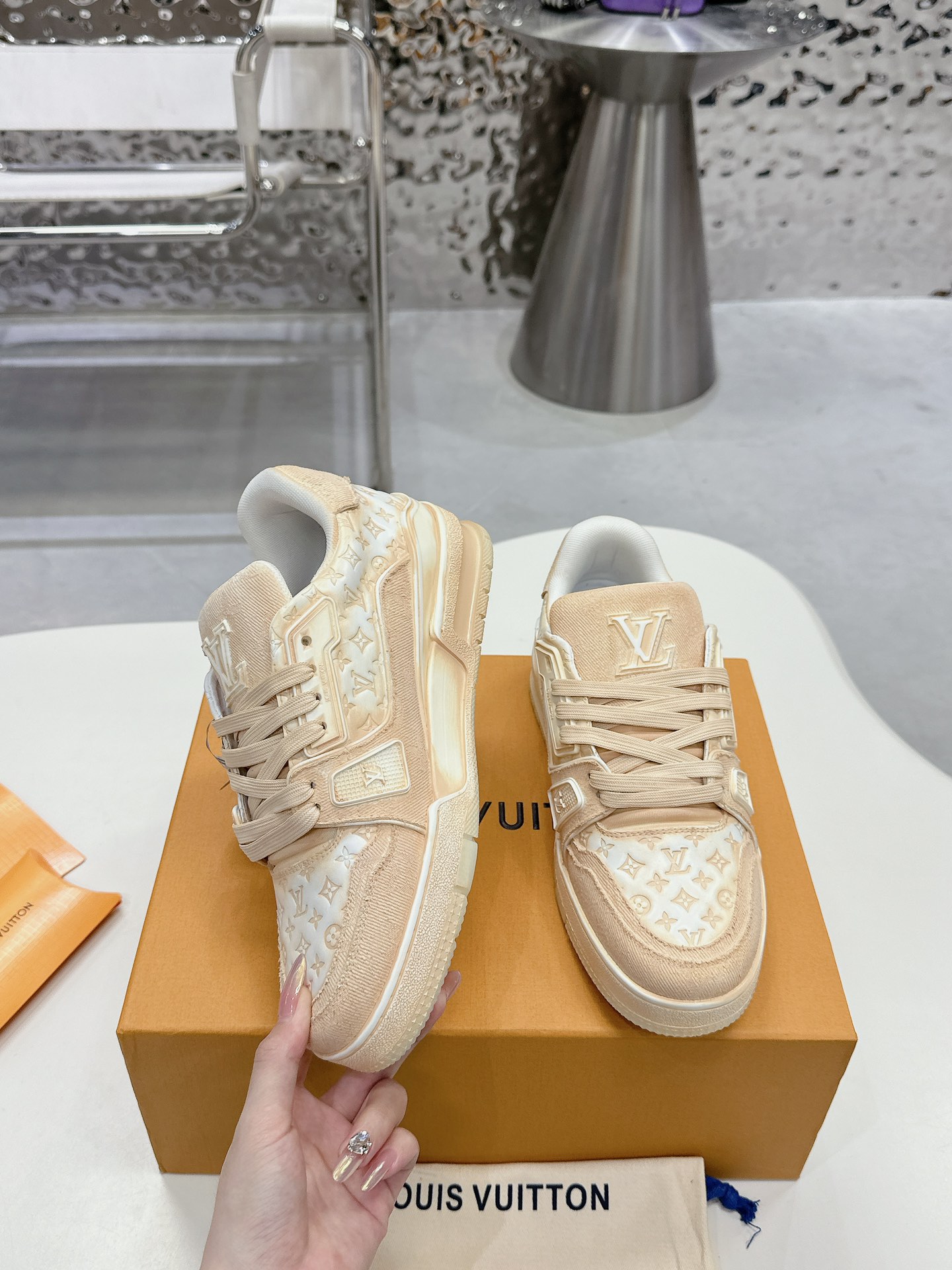 This shoes is AAAAA 1:1 quality (superb). Materials used are identical to the original ones. Louis Vuitton trademark marks are indistinguishable to the authentic. Photos take by actual shoes, what you receive will be 100% same with our photos.