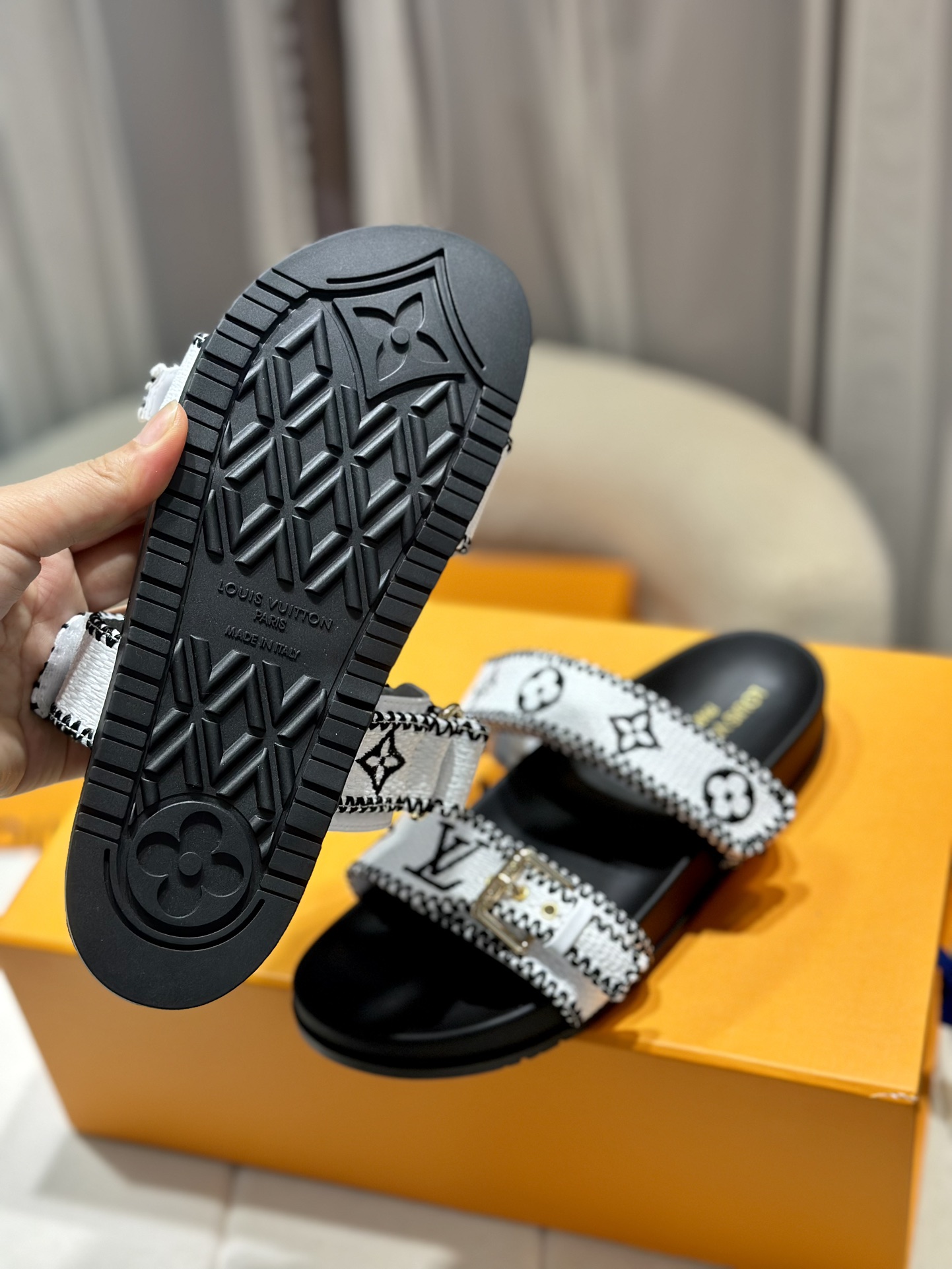 This shoes is AAAAA 1:1 quality (superb). Materials used are identical to the original ones. Louis Vuitton trademark marks are indistinguishable to the authentic. Photos take by actual shoes, what you receive will be 100% same with our photos.