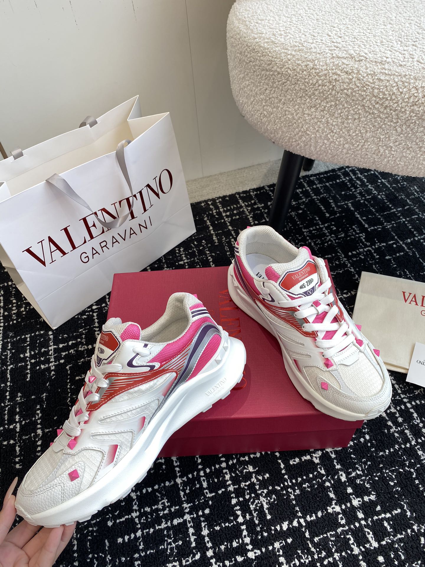 This shoes is AAAAA 1:1 quality (superb). Materials used are identical to the original ones. Valentino trademark marks are indistinguishable to the authentic. Photos take by actual shoes, what you receive will be 100% same with our photos.