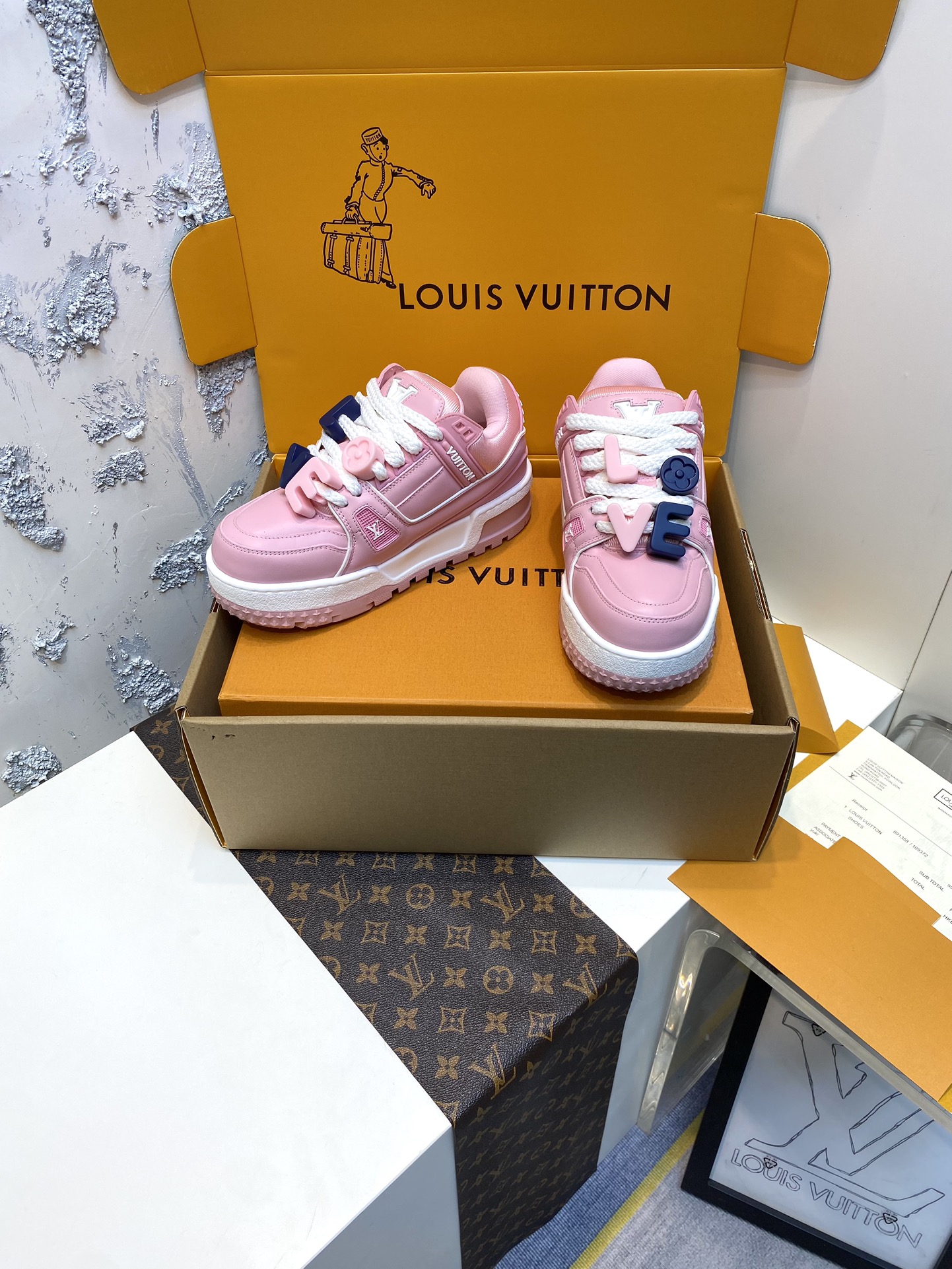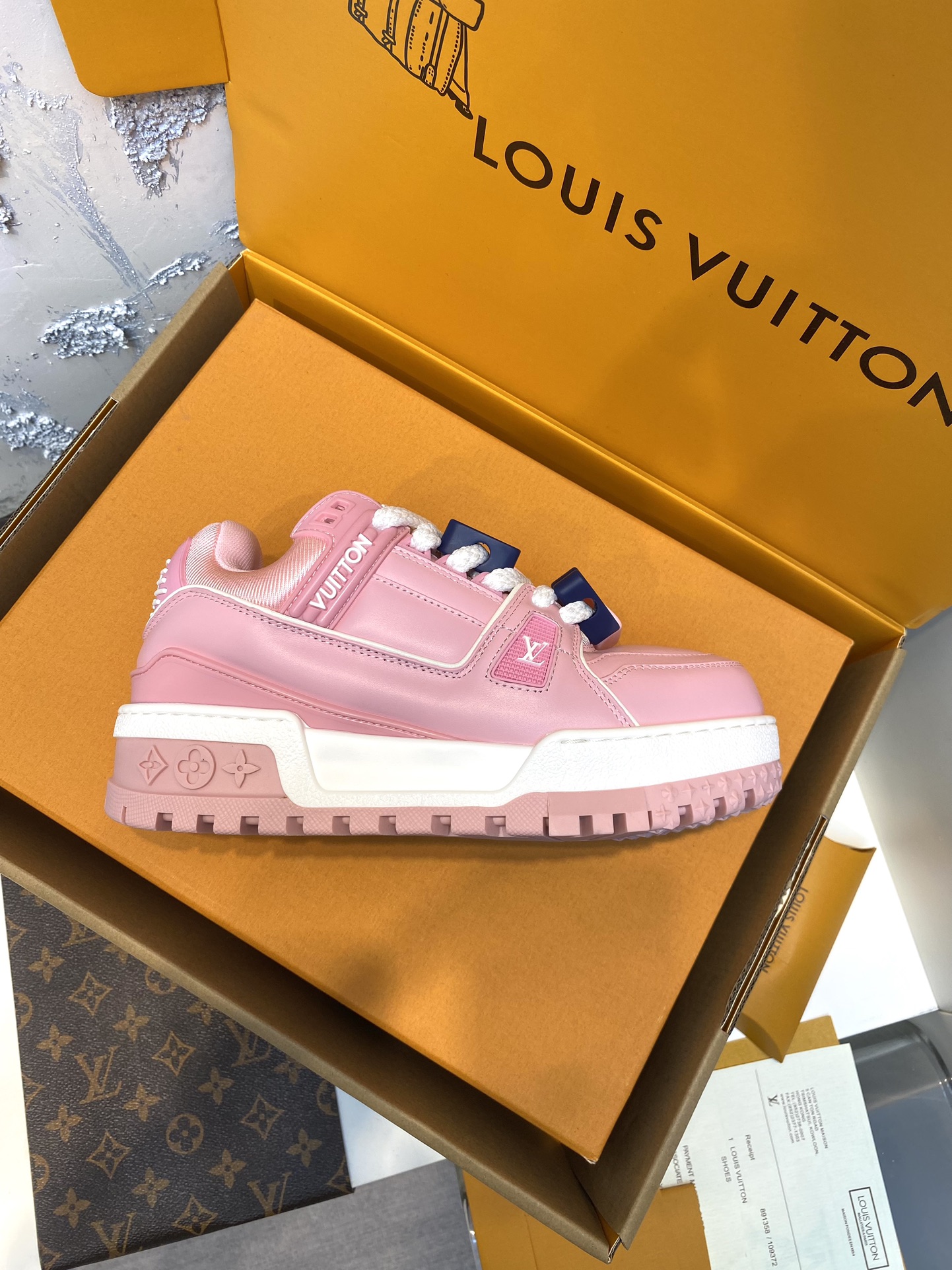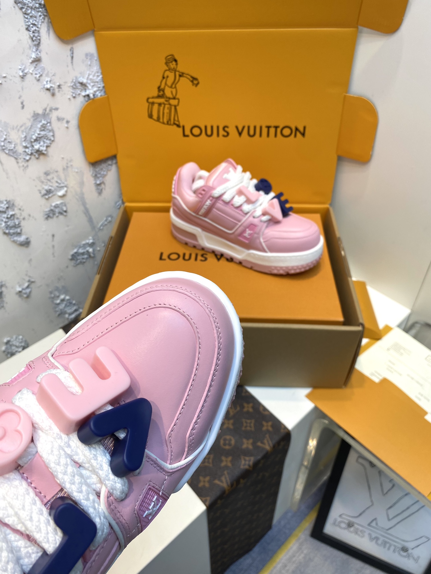 This shoes is AAAAA 1:1 quality (superb). Materials used are identical to the original ones. Louis Vuitton trademark marks are indistinguishable to the authentic. Photos take by actual shoes, what you receive will be 100% same with our photos.
