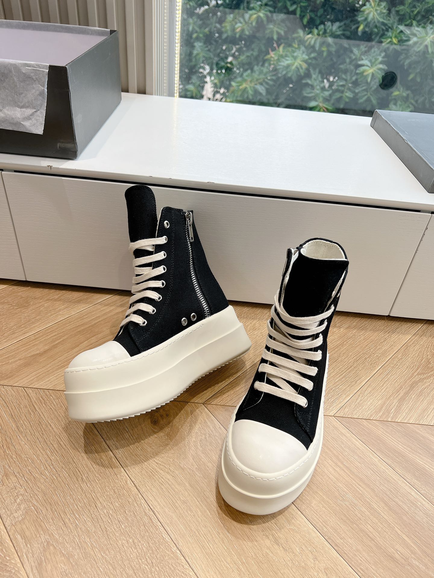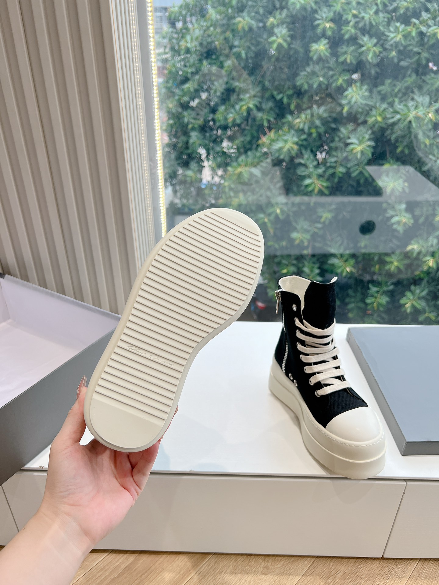 This shoes is AAAAA 1:1 quality (superb). Materials used are identical to the original ones. Rick Owens trademark marks are indistinguishable to the authentic. Photos take by actual shoes, what you receive will be 100% same with our photos.