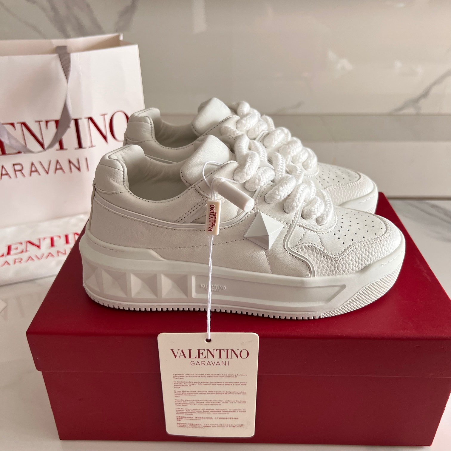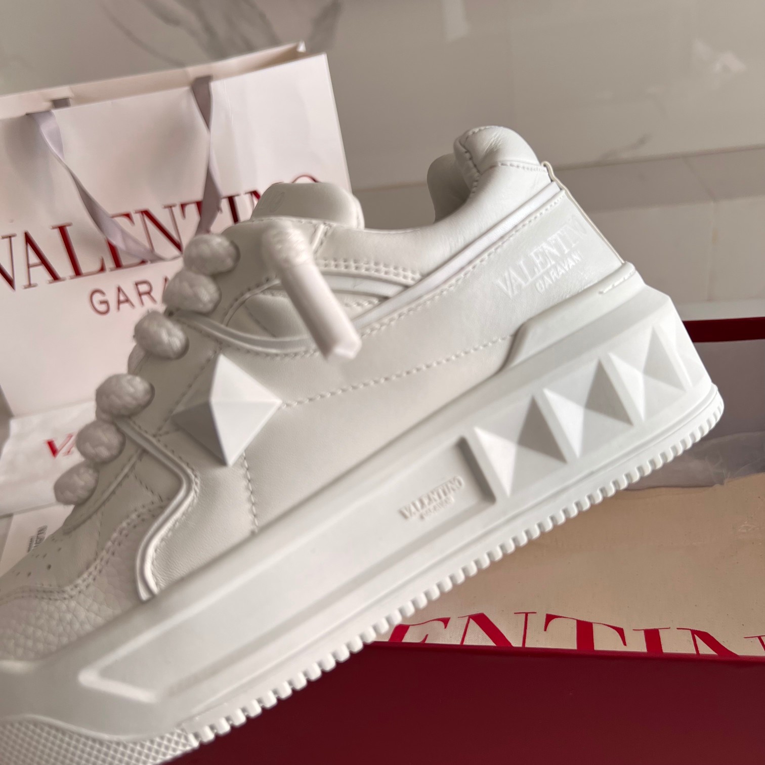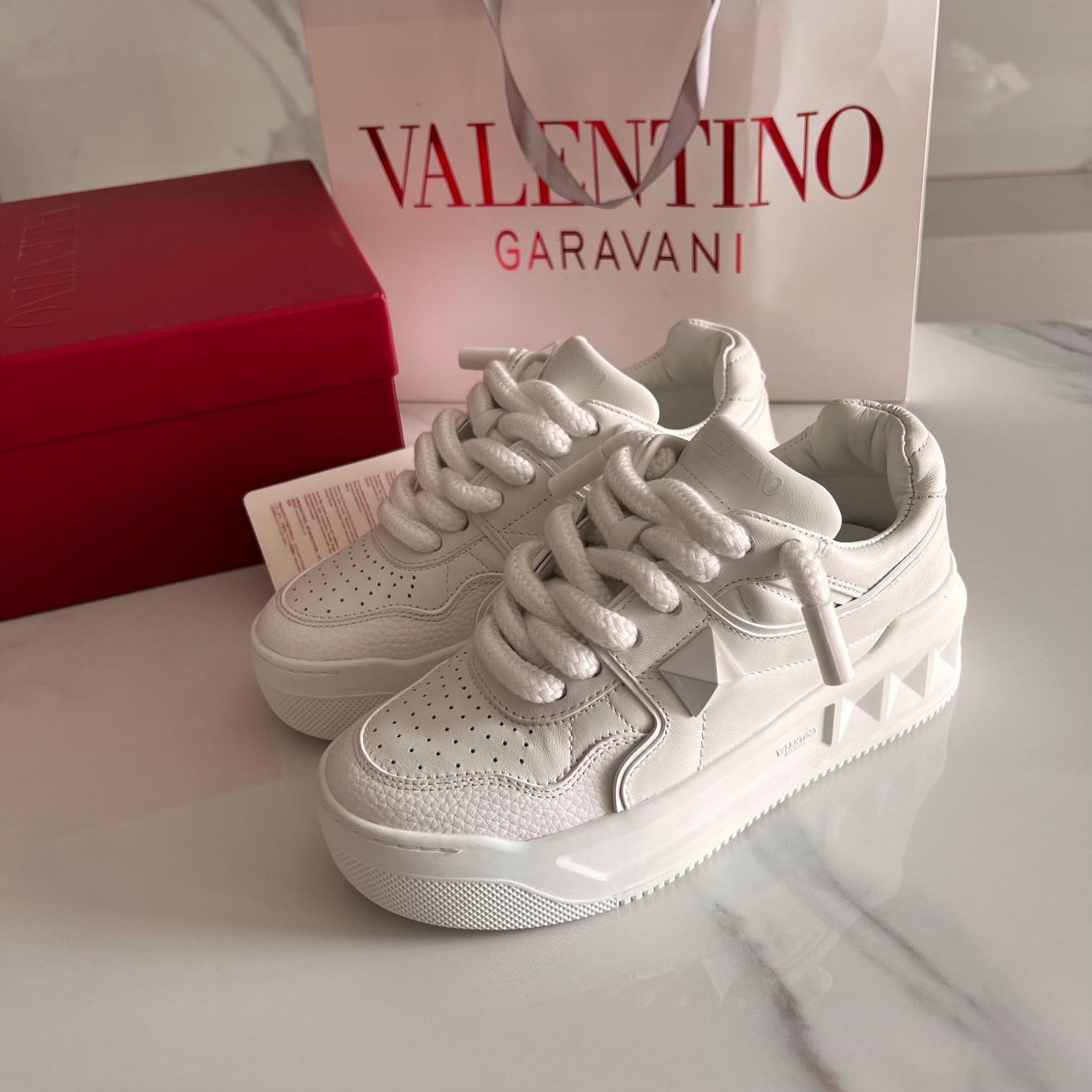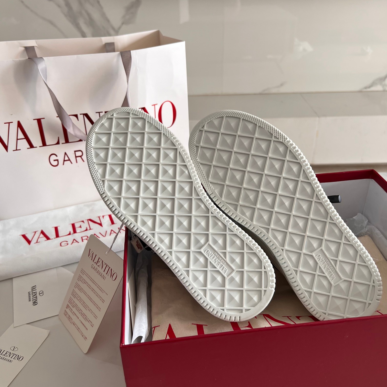 This shoes is AAAAA 1:1 quality (superb). Materials used are identical to the original ones. Valentino trademark marks are indistinguishable to the authentic. Photos take by actual shoes, what you receive will be 100% same with our photos.