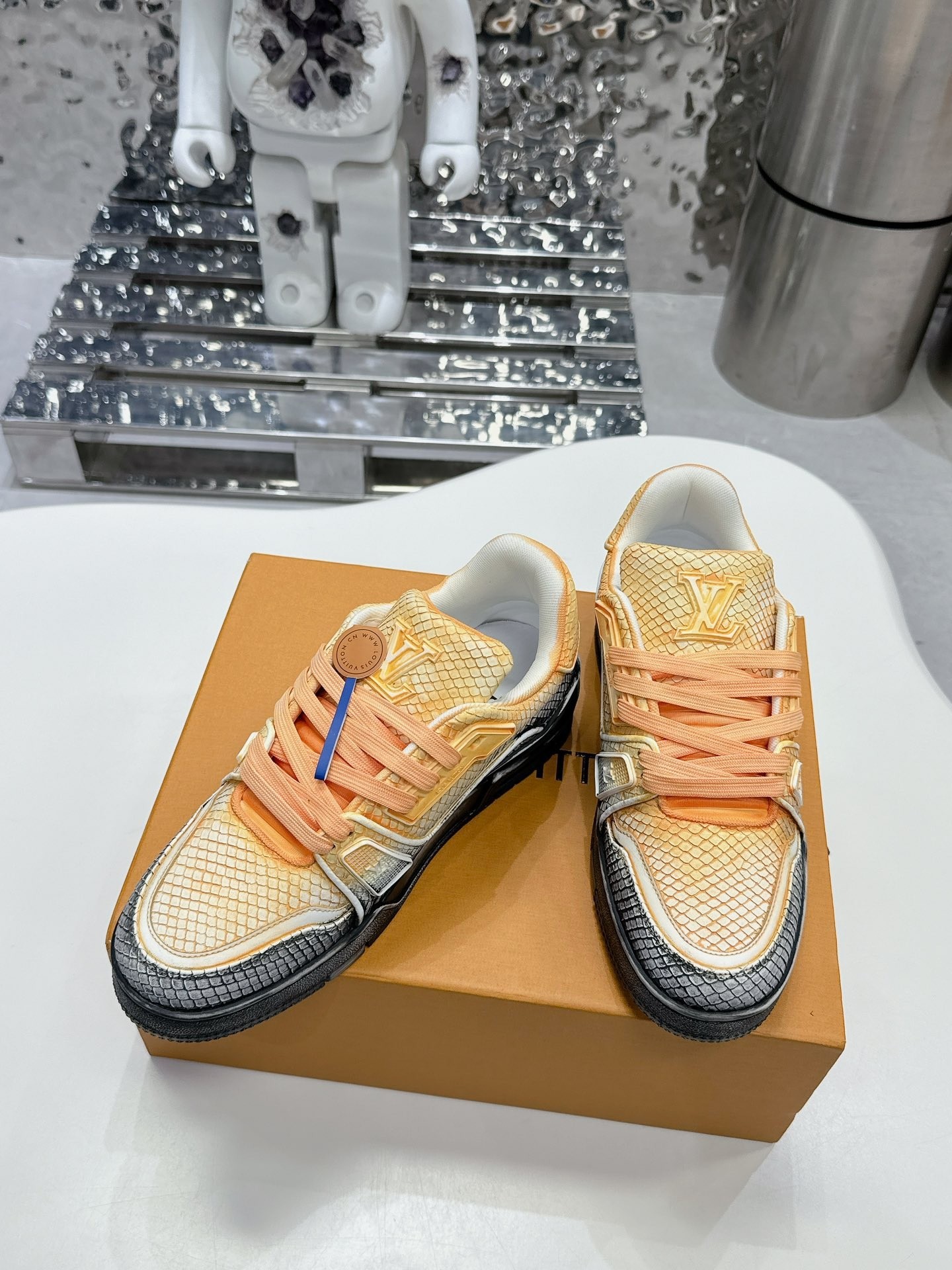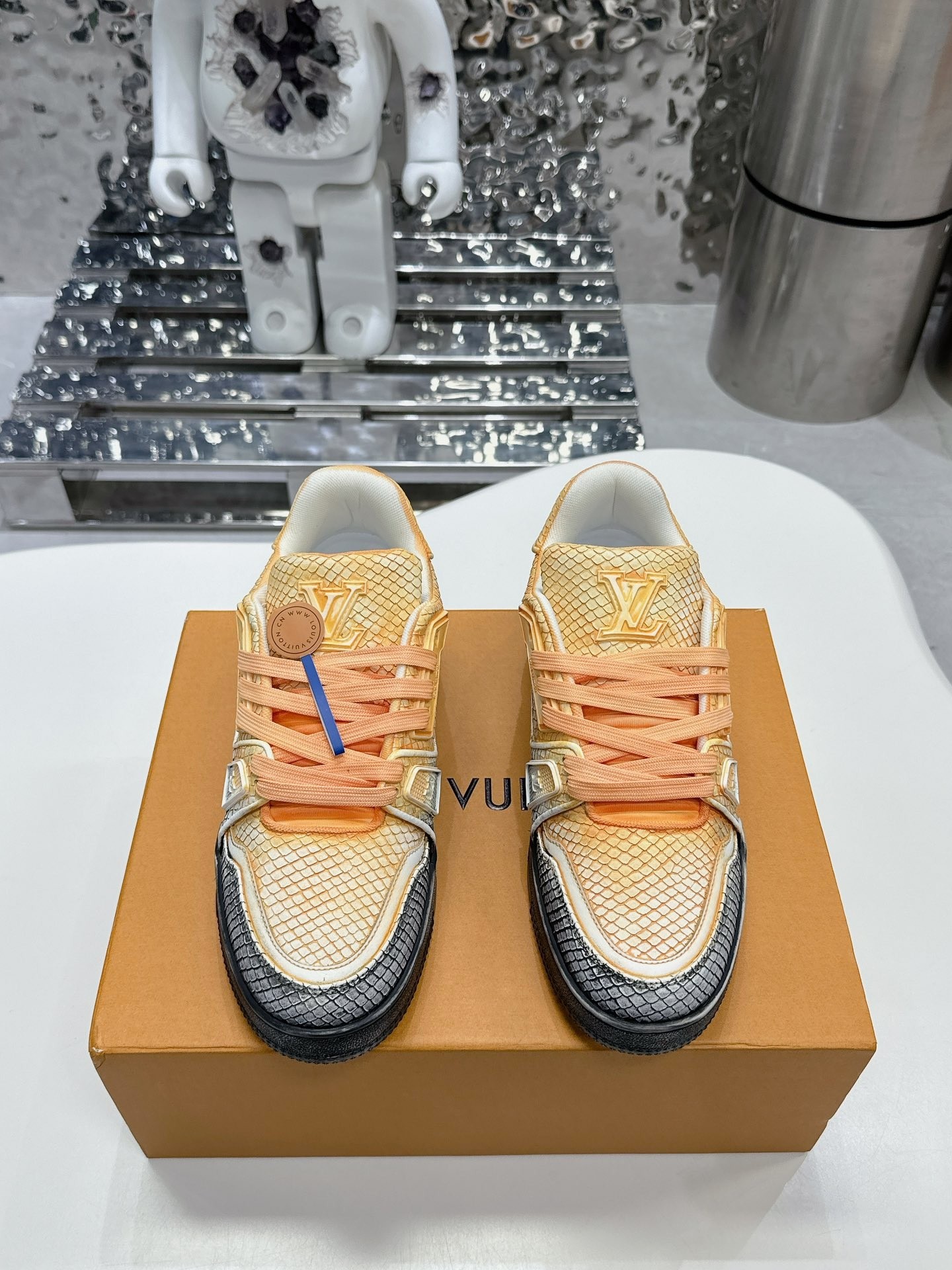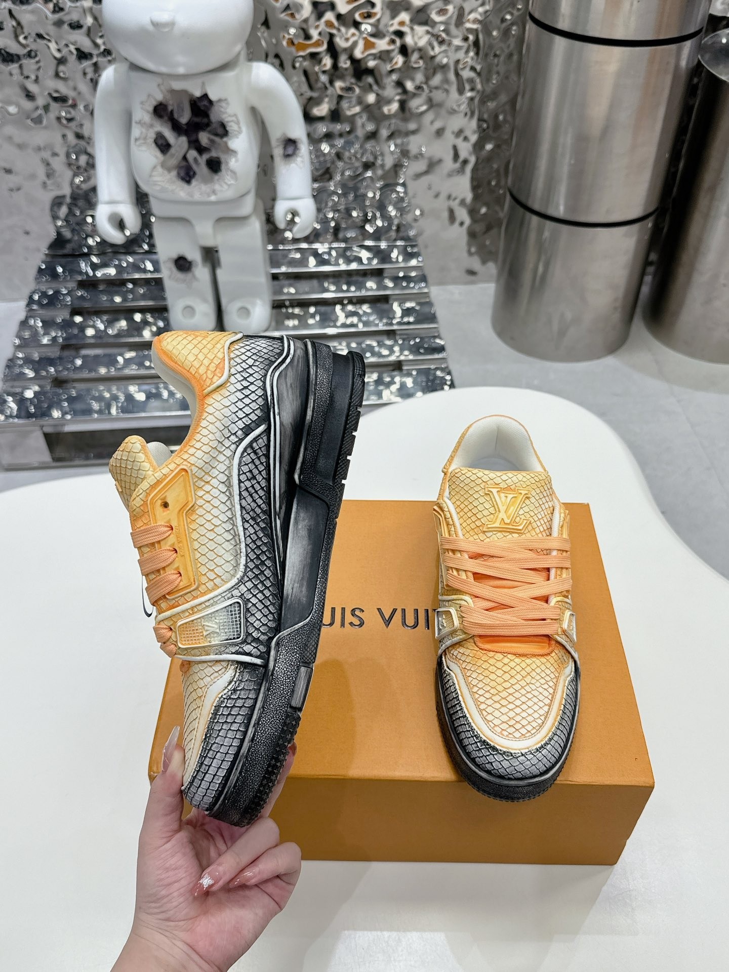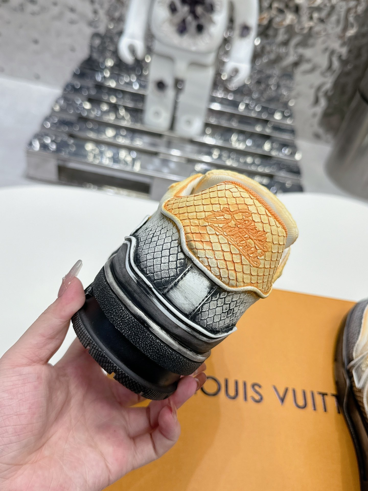 This shoes is AAAAA 1:1 quality (superb). Materials used are identical to the original ones. Louis Vuitton trademark marks are indistinguishable to the authentic. Photos take by actual shoes, what you receive will be 100% same with our photos.