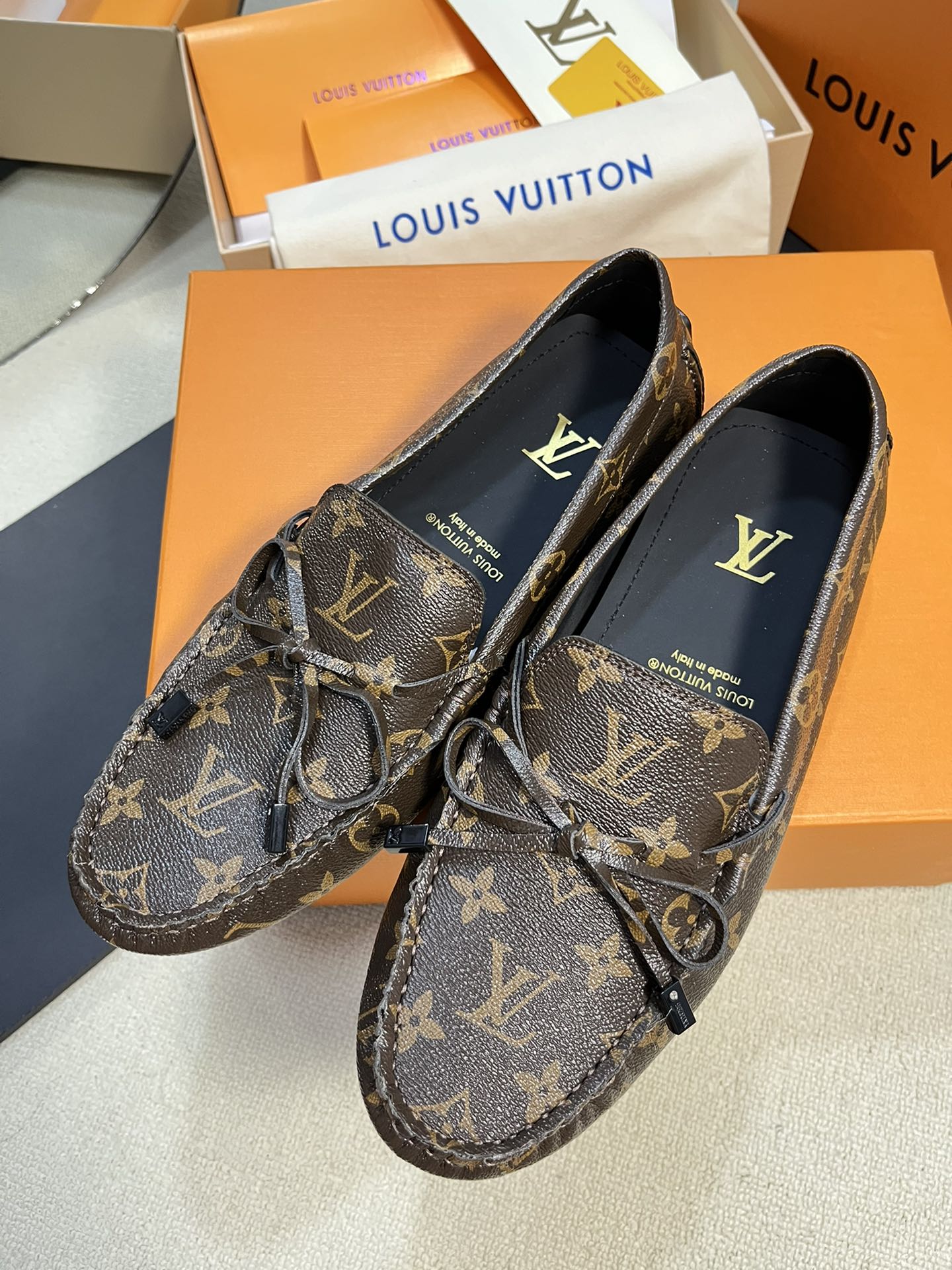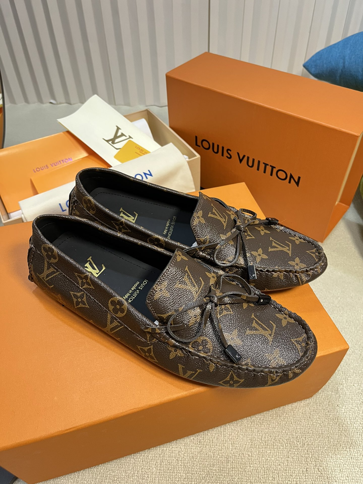 This shoes is AAAAA 1:1 quality (superb). Materials used are identical to the original ones. Louis Vuitton trademark marks are indistinguishable to the authentic. Photos take by actual shoes, what you receive will be 100% same with our photos.