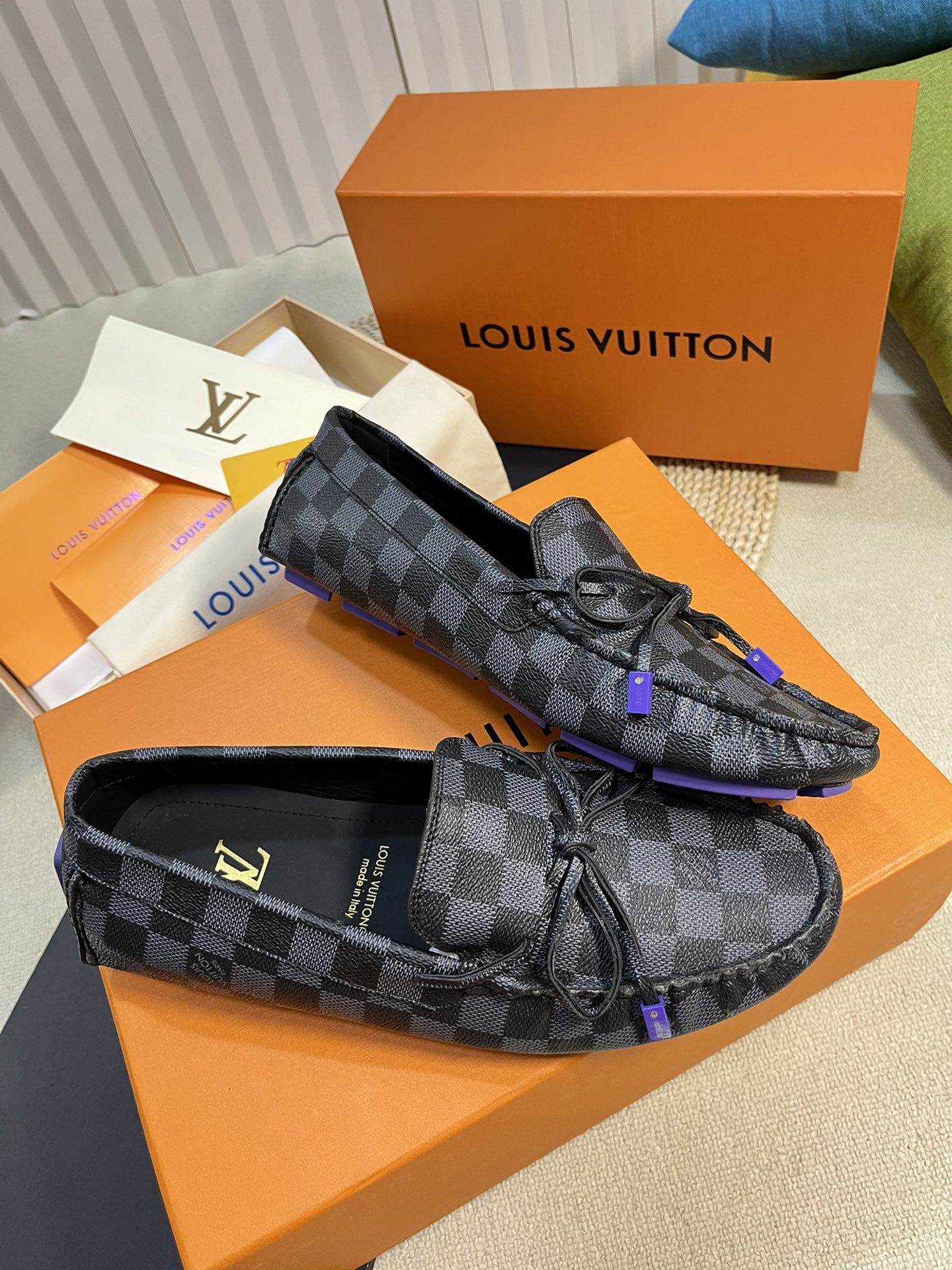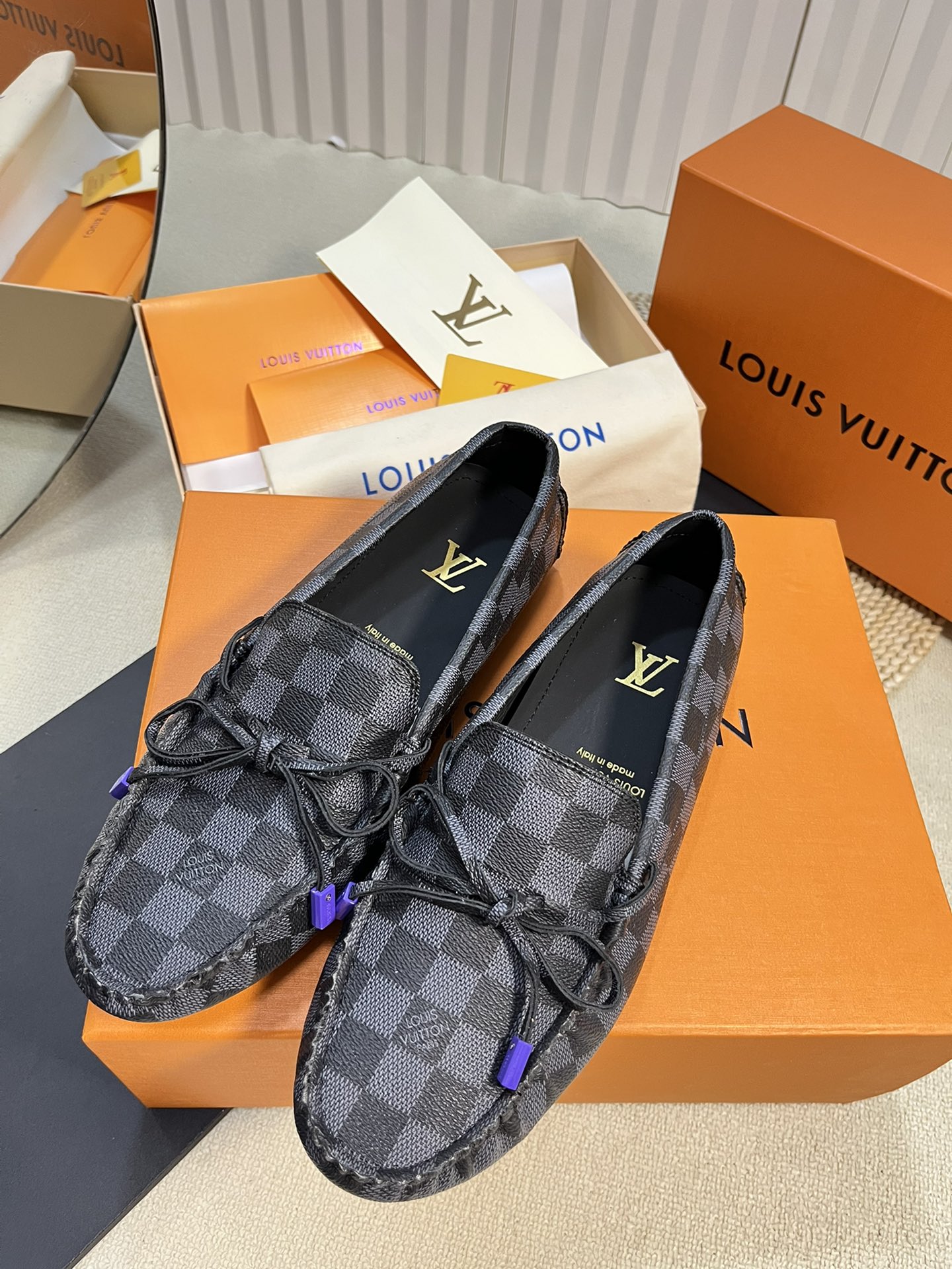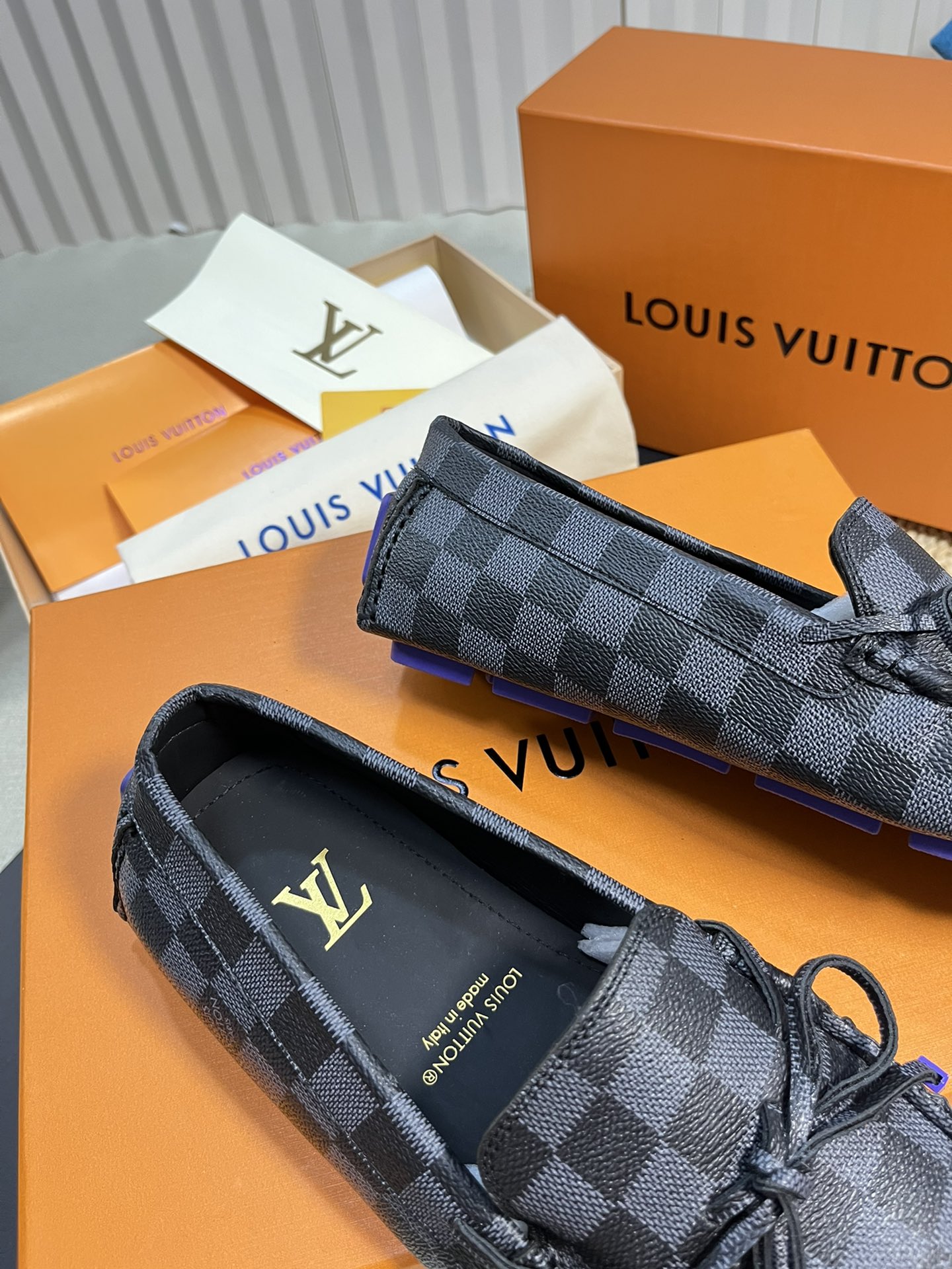 This shoes is AAAAA 1:1 quality (superb). Materials used are identical to the original ones. Louis Vuitton trademark marks are indistinguishable to the authentic. Photos take by actual shoes, what you receive will be 100% same with our photos.