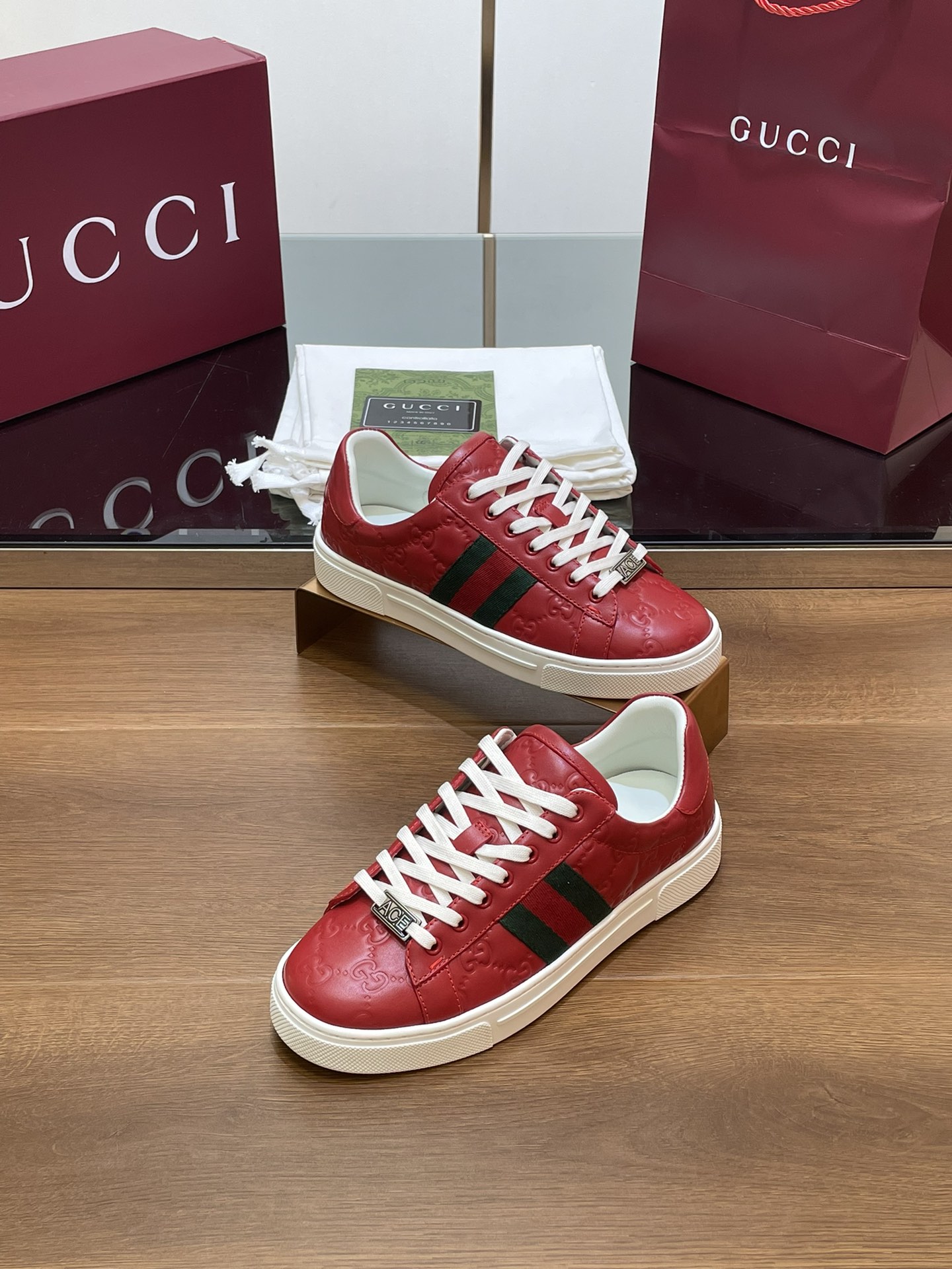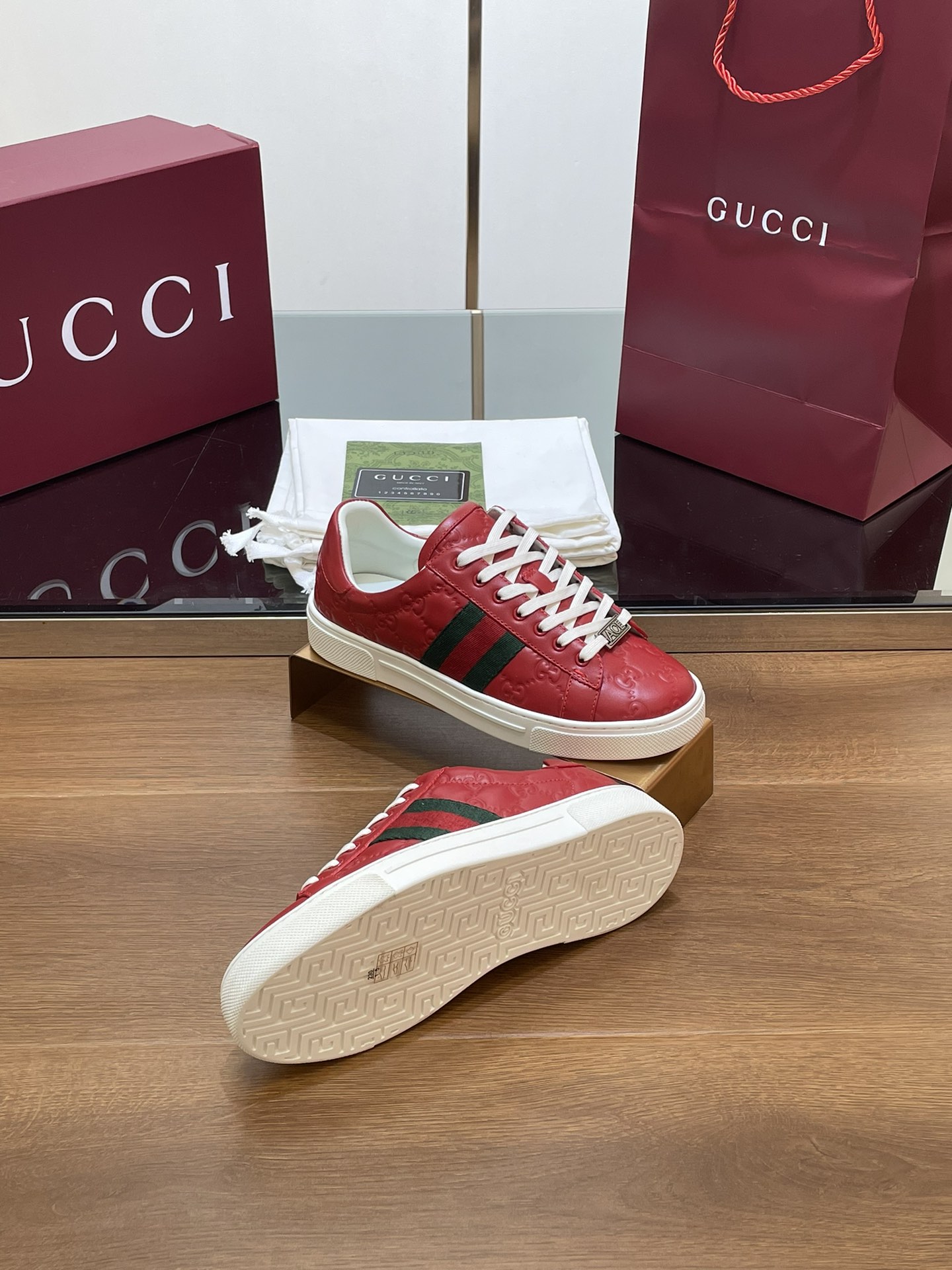 This shoes is AAAAA 1:1 quality (superb). Materials used are identical to the original ones. Gucci trademark marks are indistinguishable to the authentic. Photos take by actual shoes, what you receive will be 100% same with our photos.