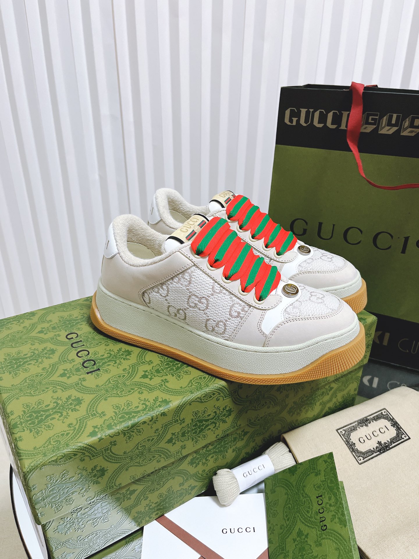 This shoes is AAAAA 1:1 quality (superb). Materials used are identical to the original ones. Gucci trademark marks are indistinguishable to the authentic. Photos take by actual shoes, what you receive will be 100% same with our photos.