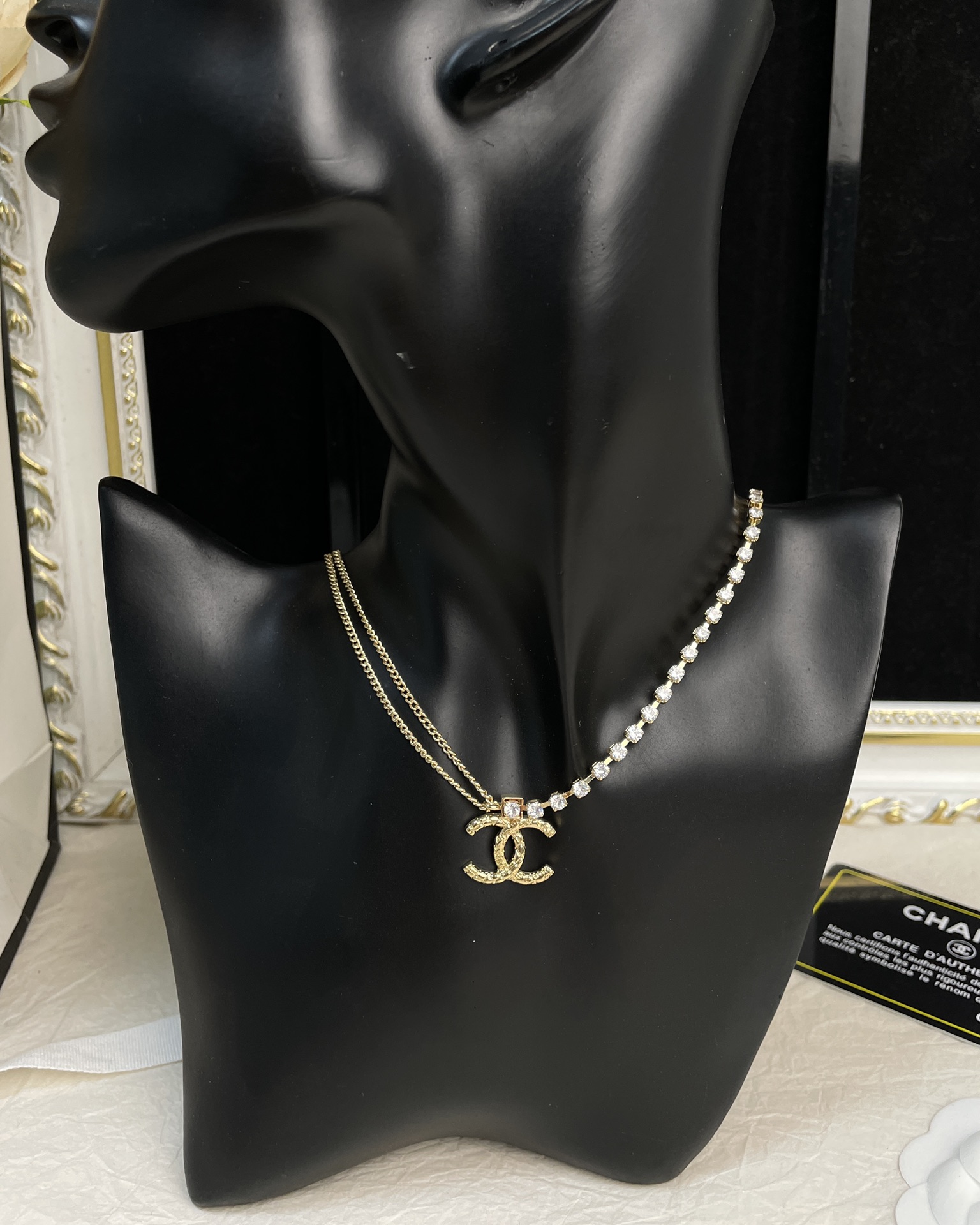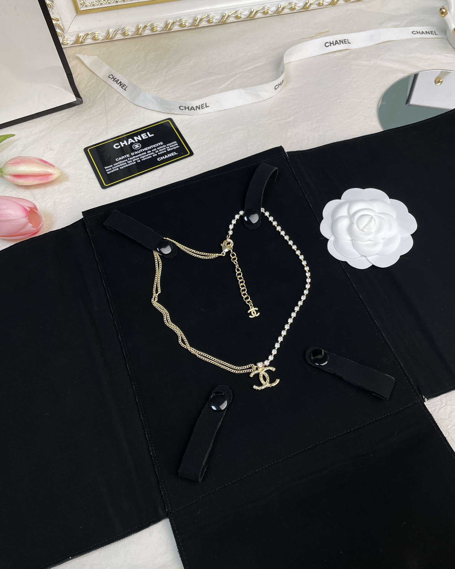 This jewelry is AAAAA 1:1 quality (superb). Materials used are identical to the original ones. Chanel trademark marks are indistinguishable to the authentic. Photos take by actual jewelry, what you receive will be 100% same with our photos.