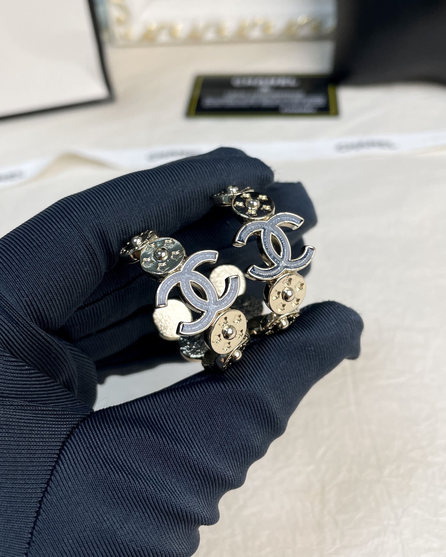 This jewelry is AAAAA 1:1 quality (superb). Materials used are identical to the original ones. Chanel trademark marks are indistinguishable to the authentic. Photos take by actual jewelry, what you receive will be 100% same with our photos.