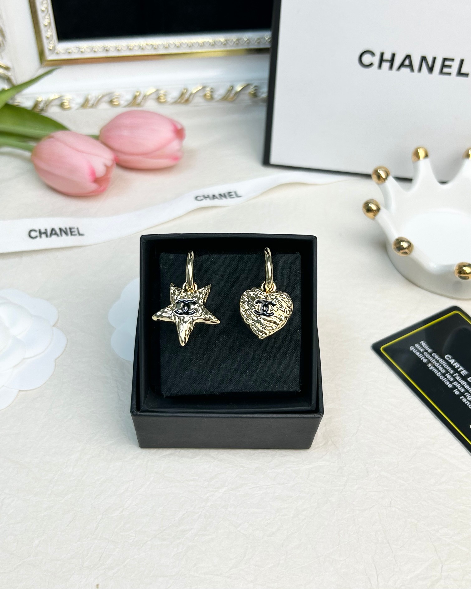 This jewelry is AAAAA 1:1 quality (superb). Materials used are identical to the original ones. Chanel trademark marks are indistinguishable to the authentic. Photos take by actual jewelry, what you receive will be 100% same with our photos.