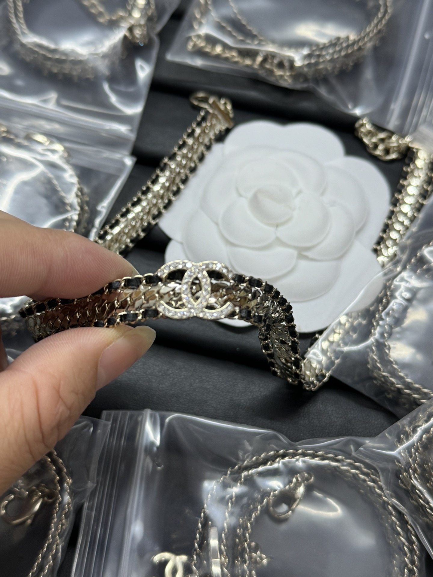 This jewelry is AAAAA 1:1 quality (superb). Materials used are identical to the original ones. Chanel trademark marks are indistinguishable to the authentic. Photos take by actual jewelry, what you receive will be 100% same with our photos.