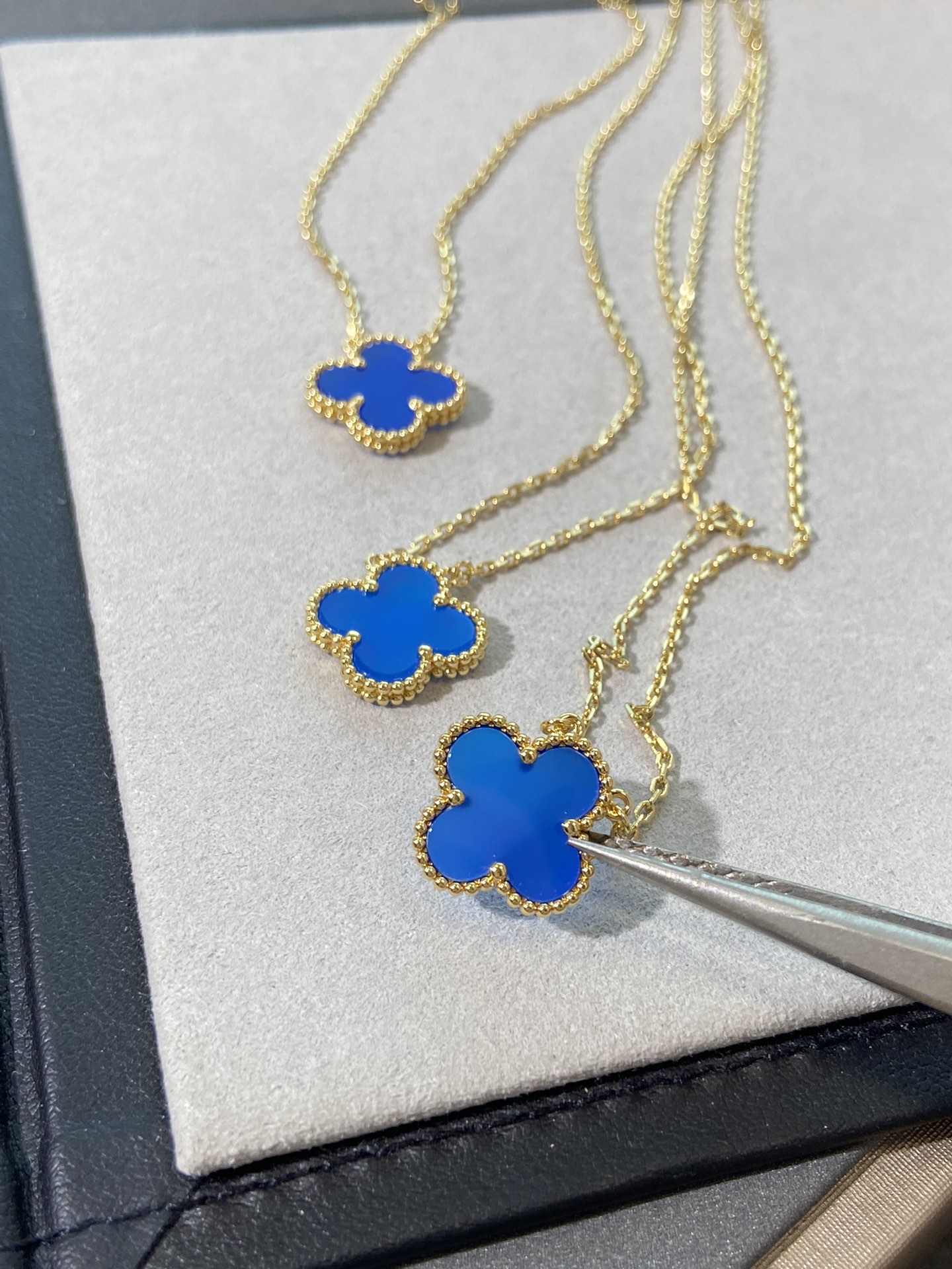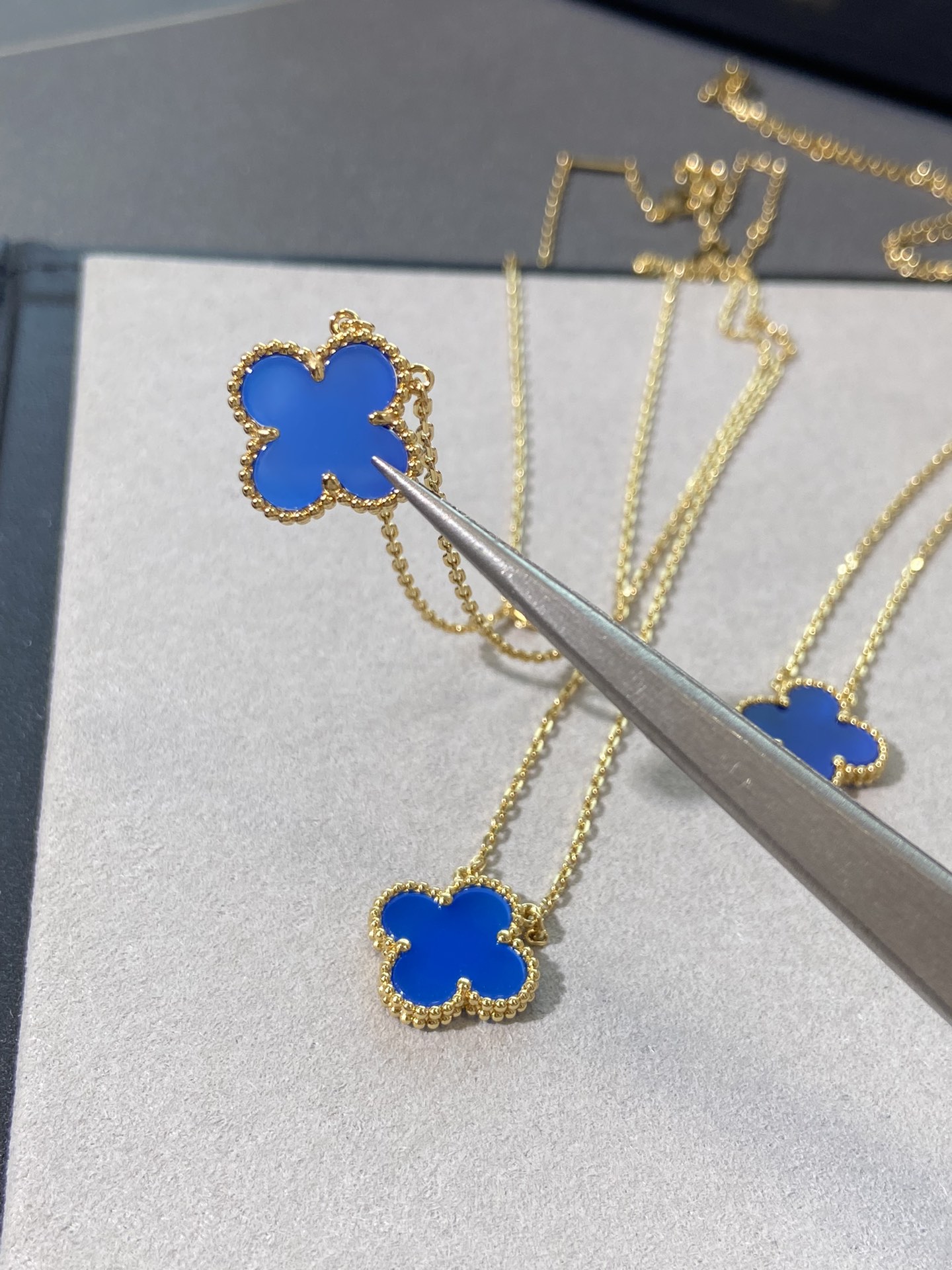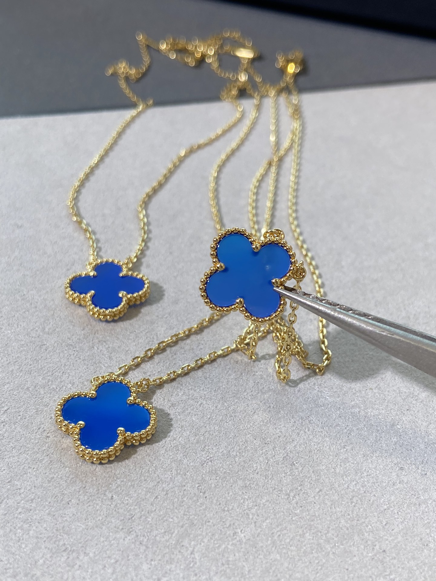 This jewelry is AAAAA 1:1 quality (superb). Materials used are identical to the original ones. Van Cleef & Arpels trademark marks are indistinguishable to the authentic. Photos take by actual jewelry, what you receive will be 100% same with our photos.
