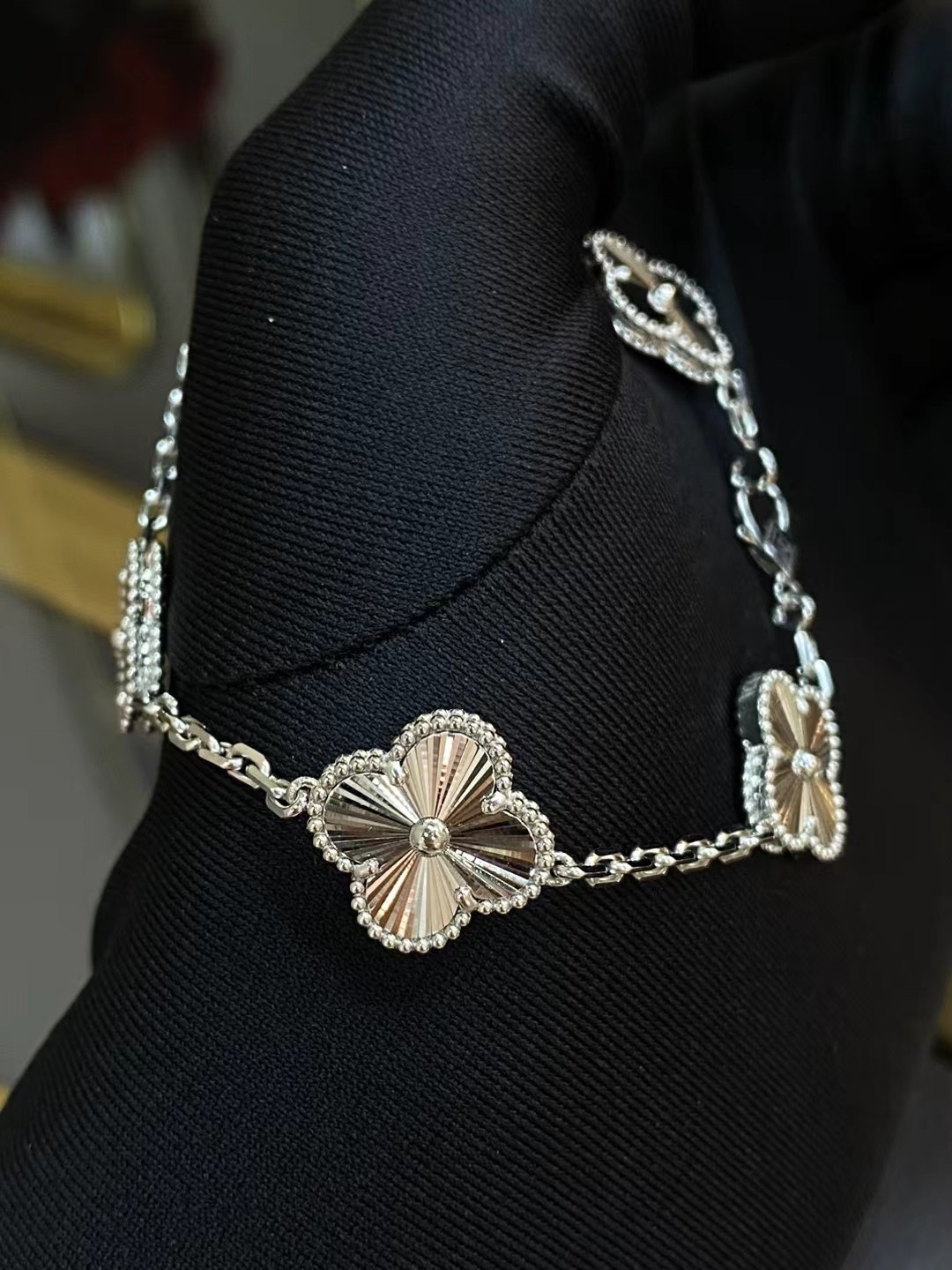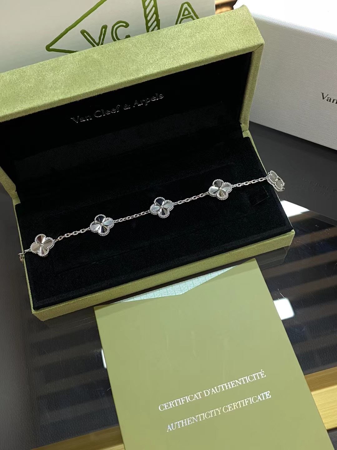 This jewelry is AAAAA 1:1 quality (superb). Materials used are identical to the original ones. Van Cleef & Arpels trademark marks are indistinguishable to the authentic. Photos take by actual jewelry, what you receive will be 100% same with our photos.