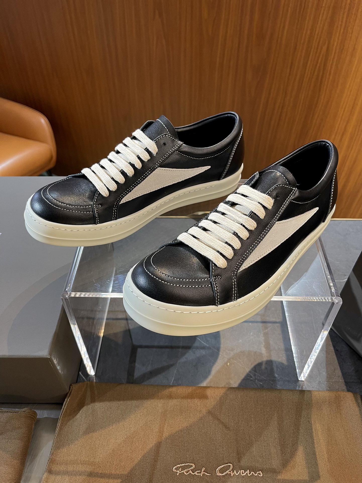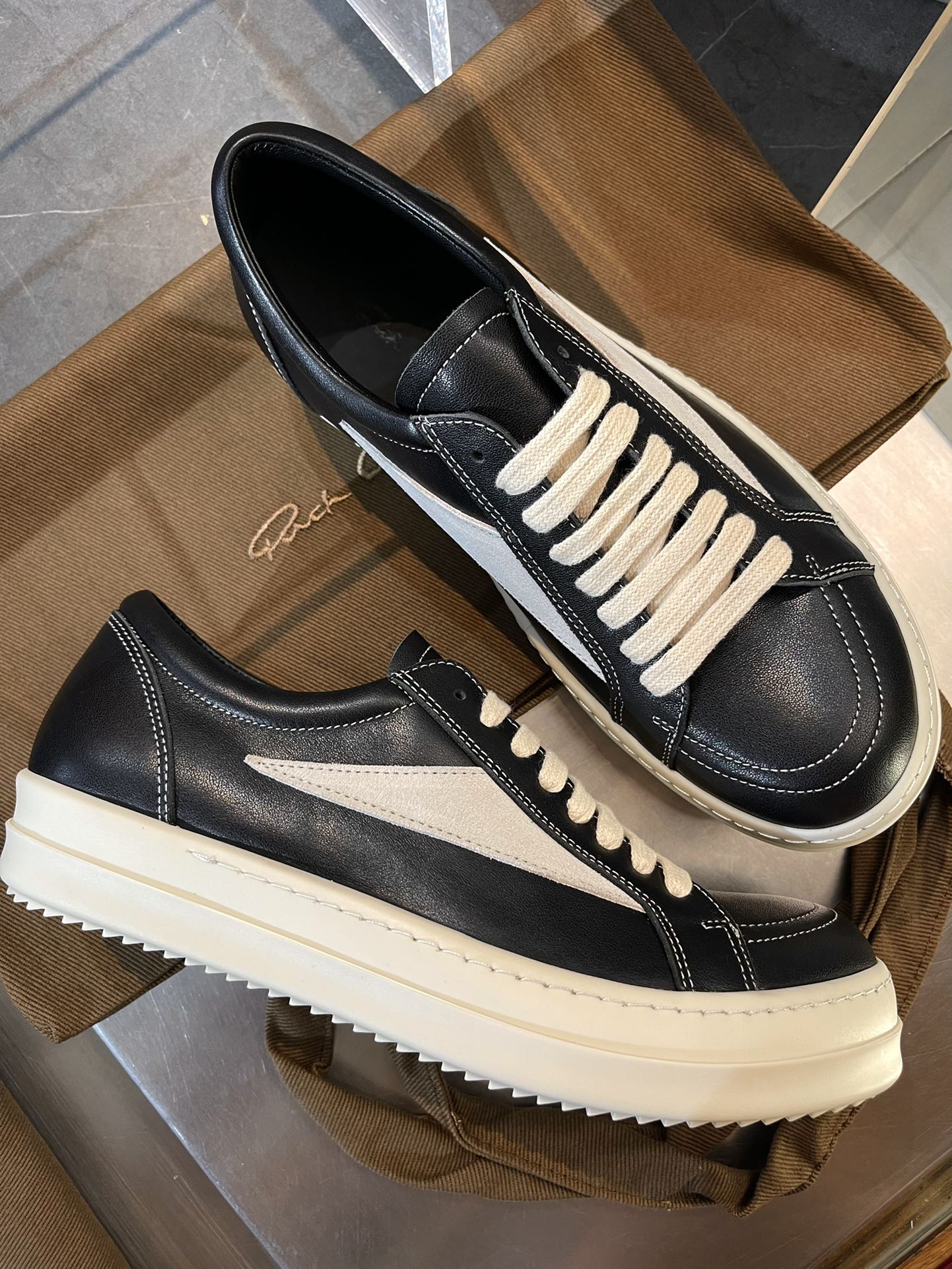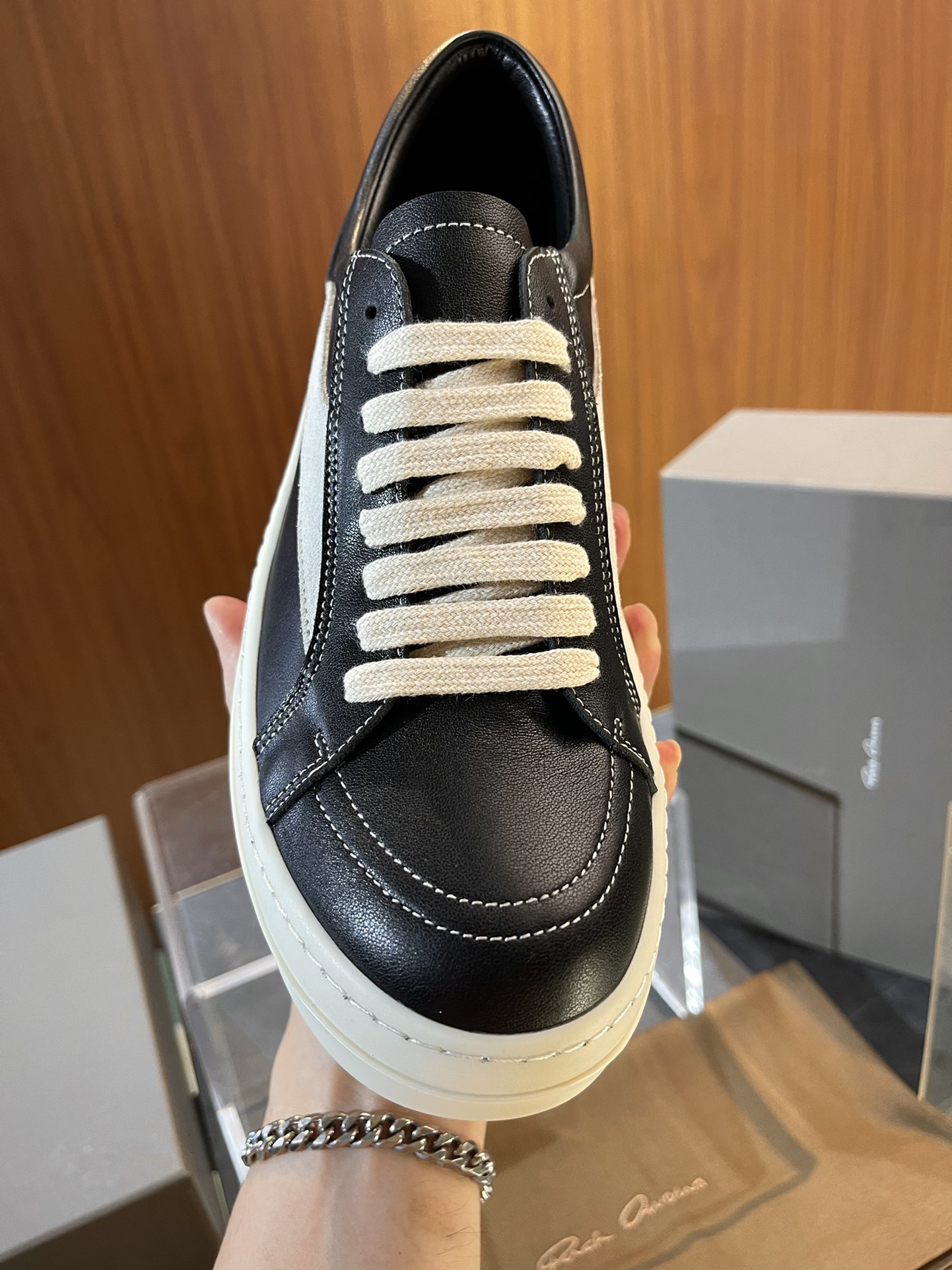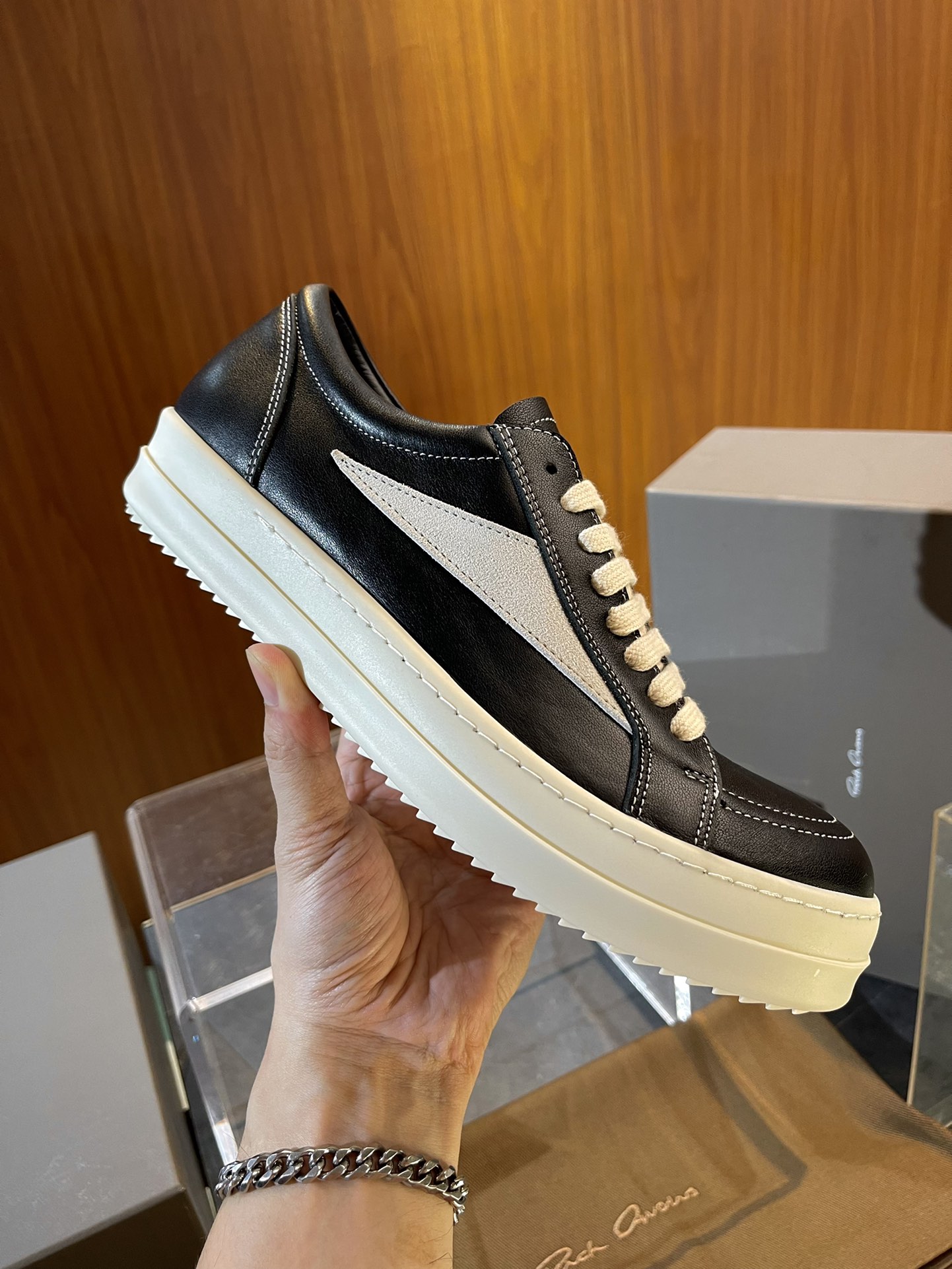 This shoes is AAAAA 1:1 quality (superb). Materials used are identical to the original ones. Rick Owens trademark marks are indistinguishable to the authentic. Photos take by actual shoes, what you receive will be 100% same with our photos.