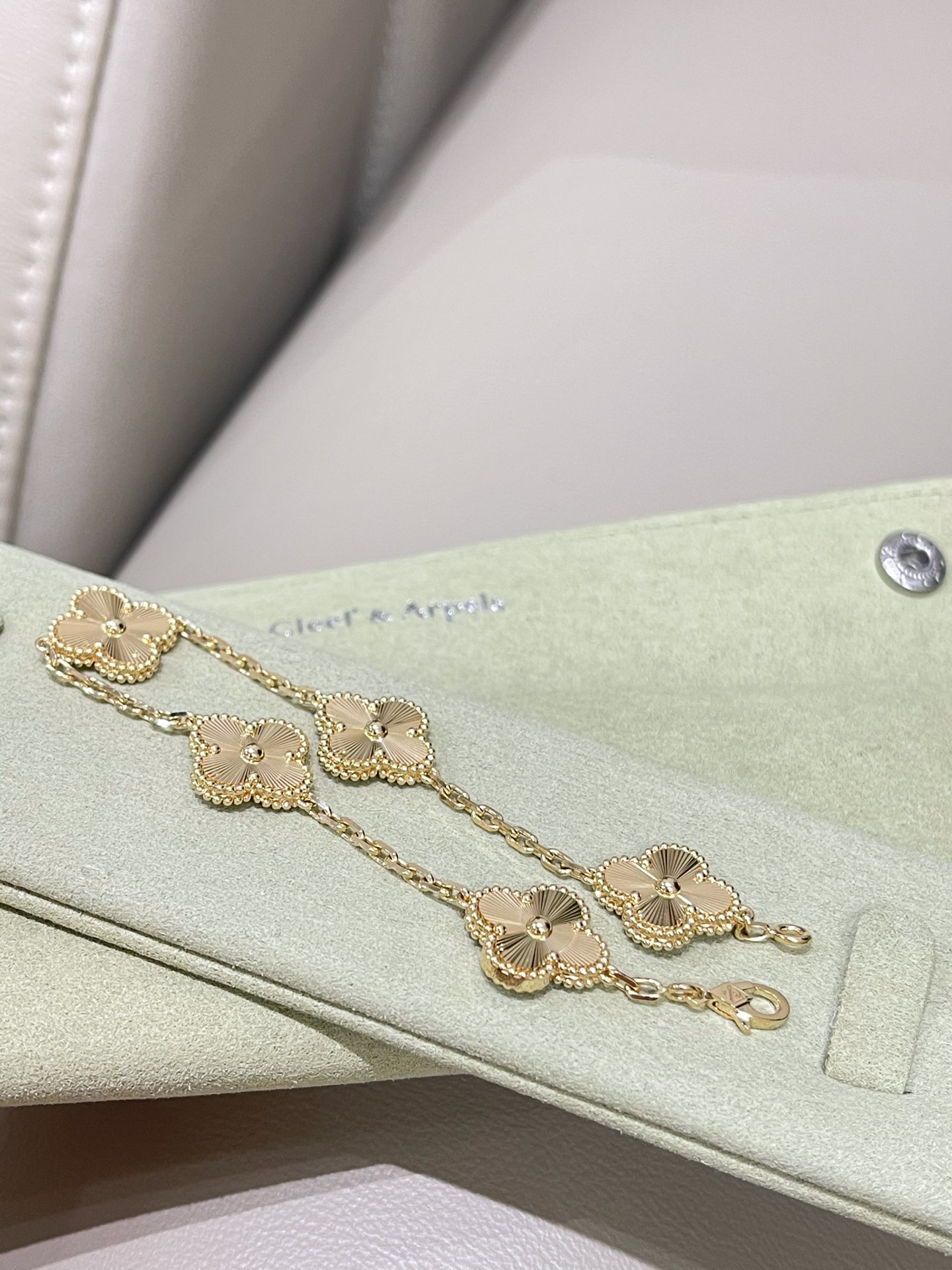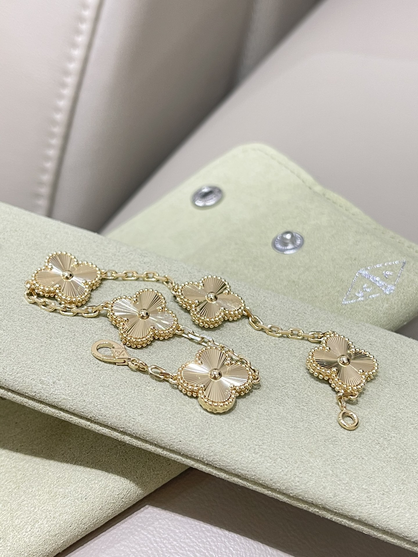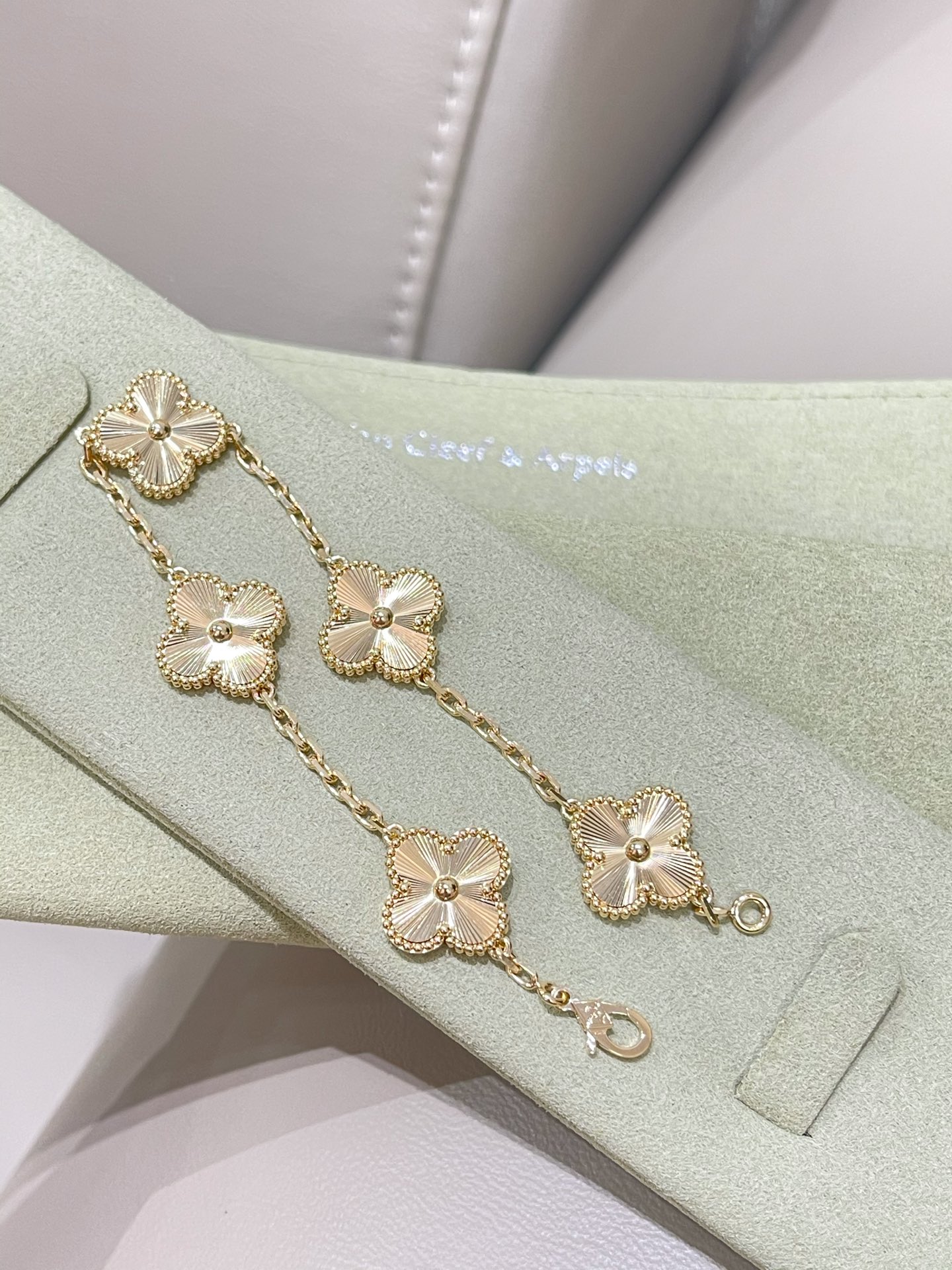 This jewelry is AAAAA 1:1 quality (superb). Materials used are identical to the original ones. Van Cleef & Arpels trademark marks are indistinguishable to the authentic. Photos take by actual jewelry, what you receive will be 100% same with our photos.