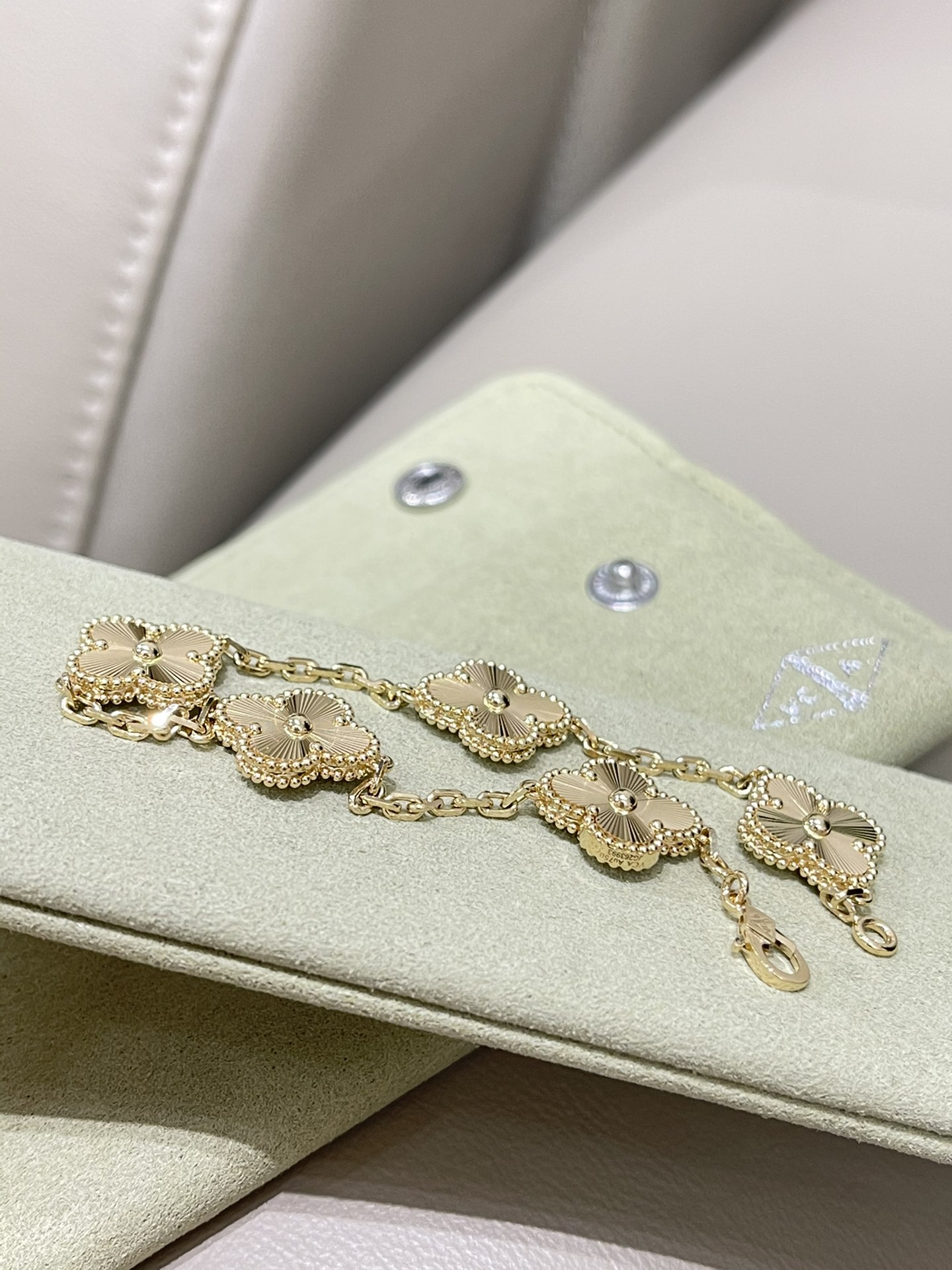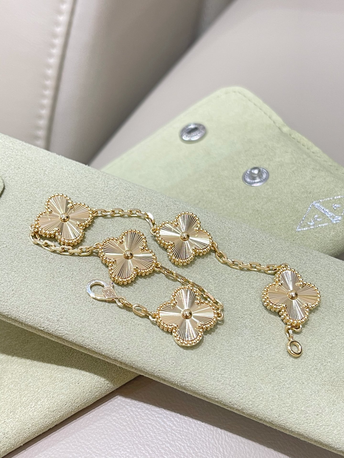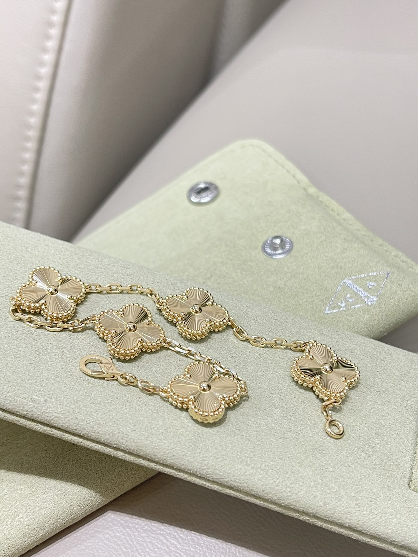 This jewelry is AAAAA 1:1 quality (superb). Materials used are identical to the original ones. Van Cleef & Arpels trademark marks are indistinguishable to the authentic. Photos take by actual jewelry, what you receive will be 100% same with our photos.