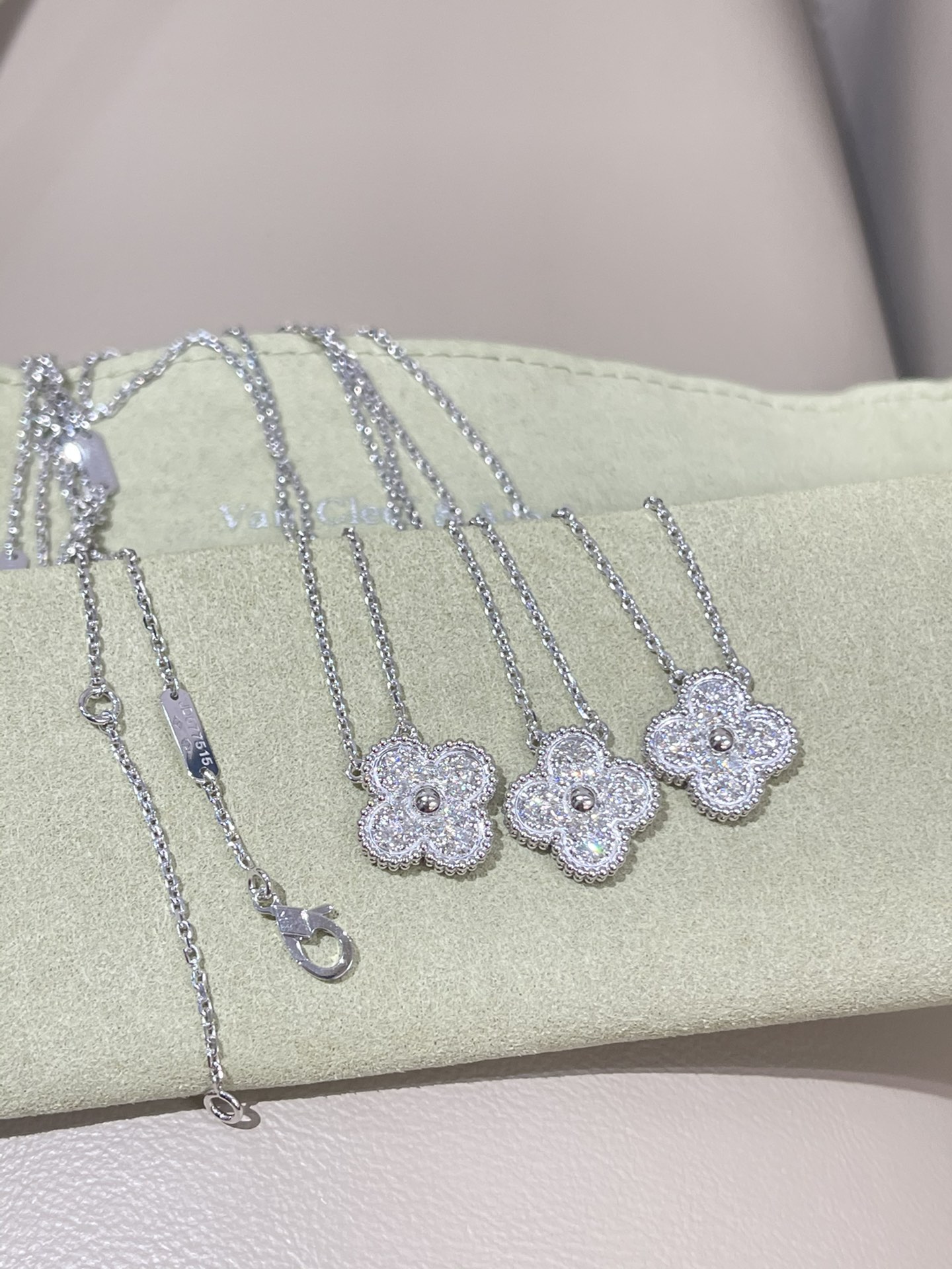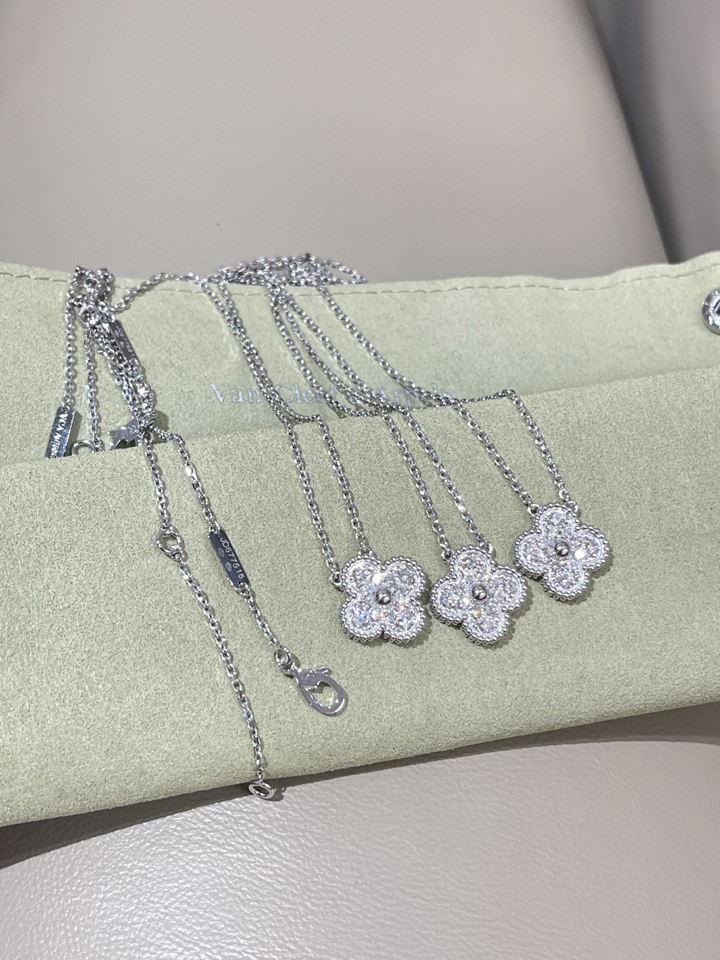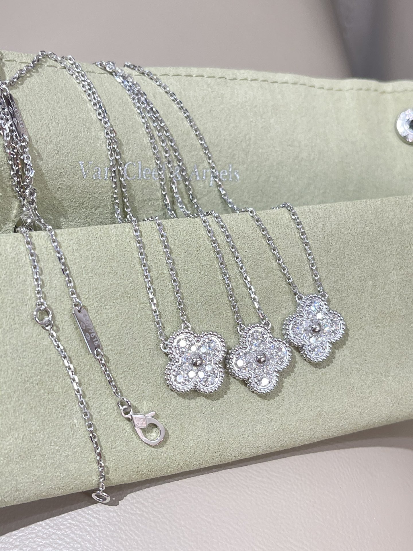 This jewelry is AAAAA 1:1 quality (superb). Materials used are identical to the original ones. Van Cleef & Arpels trademark marks are indistinguishable to the authentic. Photos take by actual jewelry, what you receive will be 100% same with our photos.