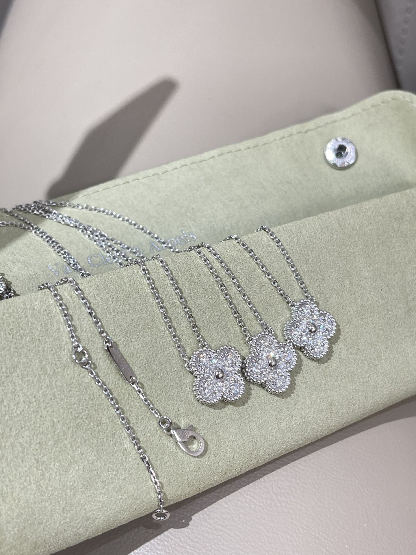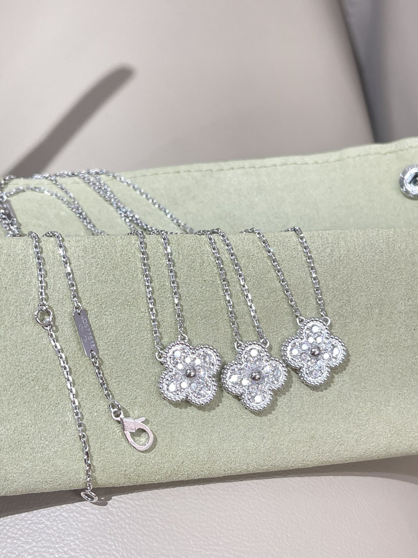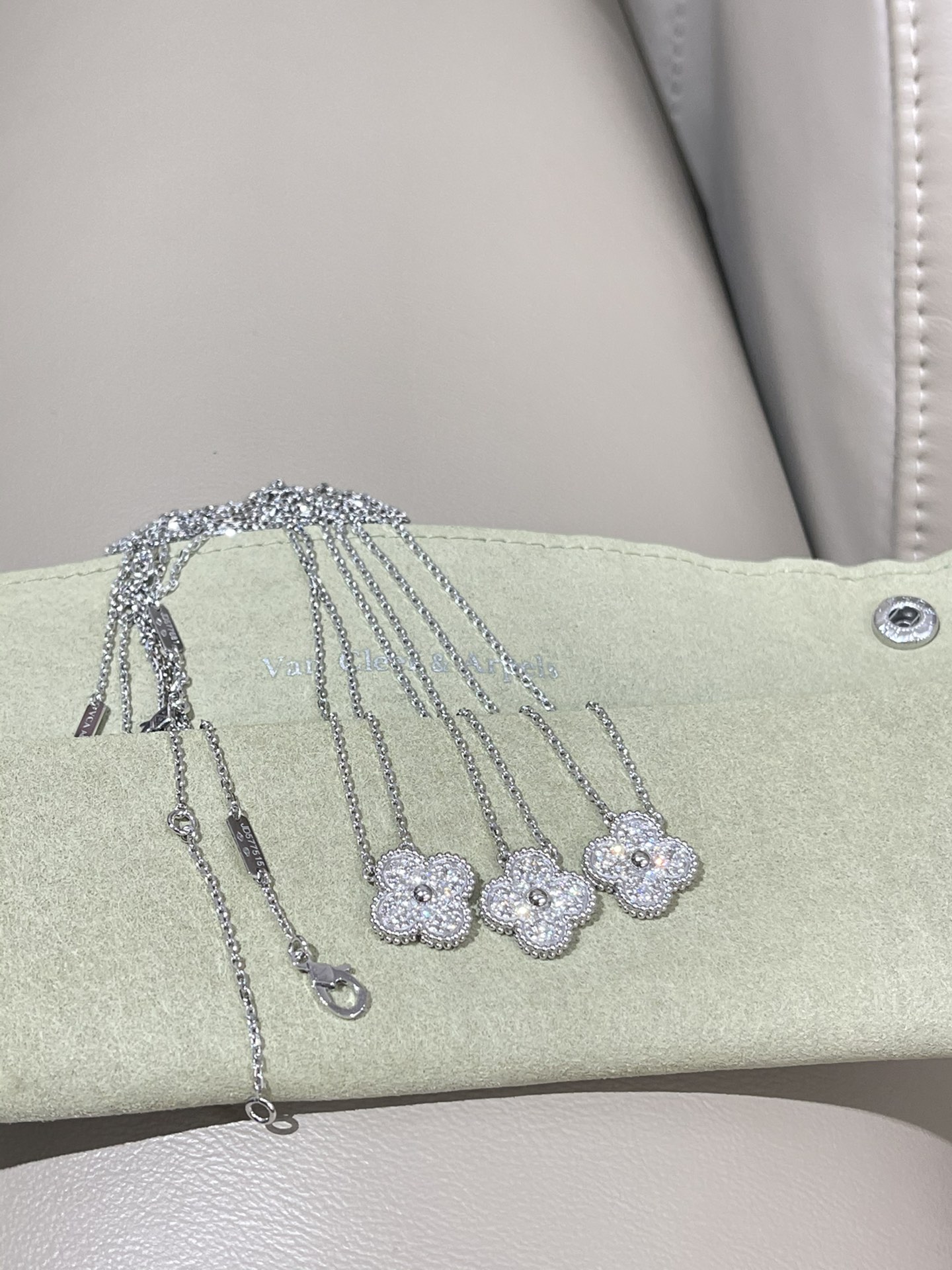 This jewelry is AAAAA 1:1 quality (superb). Materials used are identical to the original ones. Van Cleef & Arpels trademark marks are indistinguishable to the authentic. Photos take by actual jewelry, what you receive will be 100% same with our photos.
