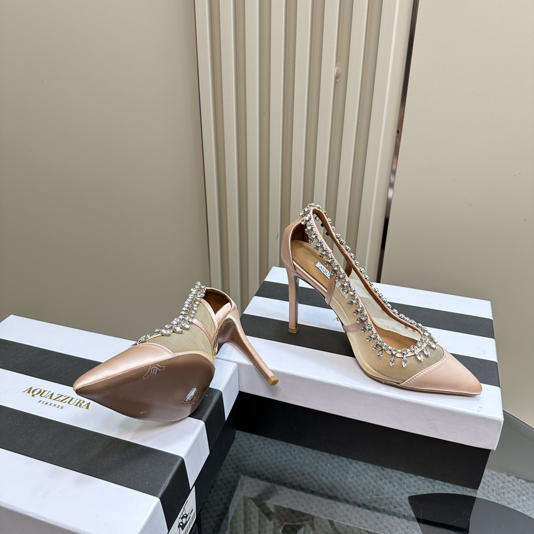 This shoes is AAAAA 1:1 quality (superb). Materials used are identical to the original ones. Aquazzura trademark marks are indistinguishable to the authentic. Photos take by actual shoes, what you receive will be 100% same with our photos.