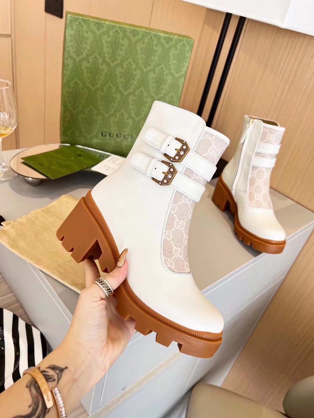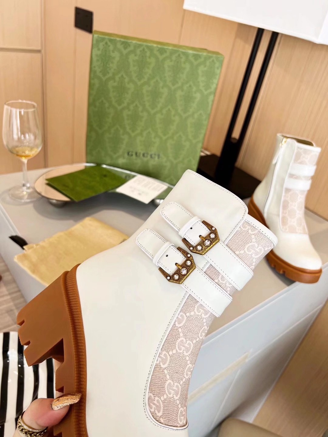 This shoes is AAAAA 1:1 quality (superb). Materials used are identical to the original ones. Gucci trademark marks are indistinguishable to the authentic. Photos take by actual shoes, what you receive will be 100% same with our photos.