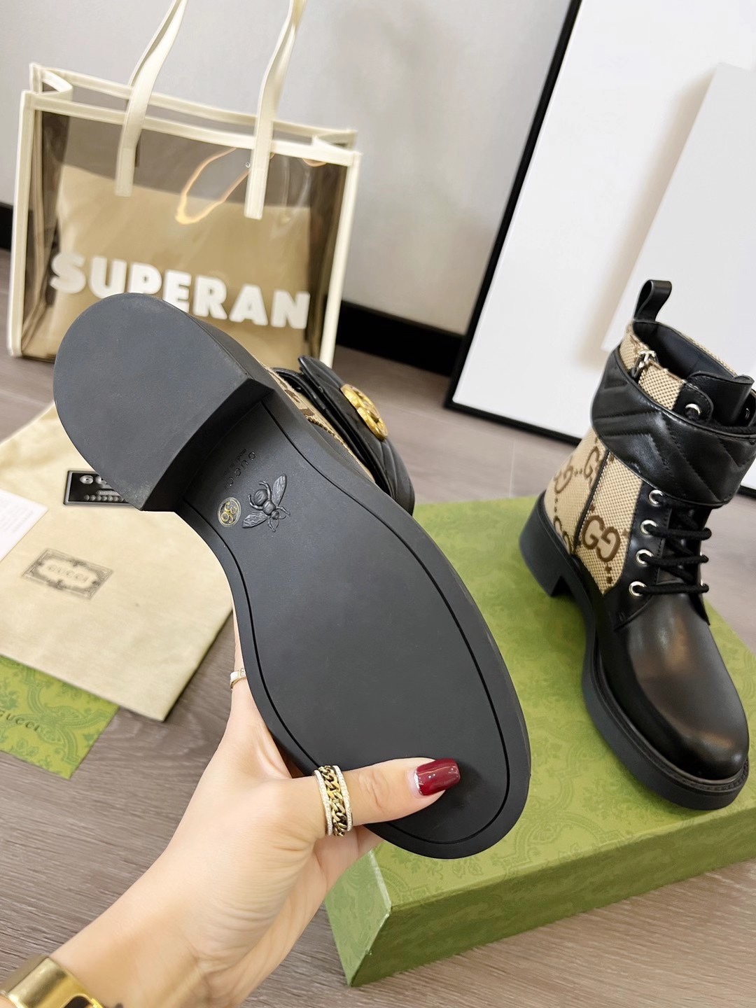 This shoes is AAAAA 1:1 quality (superb). Materials used are identical to the original ones. Gucci trademark marks are indistinguishable to the authentic. Photos take by actual shoes, what you receive will be 100% same with our photos.
