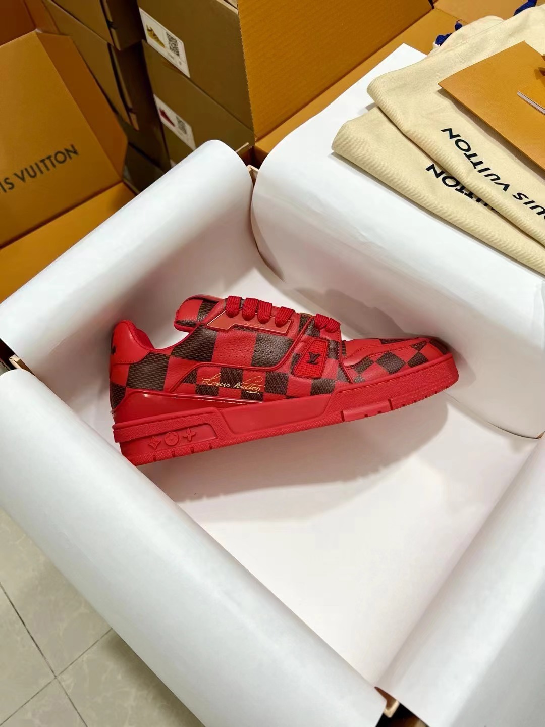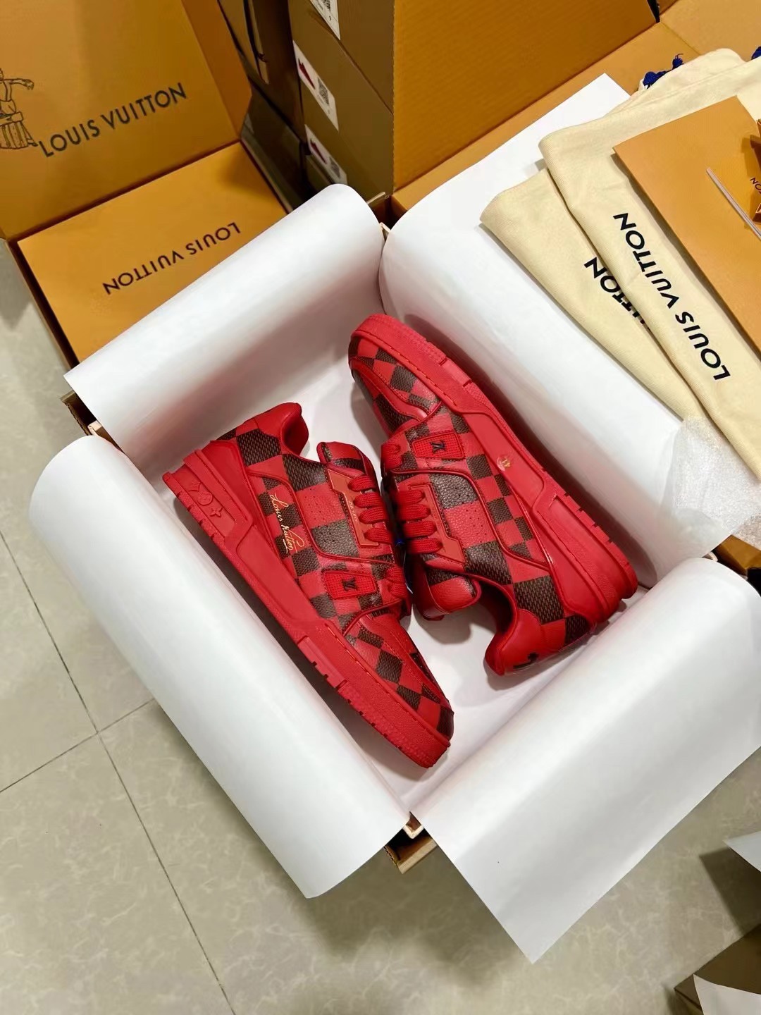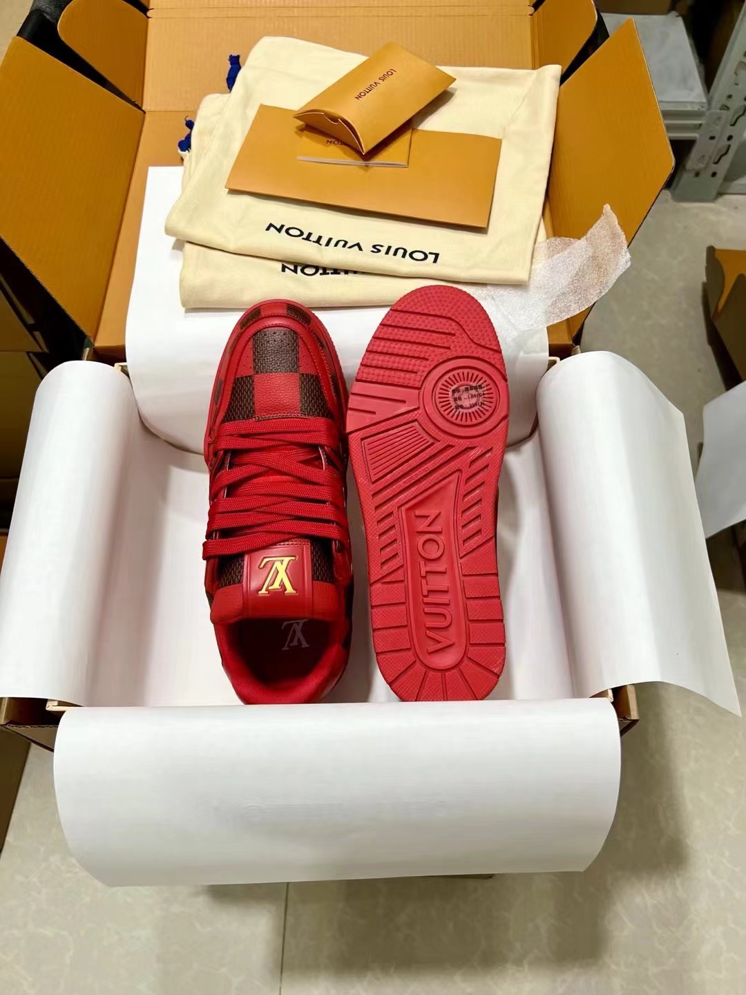 This shoes is AAAAA 1:1 quality (superb). Materials used are identical to the original ones. Louis Vuitton trademark marks are indistinguishable to the authentic. Photos take by actual shoes, what you receive will be 100% same with our photos.