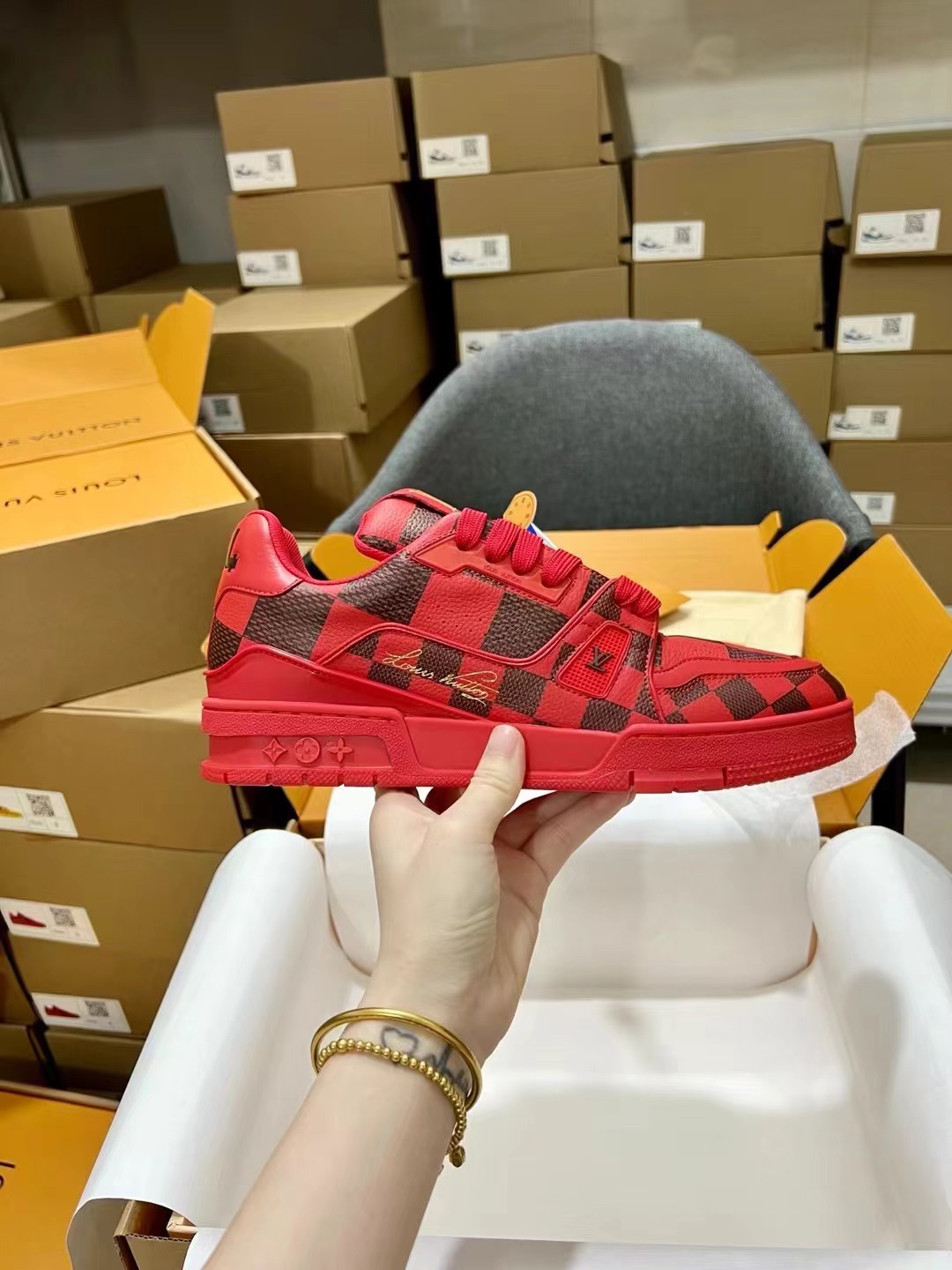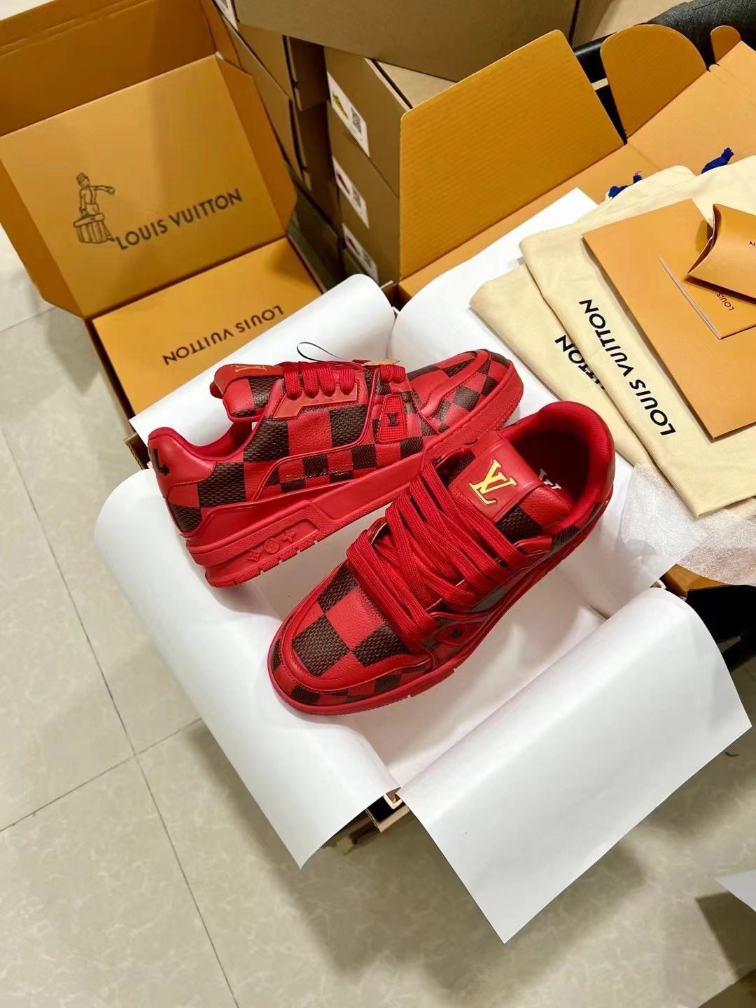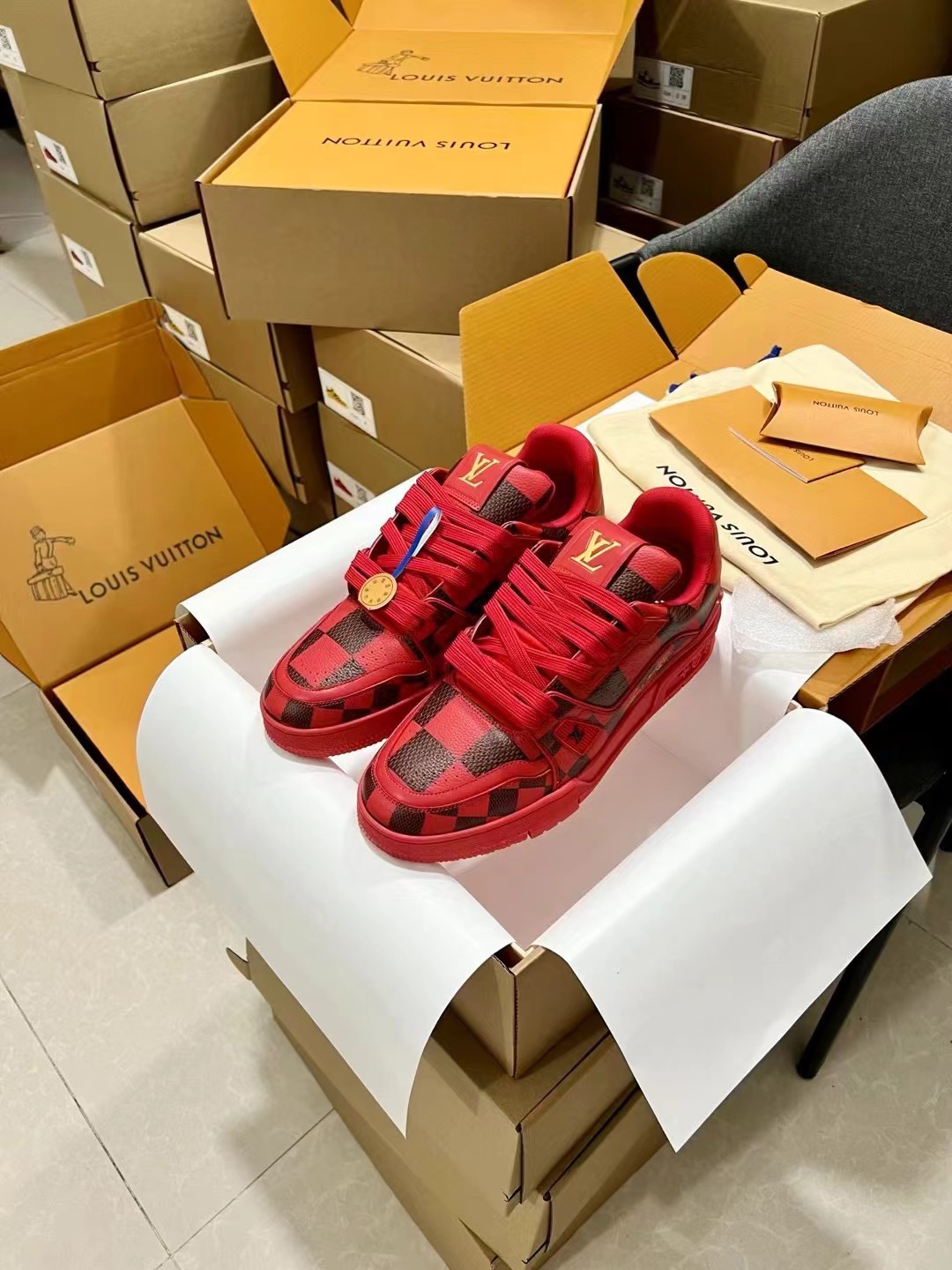 This shoes is AAAAA 1:1 quality (superb). Materials used are identical to the original ones. Louis Vuitton trademark marks are indistinguishable to the authentic. Photos take by actual shoes, what you receive will be 100% same with our photos.