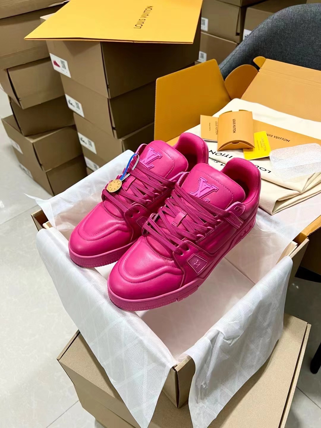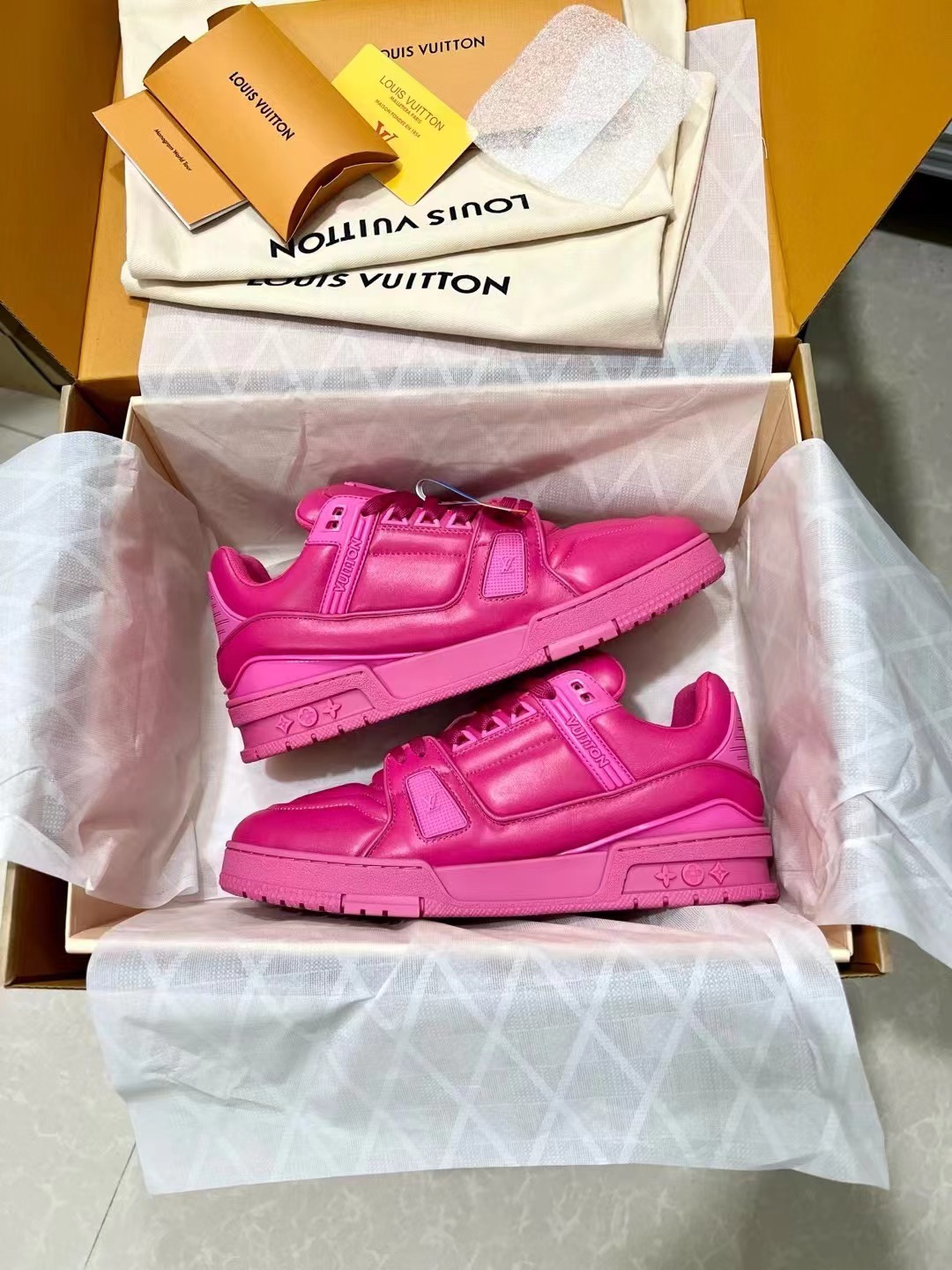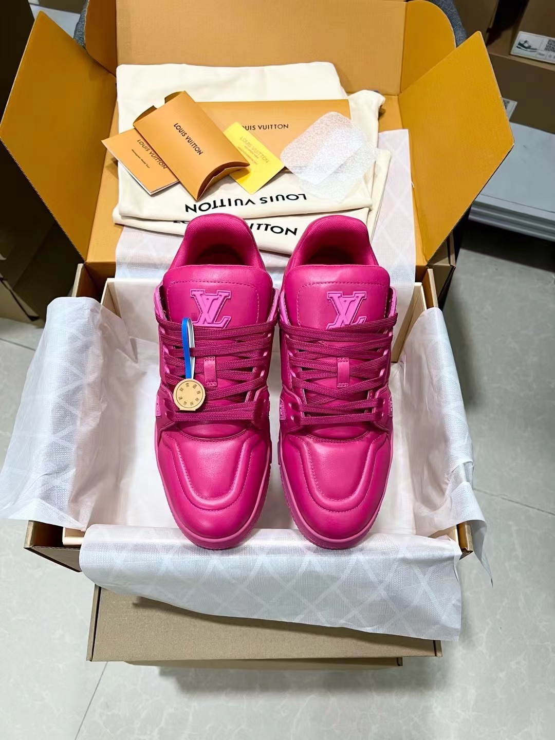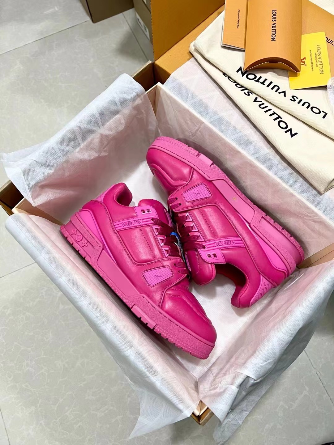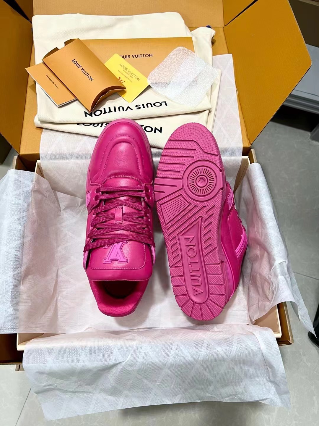 This shoes is AAAAA 1:1 quality (superb). Materials used are identical to the original ones. Louis Vuitton trademark marks are indistinguishable to the authentic. Photos take by actual shoes, what you receive will be 100% same with our photos.