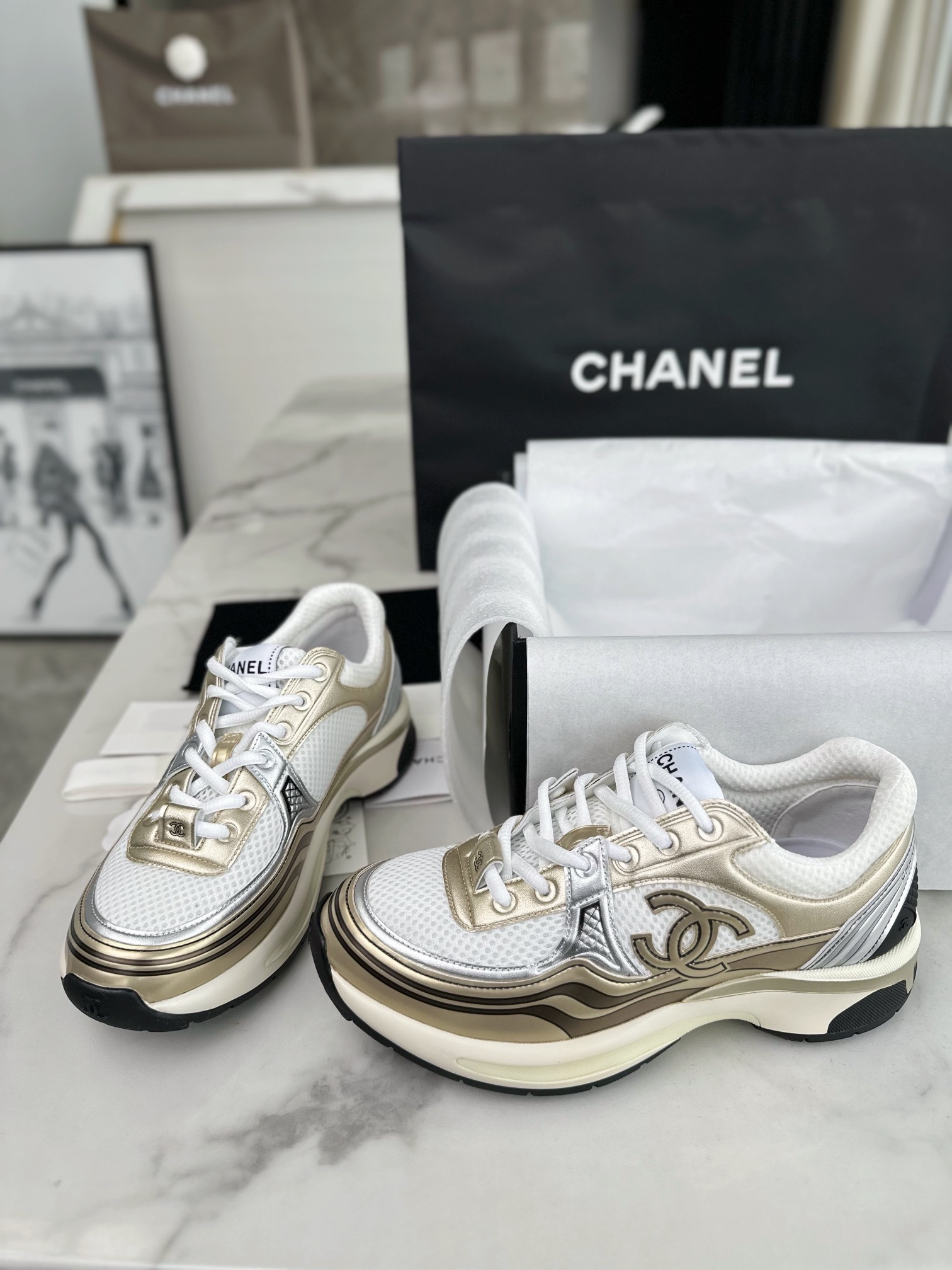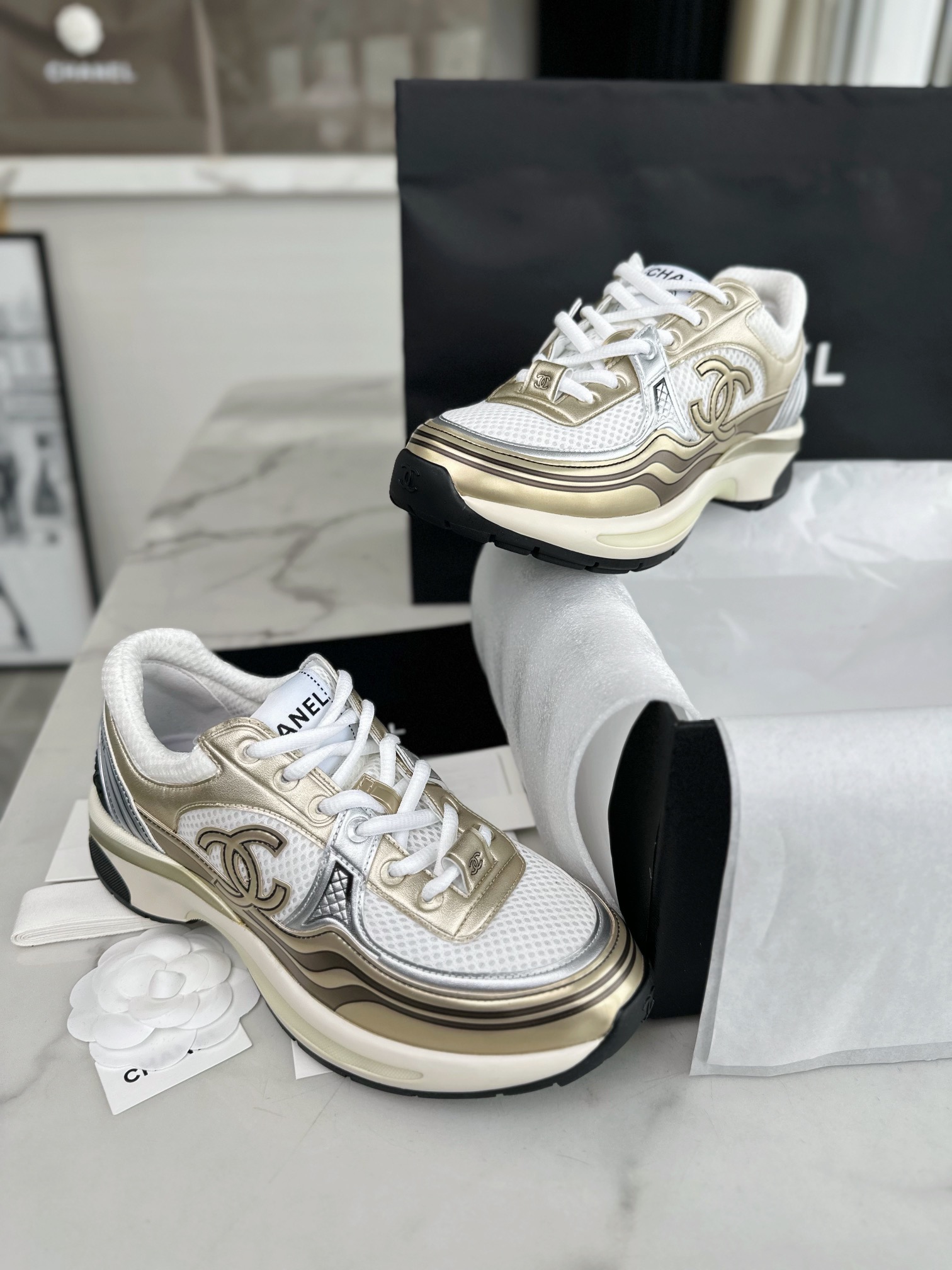 This shoes is AAAAA 1:1 quality (superb). Materials used are identical to the original ones. Chanel trademark marks are indistinguishable to the authentic. Photos take by actual shoes, what you receive will be 100% same with our photos.