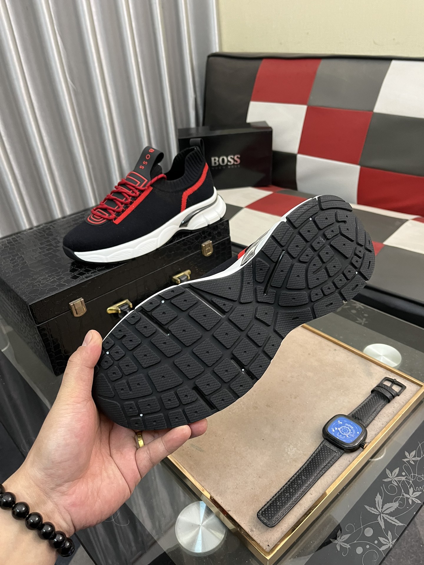 This shoes is AAAAA 1:1 quality (superb). Materials used are identical to the original ones. trademark marks are indistinguishable to the authentic. Photos take by actual shoes, what you receive will be 100% same with our photos.