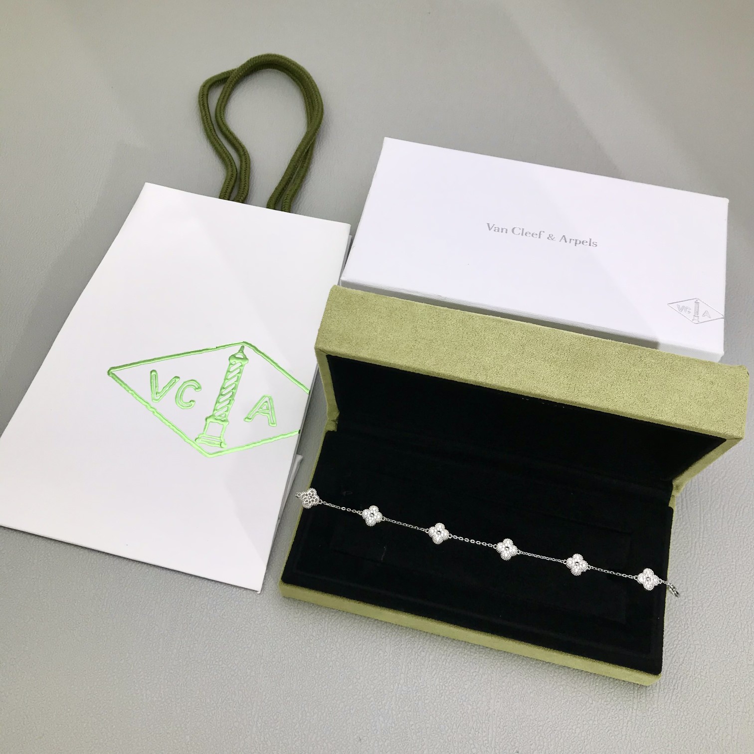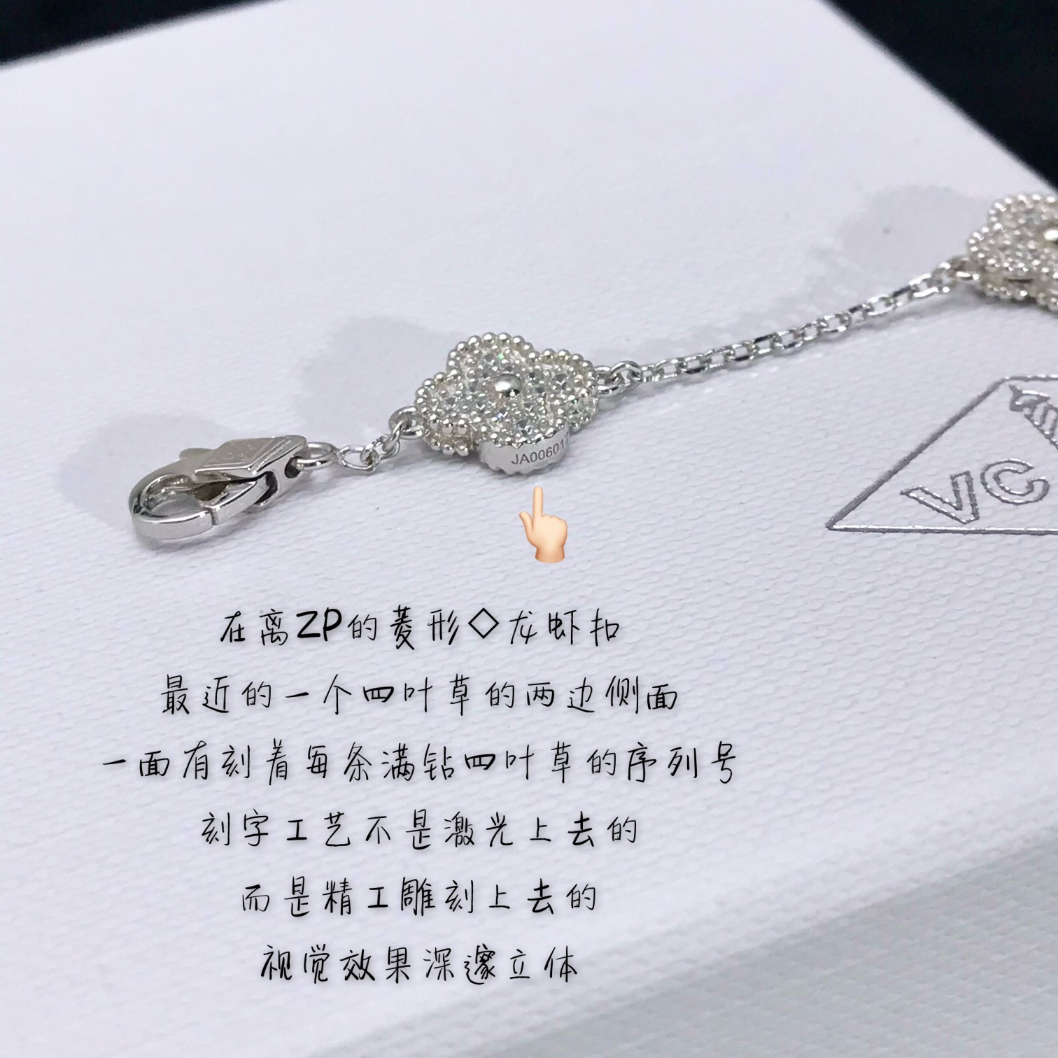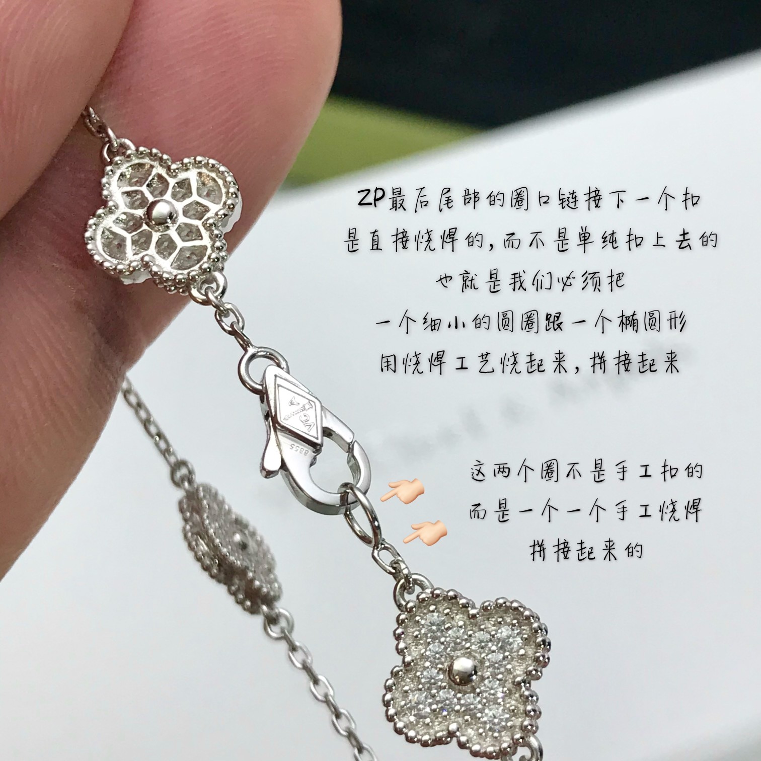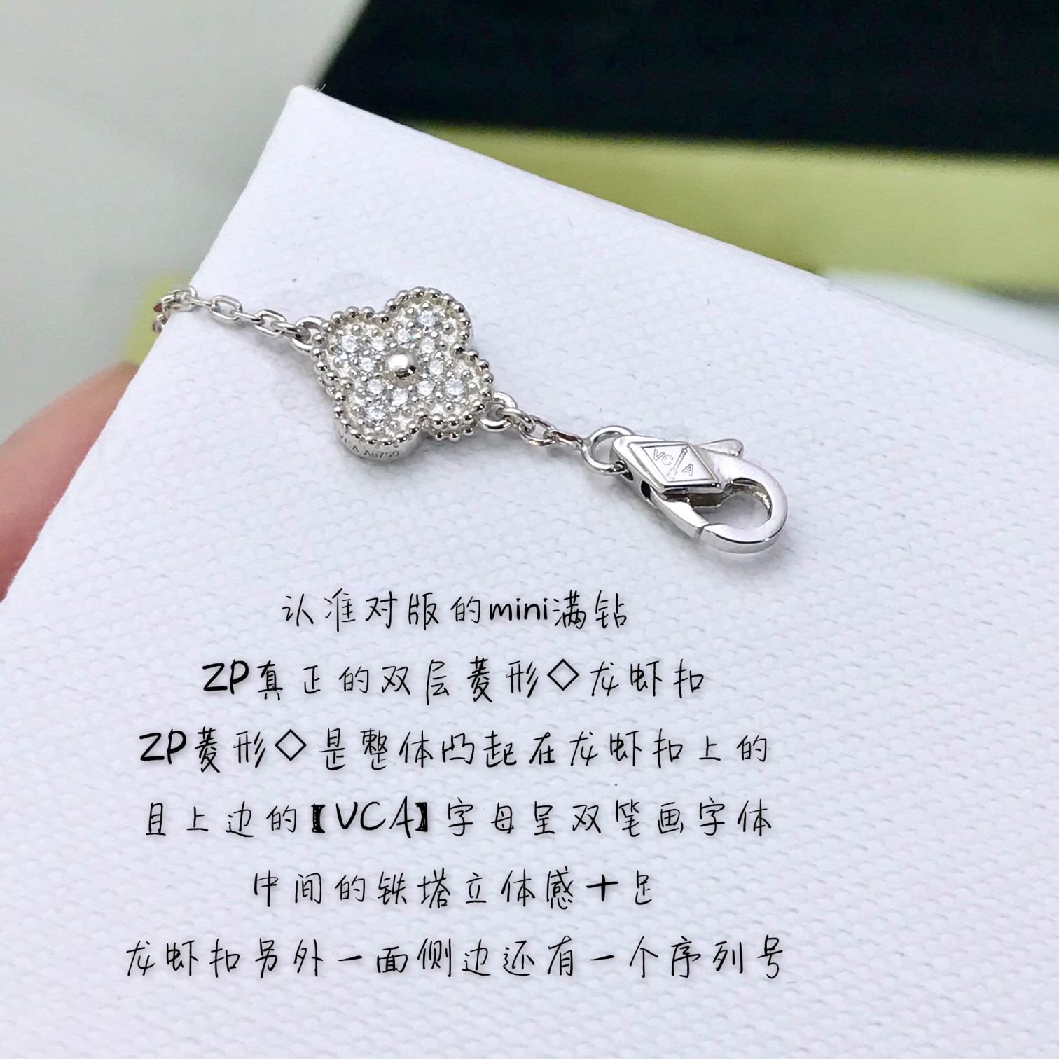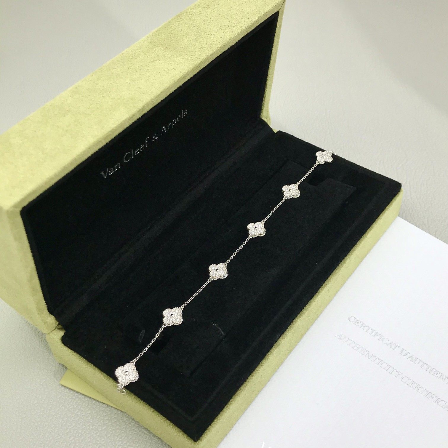 This jewelry is AAAAA 1:1 quality (superb). Materials used are identical to the original ones. Van Cleef & Arpels trademark marks are indistinguishable to the authentic. Photos take by actual jewelry, what you receive will be 100% same with our photos.