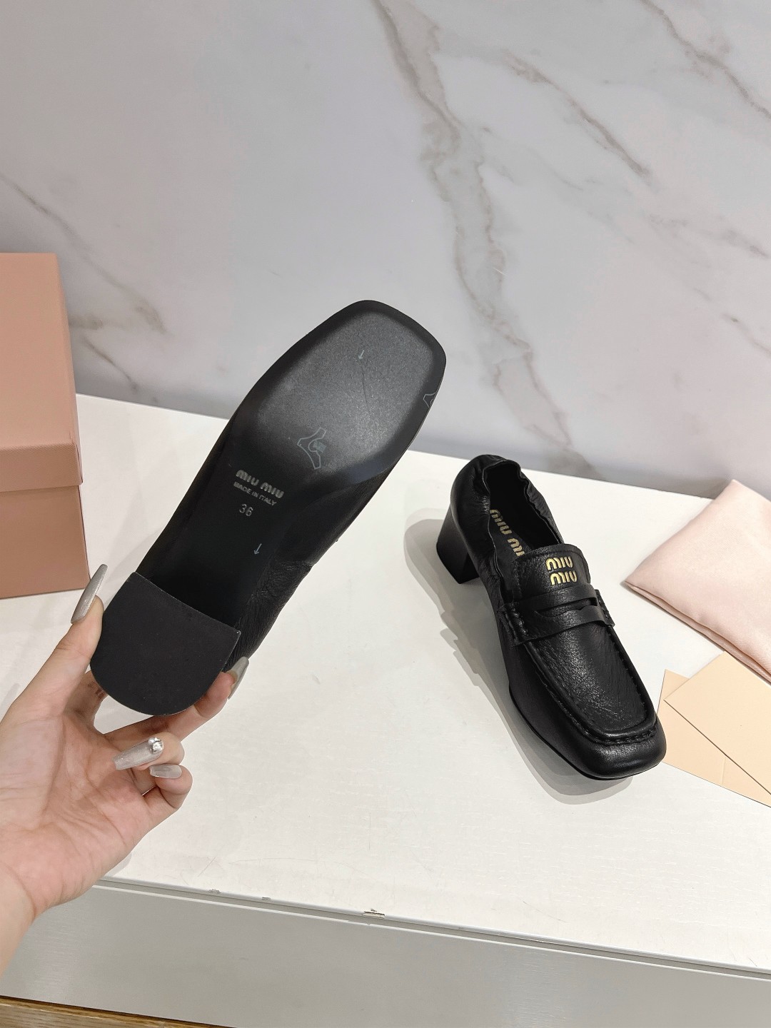 This shoes is AAAAA 1:1 quality (superb). Materials used are identical to the original ones. Miu Miu trademark marks are indistinguishable to the authentic. Photos take by actual shoes, what you receive will be 100% same with our photos.