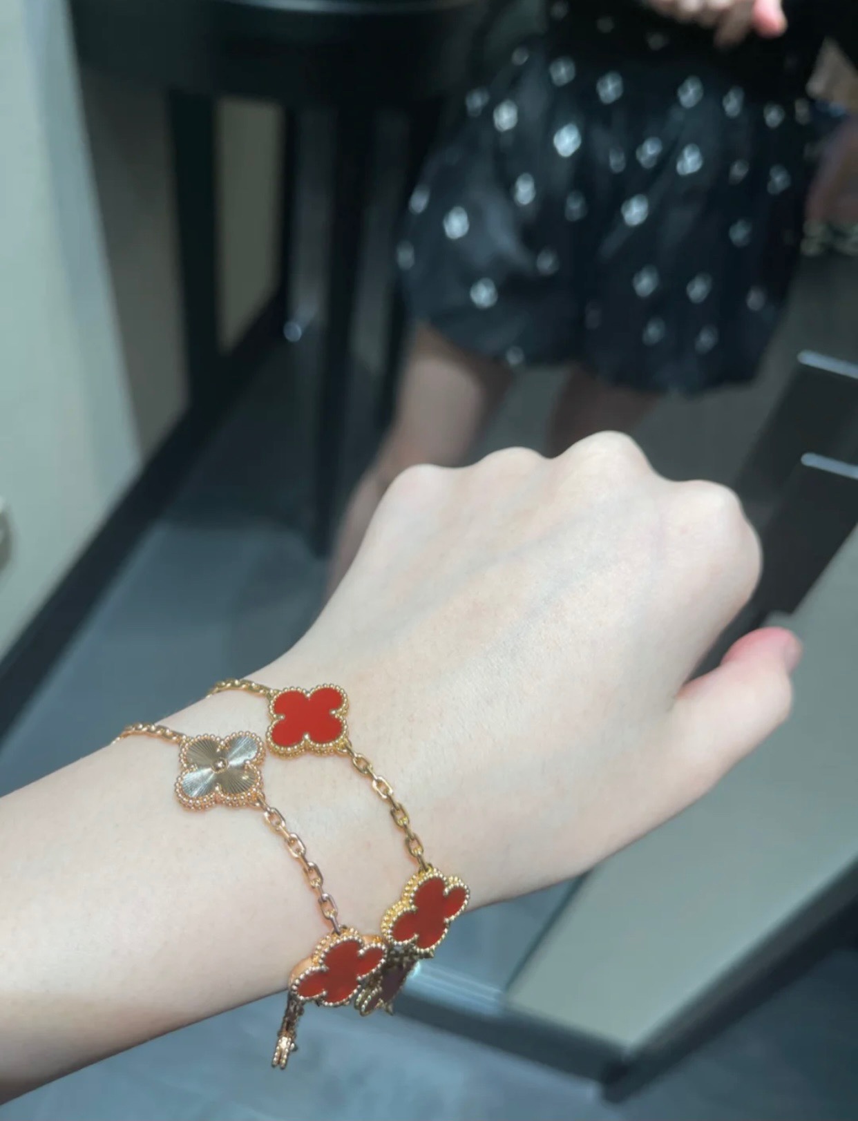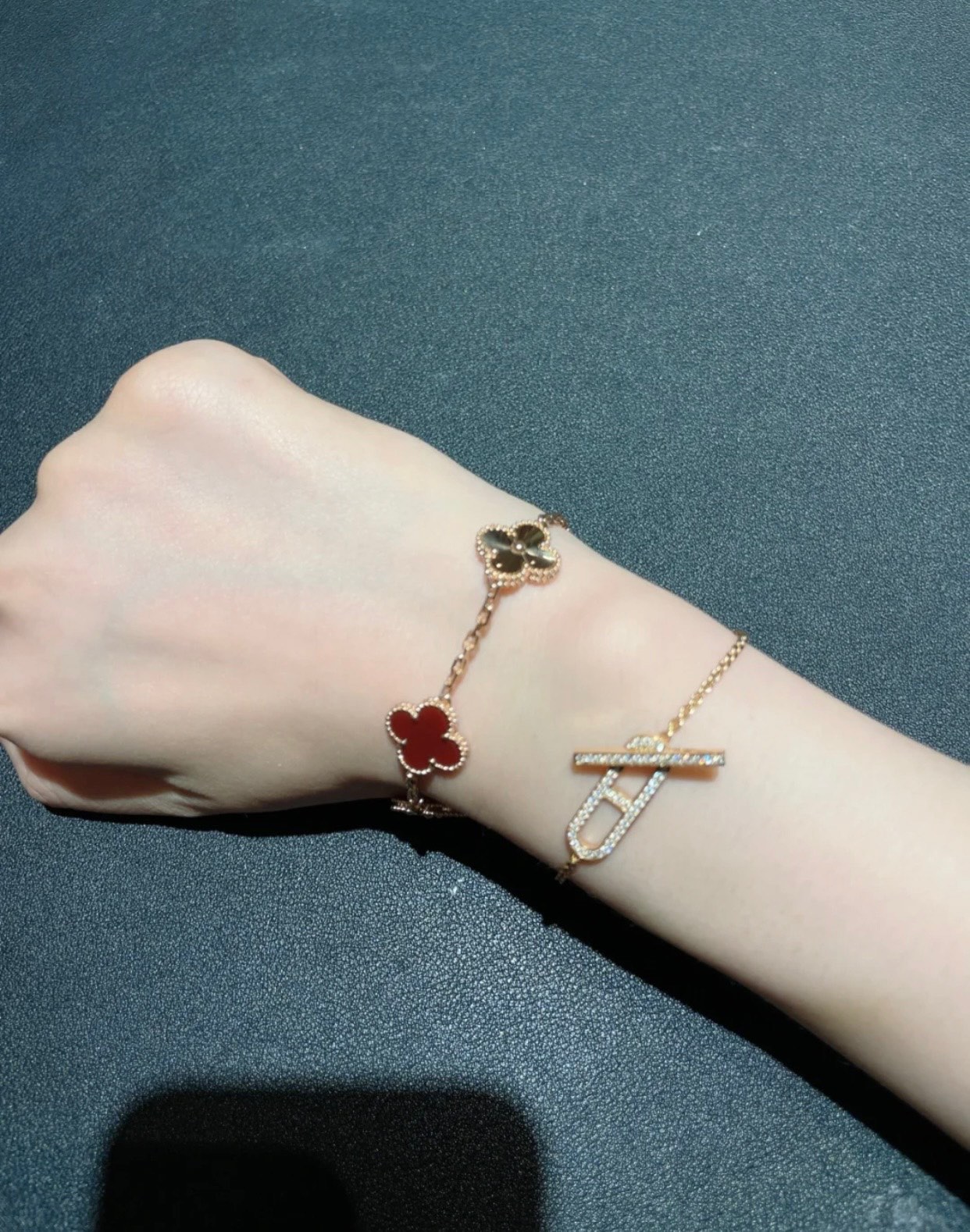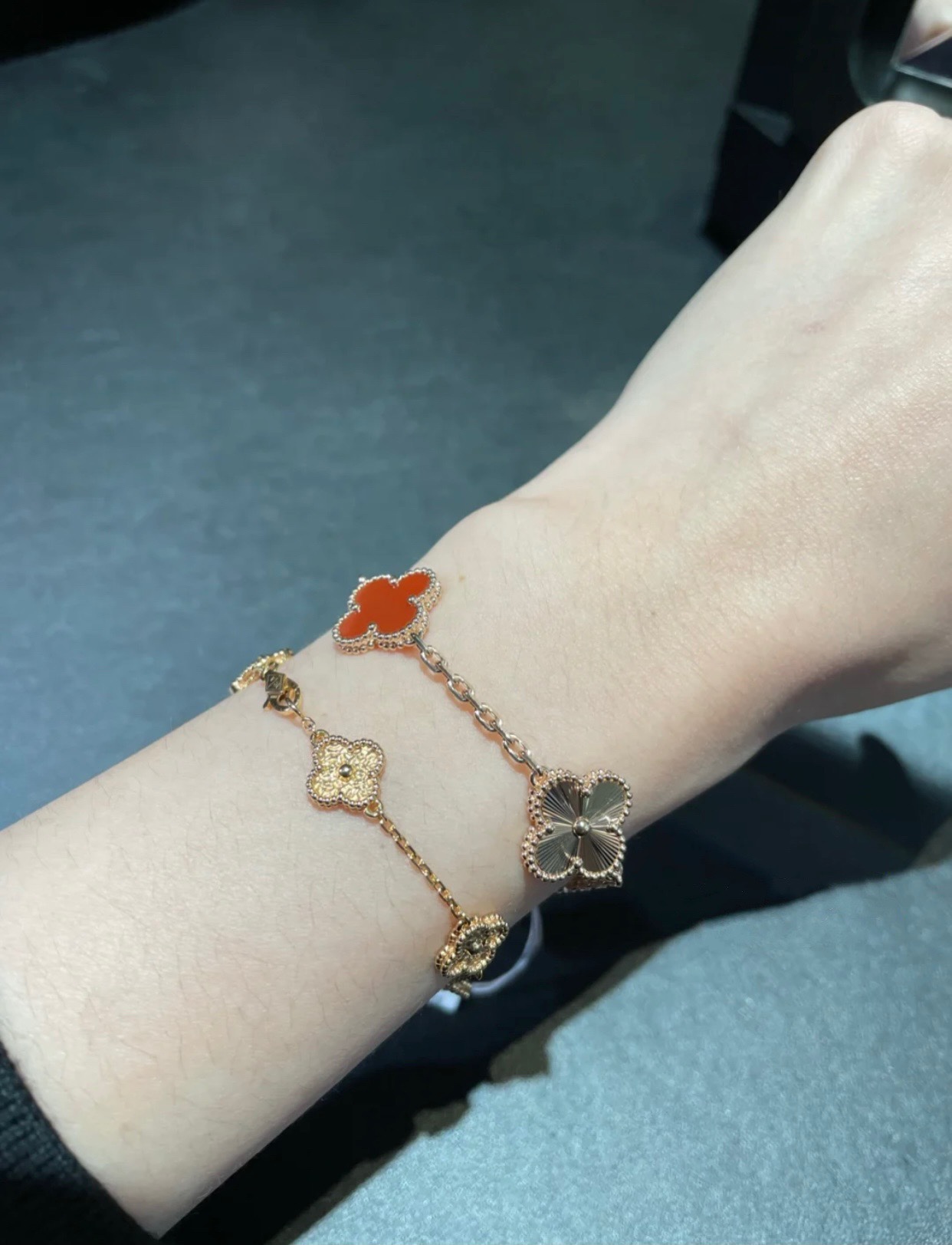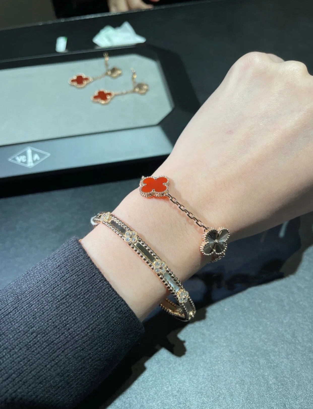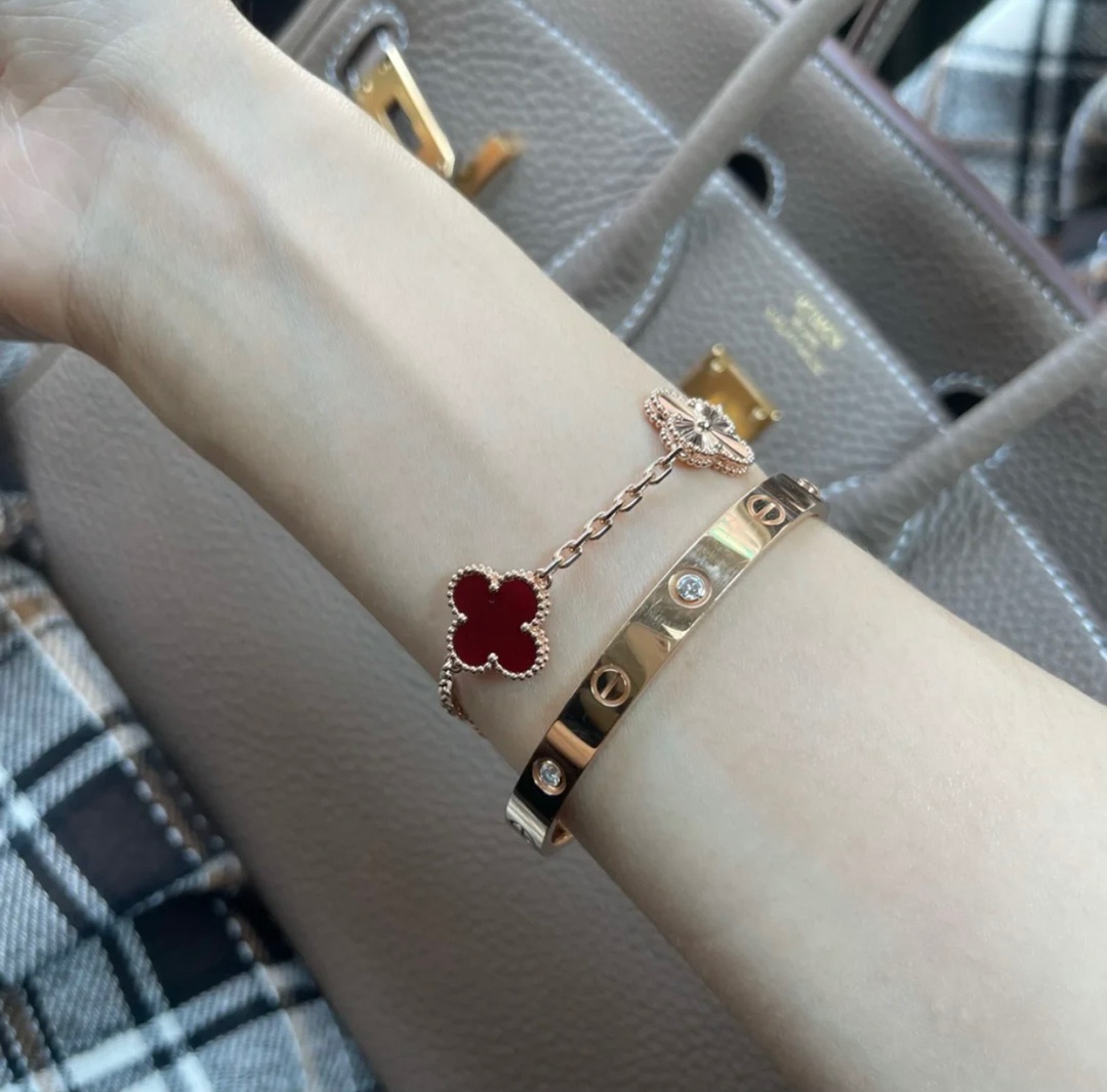This jewelry is AAAAA 1:1 quality (superb). Materials used are identical to the original ones. Van Cleef & Arpels trademark marks are indistinguishable to the authentic. Photos take by actual jewelry, what you receive will be 100% same with our photos.