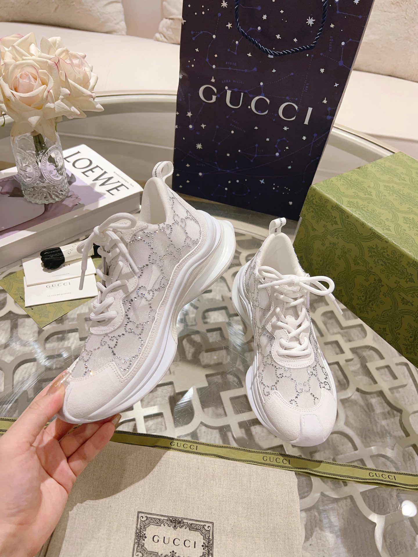 This shoes is AAAAA 1:1 quality (superb). Materials used are identical to the original ones. Gucci trademark marks are indistinguishable to the authentic. Photos take by actual shoes, what you receive will be 100% same with our photos.