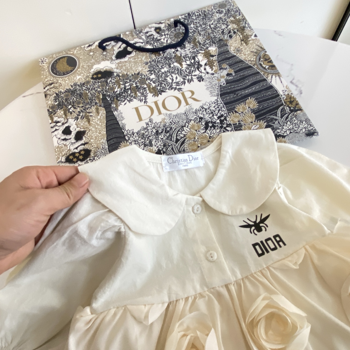 This children's clothes is AAAAA 1:1 quality (superb). Materials used are identical to the original ones. Dior trademark marks are indistinguishable to the authentic. Photos take by actual children's clothes, what you receive will be 100% same with our photos.