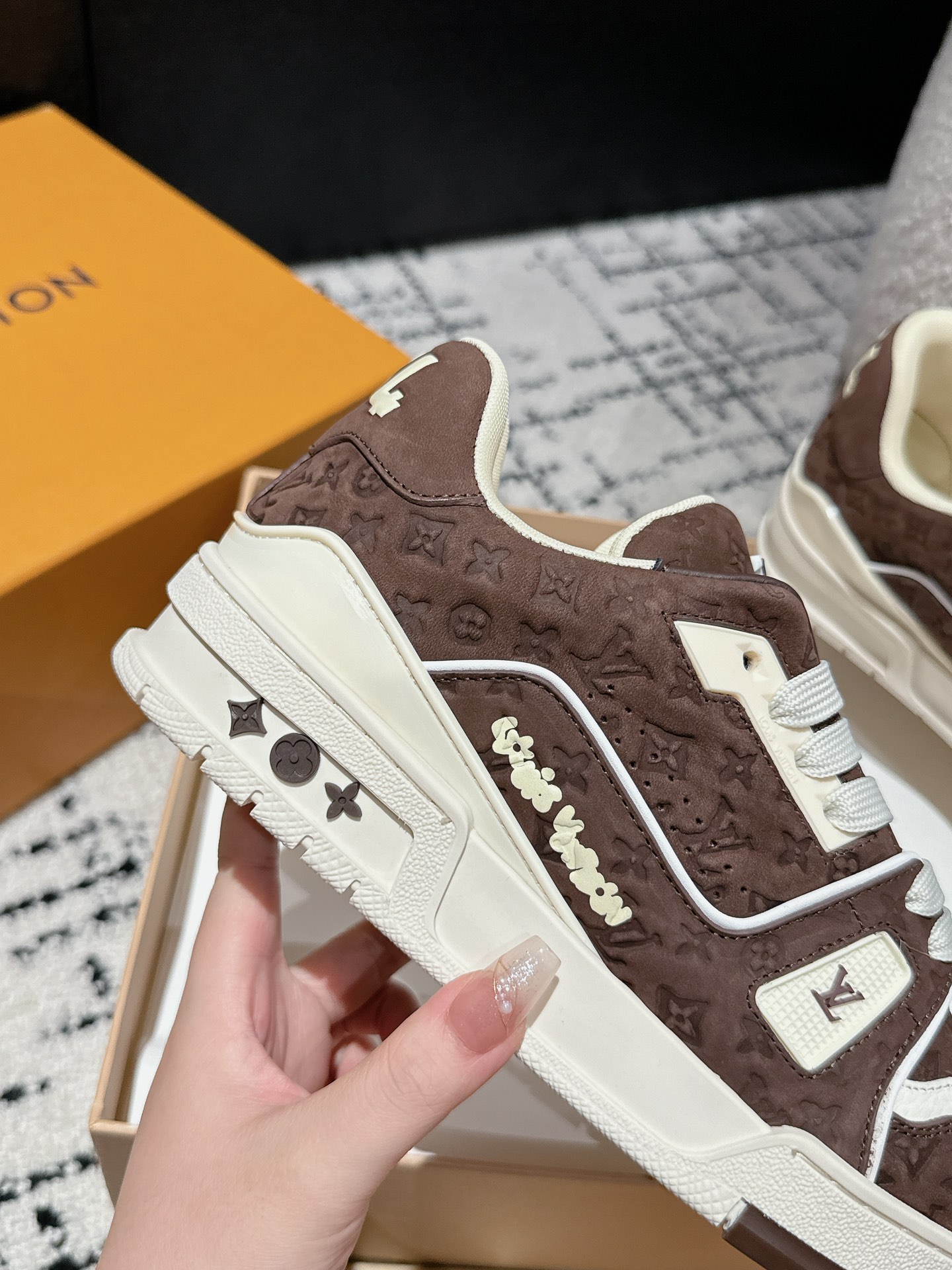This shoes is AAAAA 1:1 quality (superb). Materials used are identical to the original ones. Louis Vuitton trademark marks are indistinguishable to the authentic. Photos take by actual shoes, what you receive will be 100% same with our photos.
