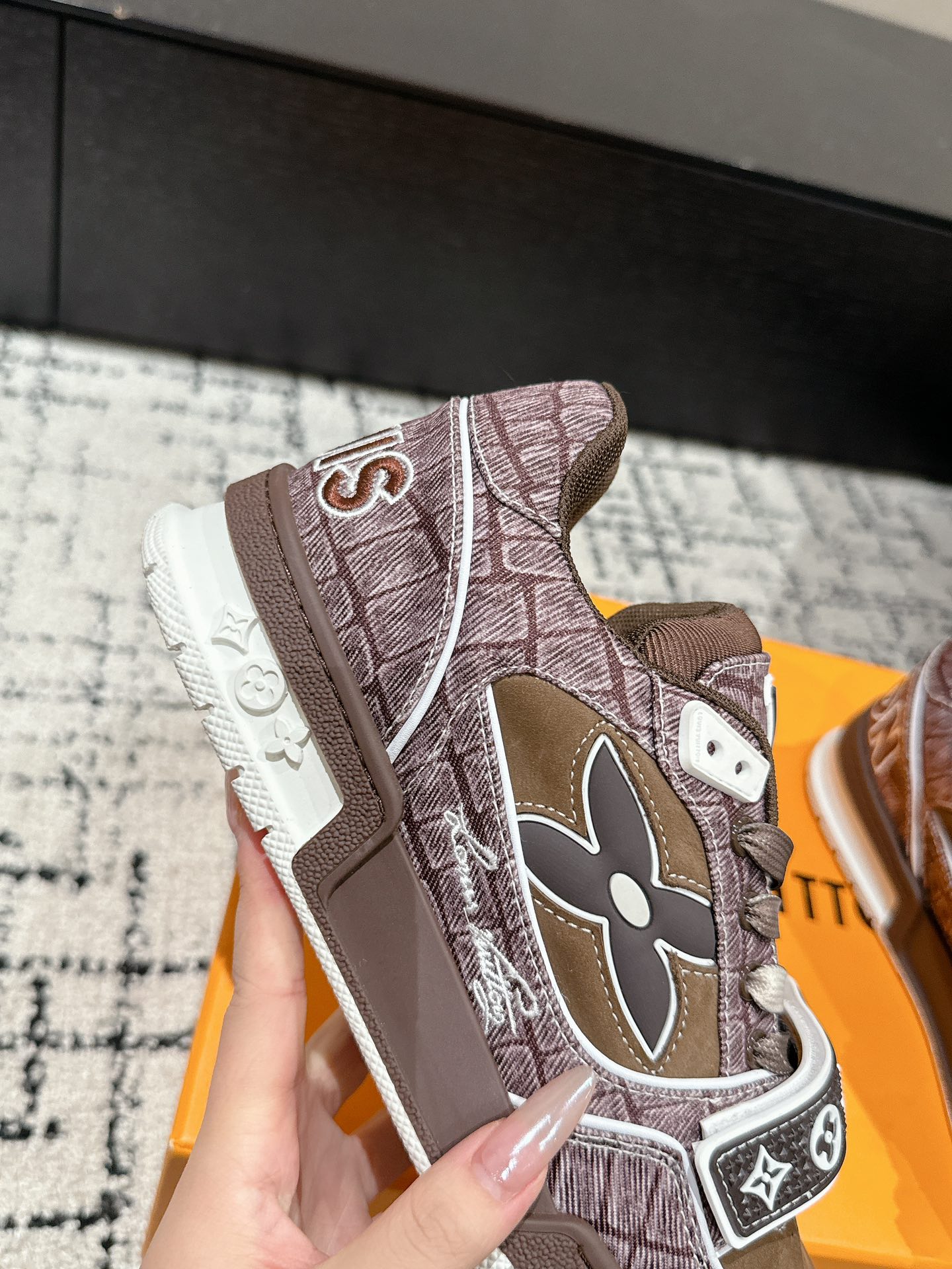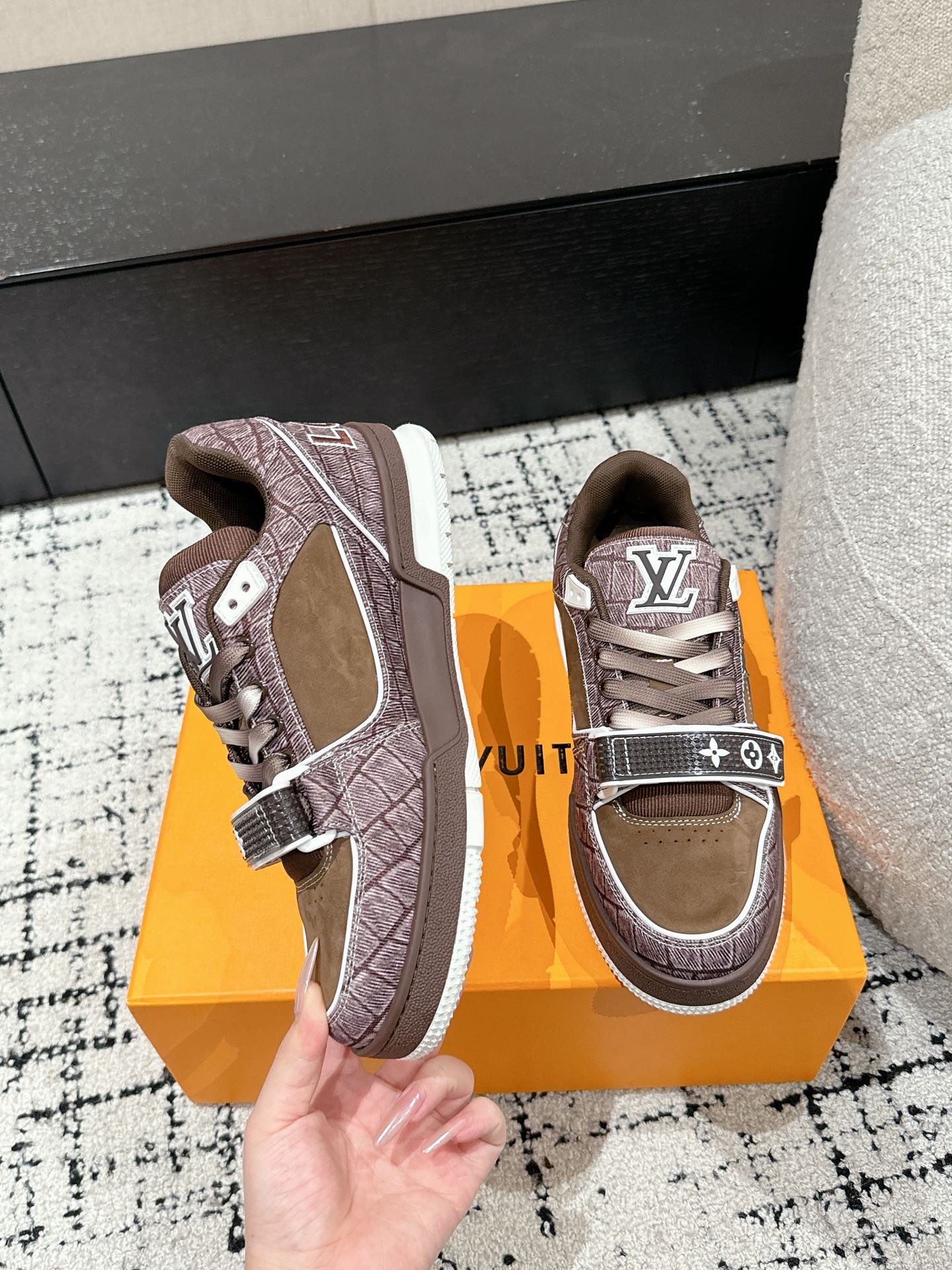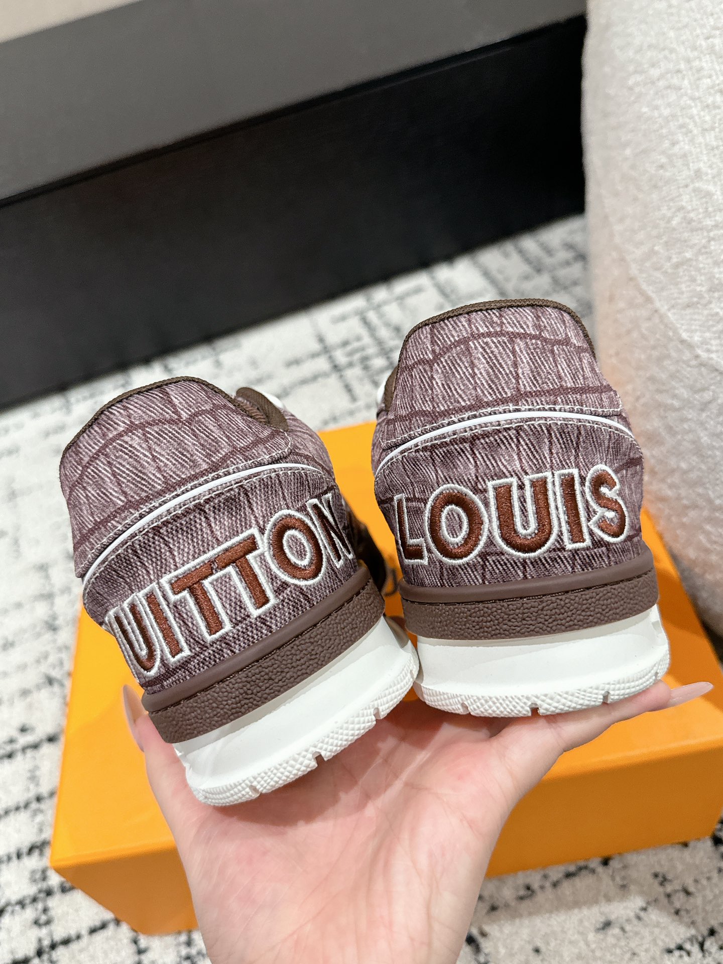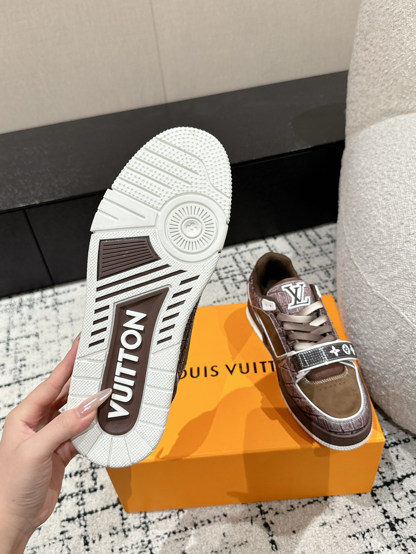 This shoes is AAAAA 1:1 quality (superb). Materials used are identical to the original ones. Louis Vuitton trademark marks are indistinguishable to the authentic. Photos take by actual shoes, what you receive will be 100% same with our photos.