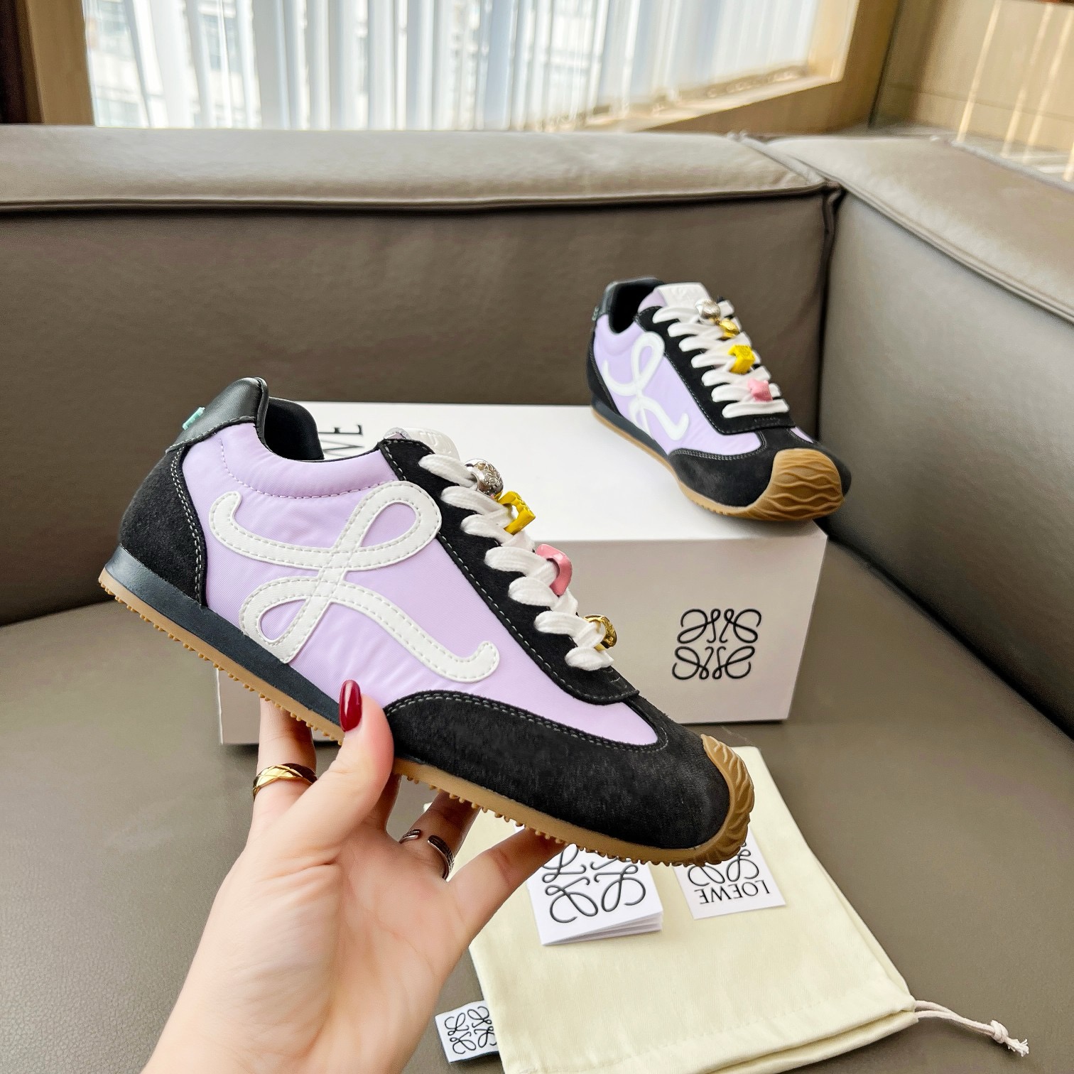 This shoes is AAAAA 1:1 quality (superb). Materials used are identical to the original ones. Loewe trademark marks are indistinguishable to the authentic. Photos take by actual shoes, what you receive will be 100% same with our photos.